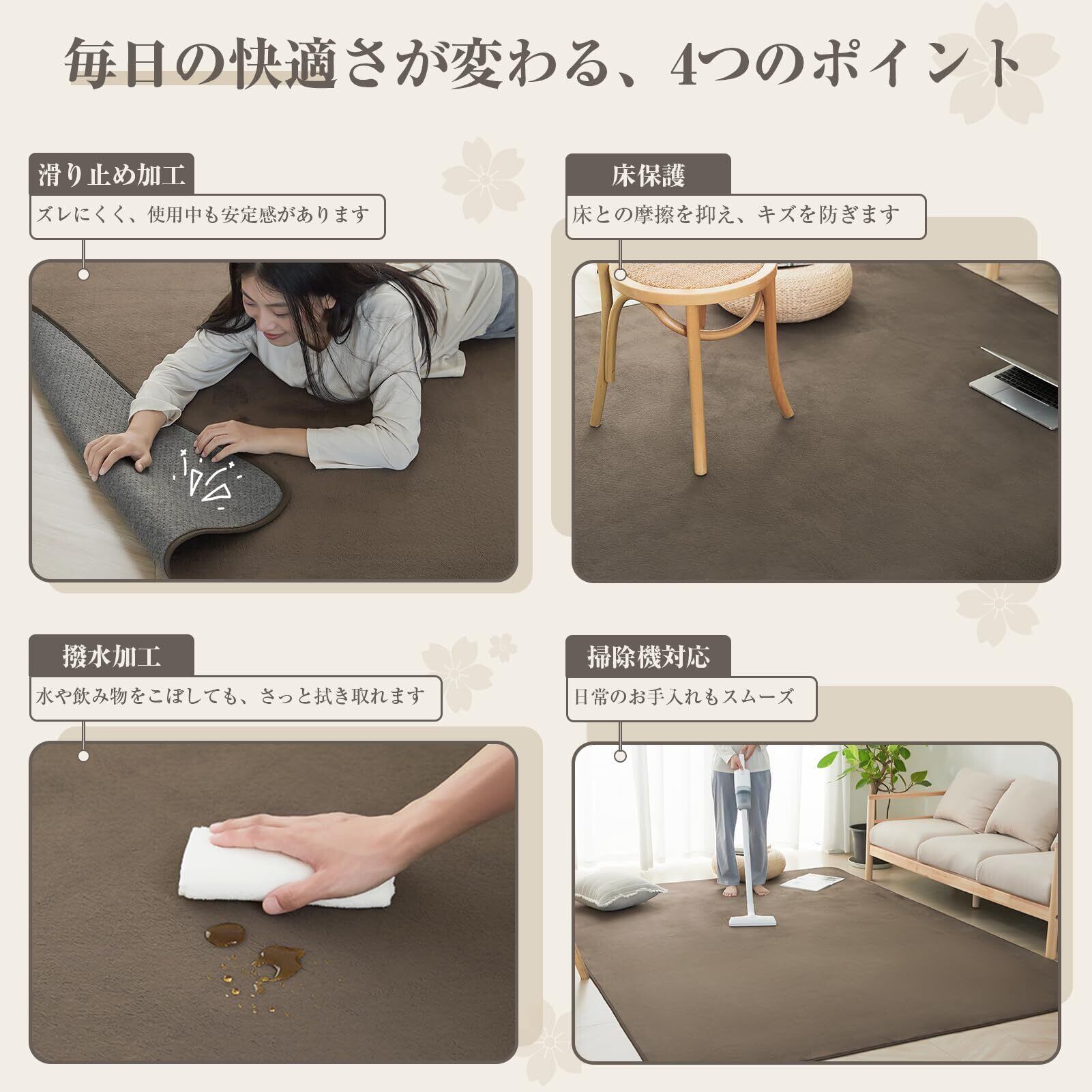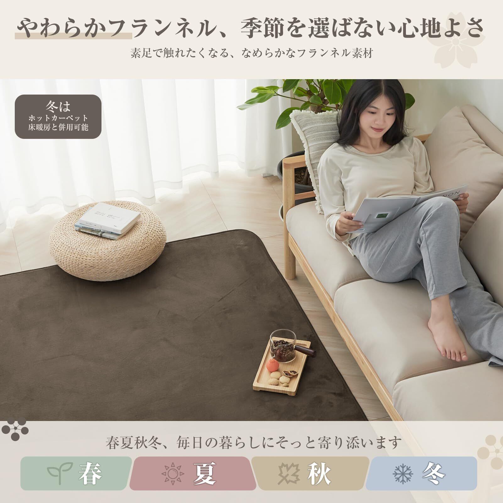 【様々な色とサイズがあり、どんなお部屋にも合ったカーペット】寝室でもリビングルームでも、夏でも冬でも、4つのサイズと6つの色から選ぶことができます——ホットカーペットとの組み合わせもできますよ。