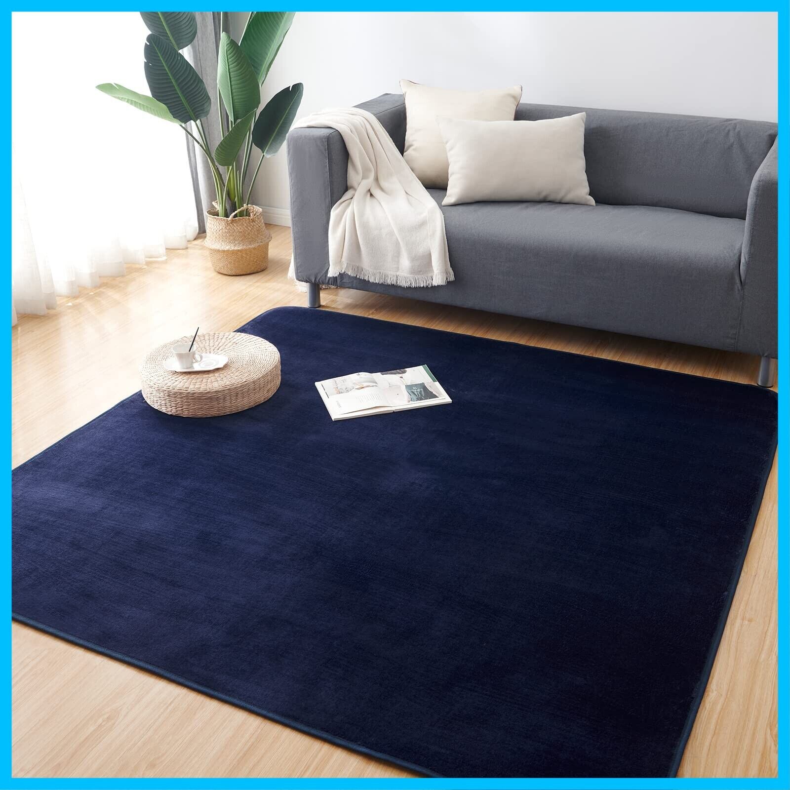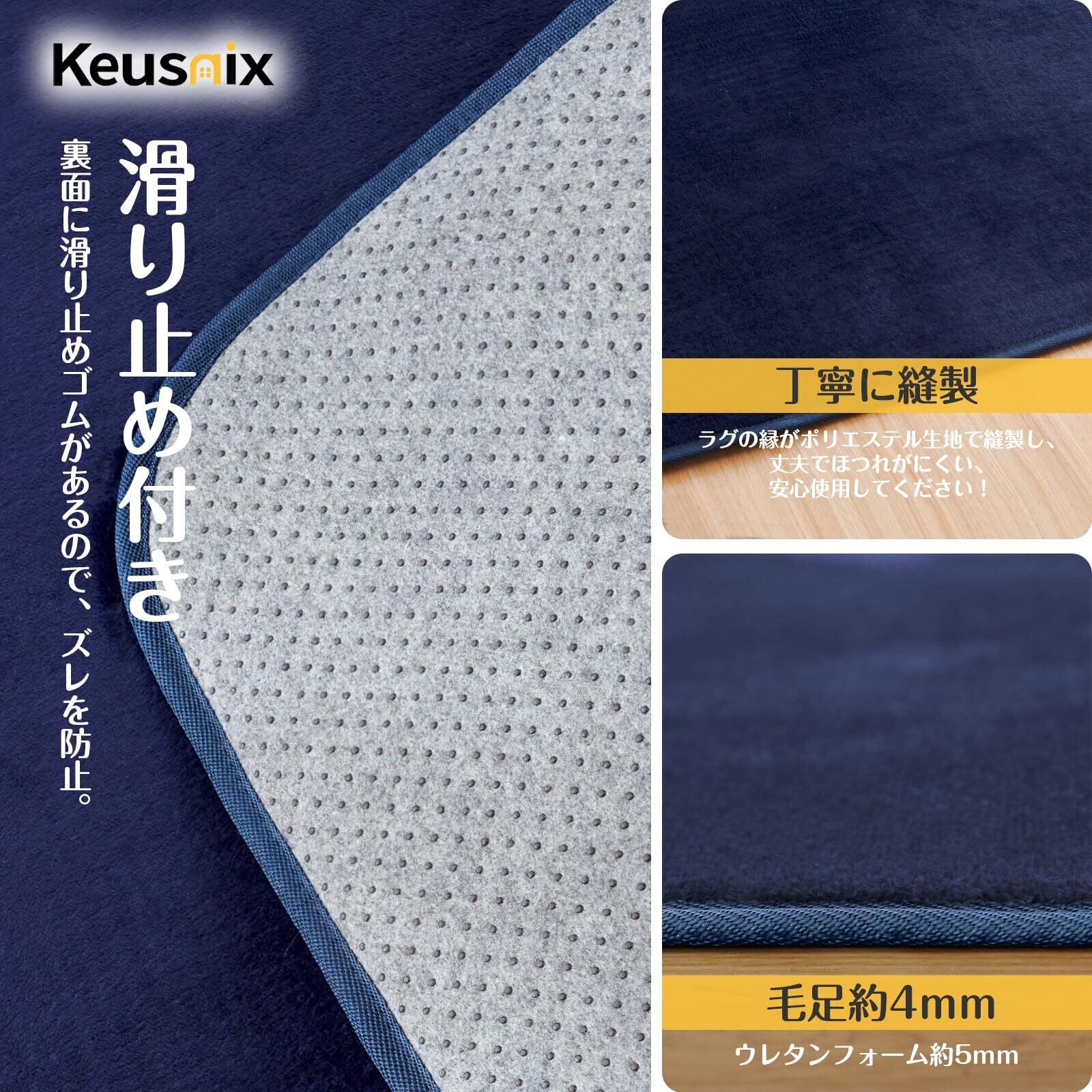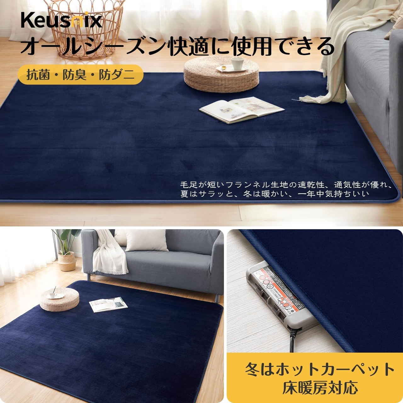 Keusnix カーペット ラグ ラグマット滑り止め付 洗える 185×185cm 約2畳 絨毯 防ダニ 抗菌 防臭 オールシーズン快適に使用 床暖房 ホットカーペット対応 ふわふわ肌触り フランネルラグ 無地 ネイビー
