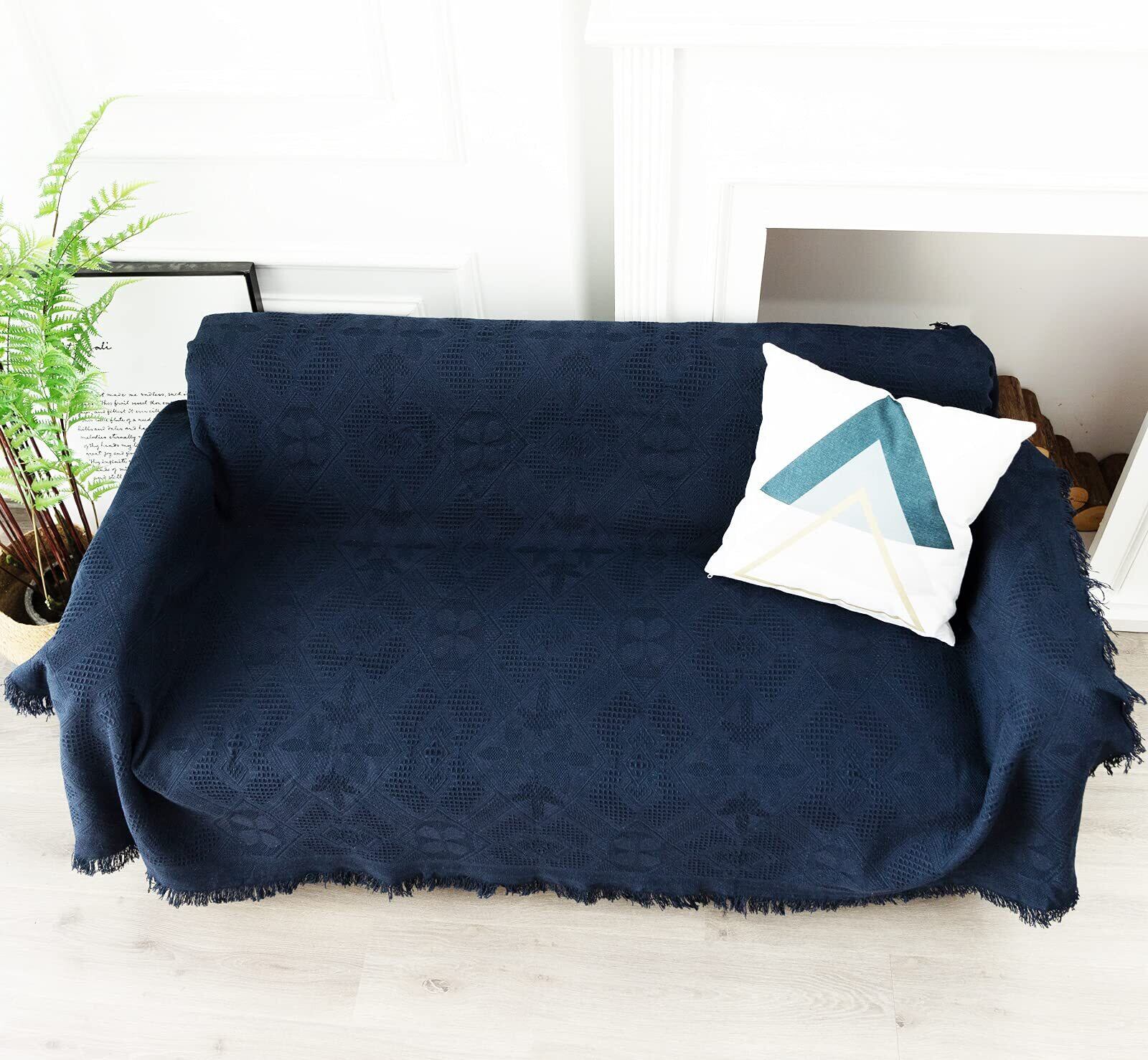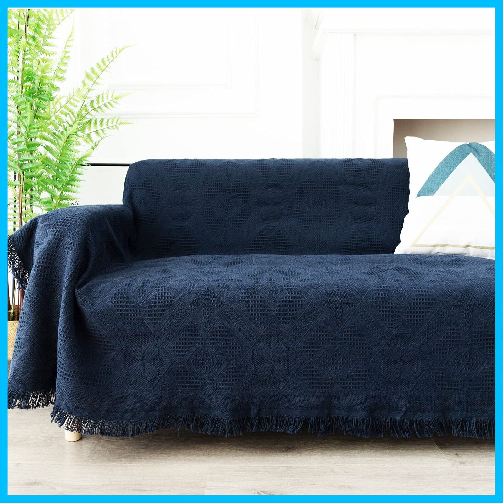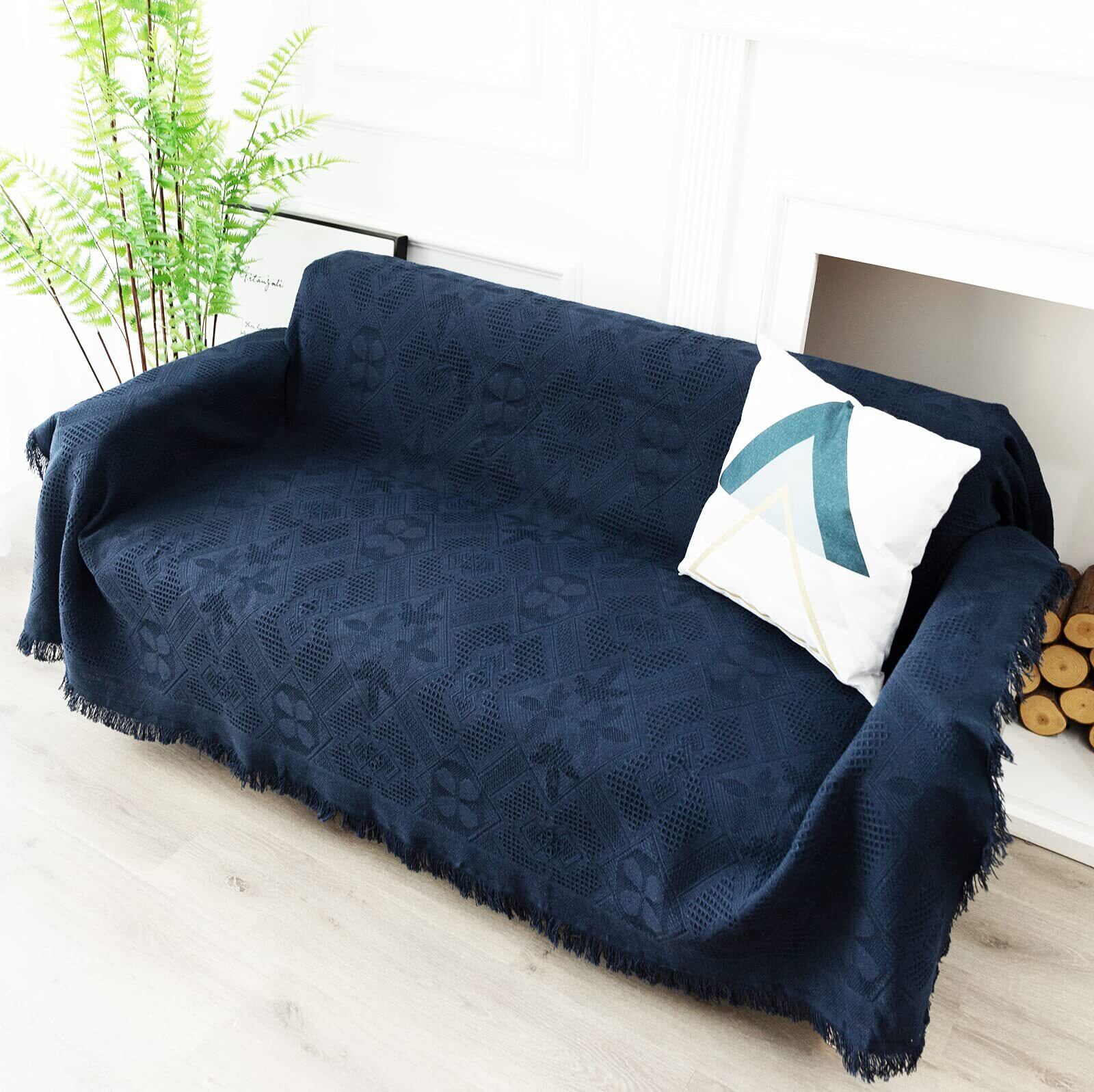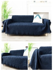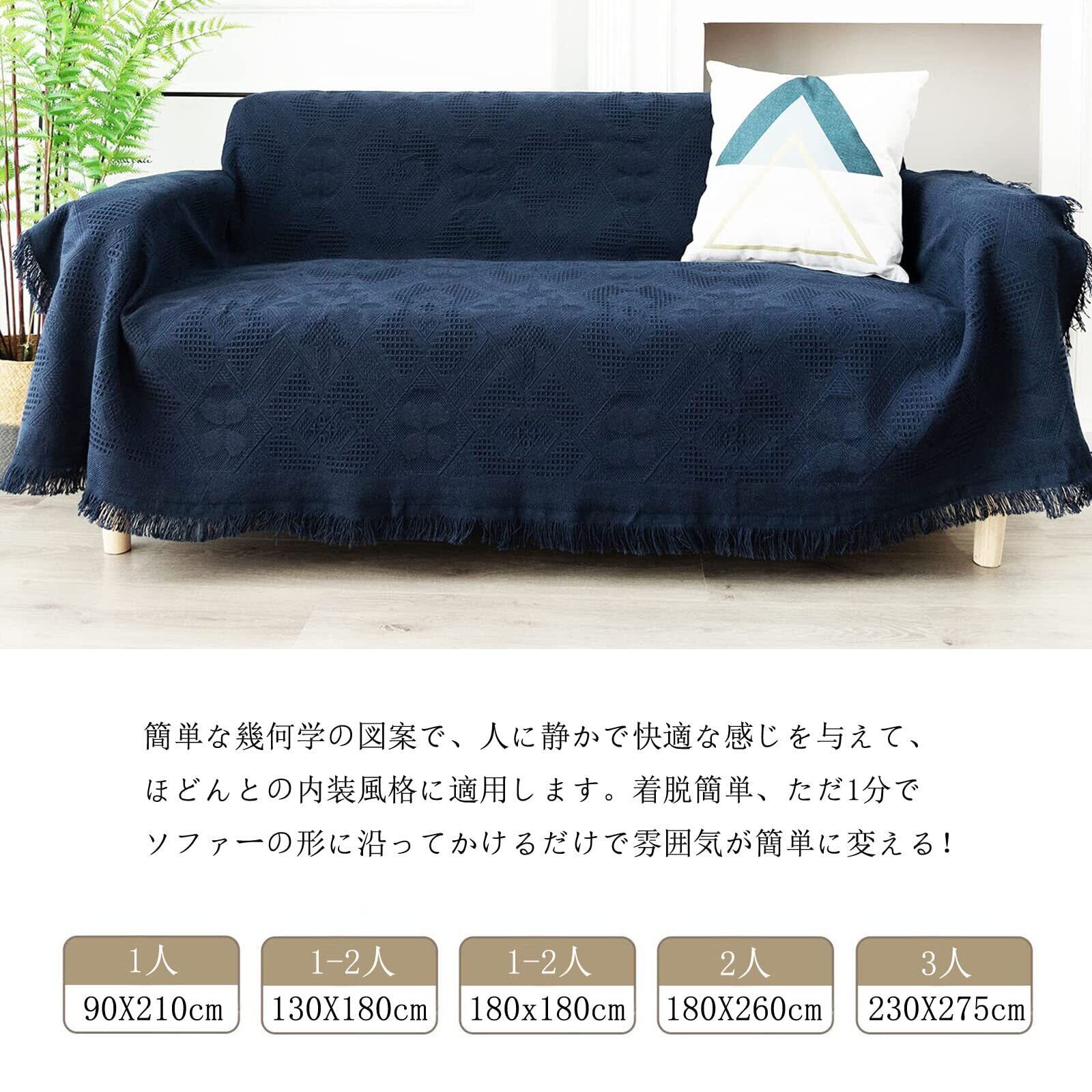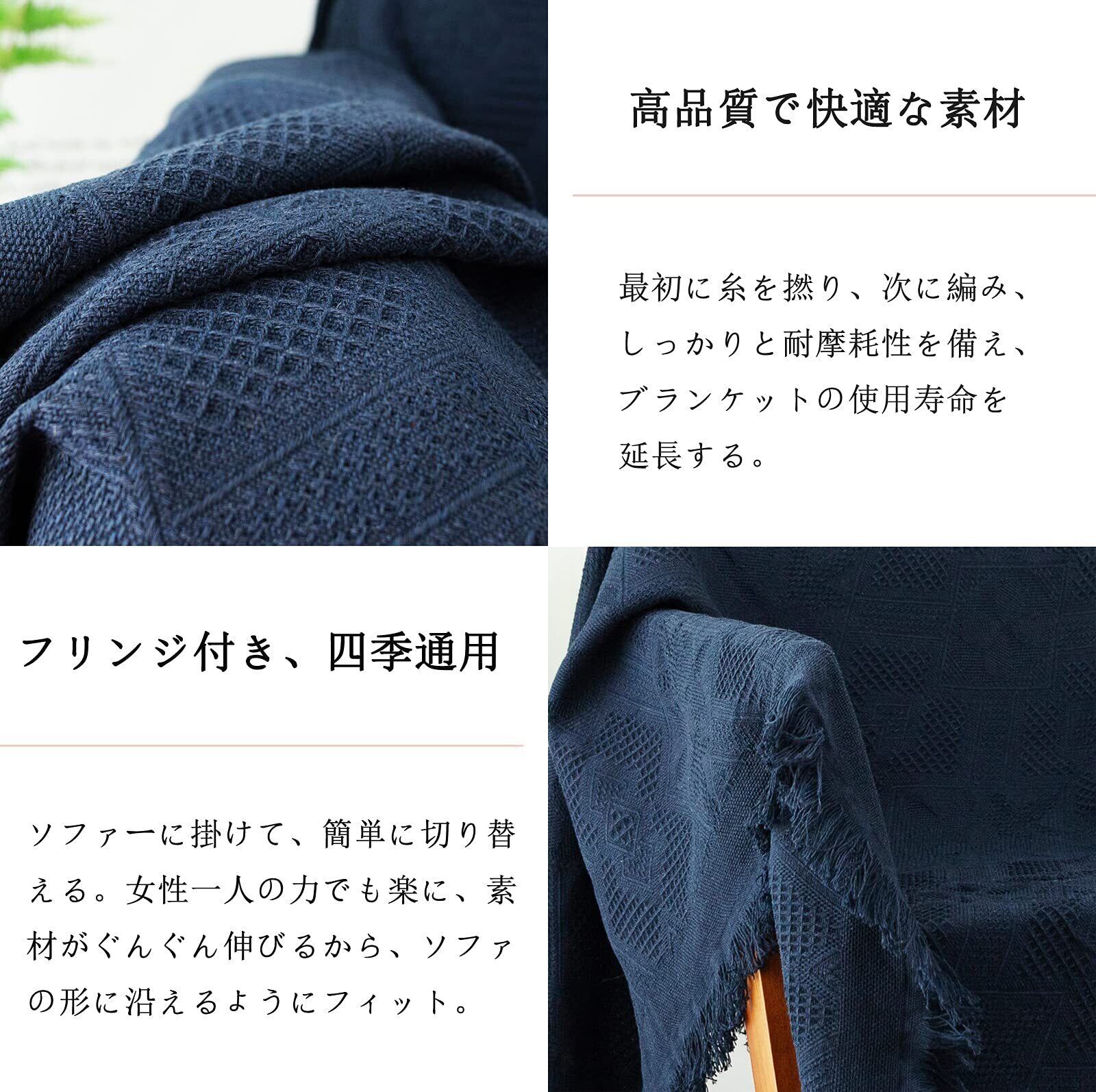 北欧風 マルチカバー 長方形 マルチカバーソファー 180*260cm ソファーカバー 1 2 3 人掛け おしゃれ ブランケット フリンジ付き 綿 ベッドカバー カウチ ベッドカバー 毛布 テーブルクロス キズ 汚れ防止 両面使える 水洗い 四季通用 ダークブルー