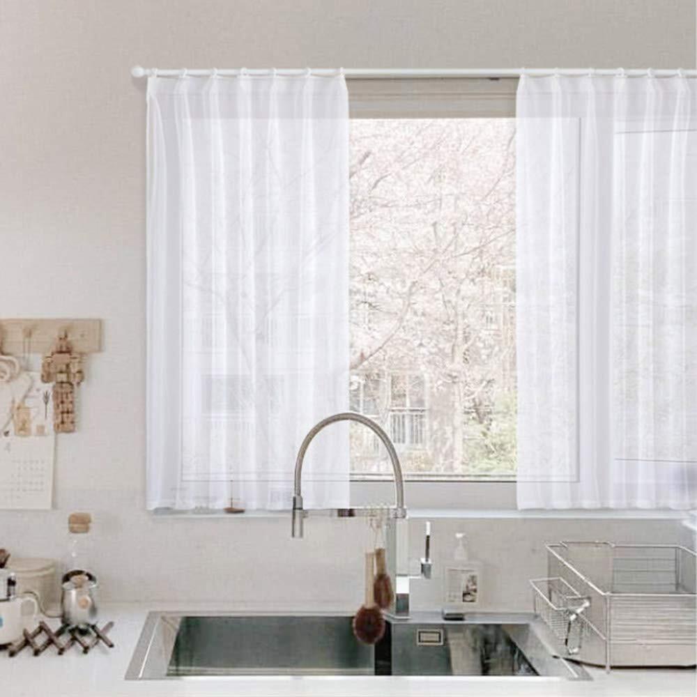 Topfinel レースカーテン おしゃれ 無地 2枚組 幅100cmx丈130cm 北欧 UVカット 省エネ 遮熱 ホワイト かわいい
