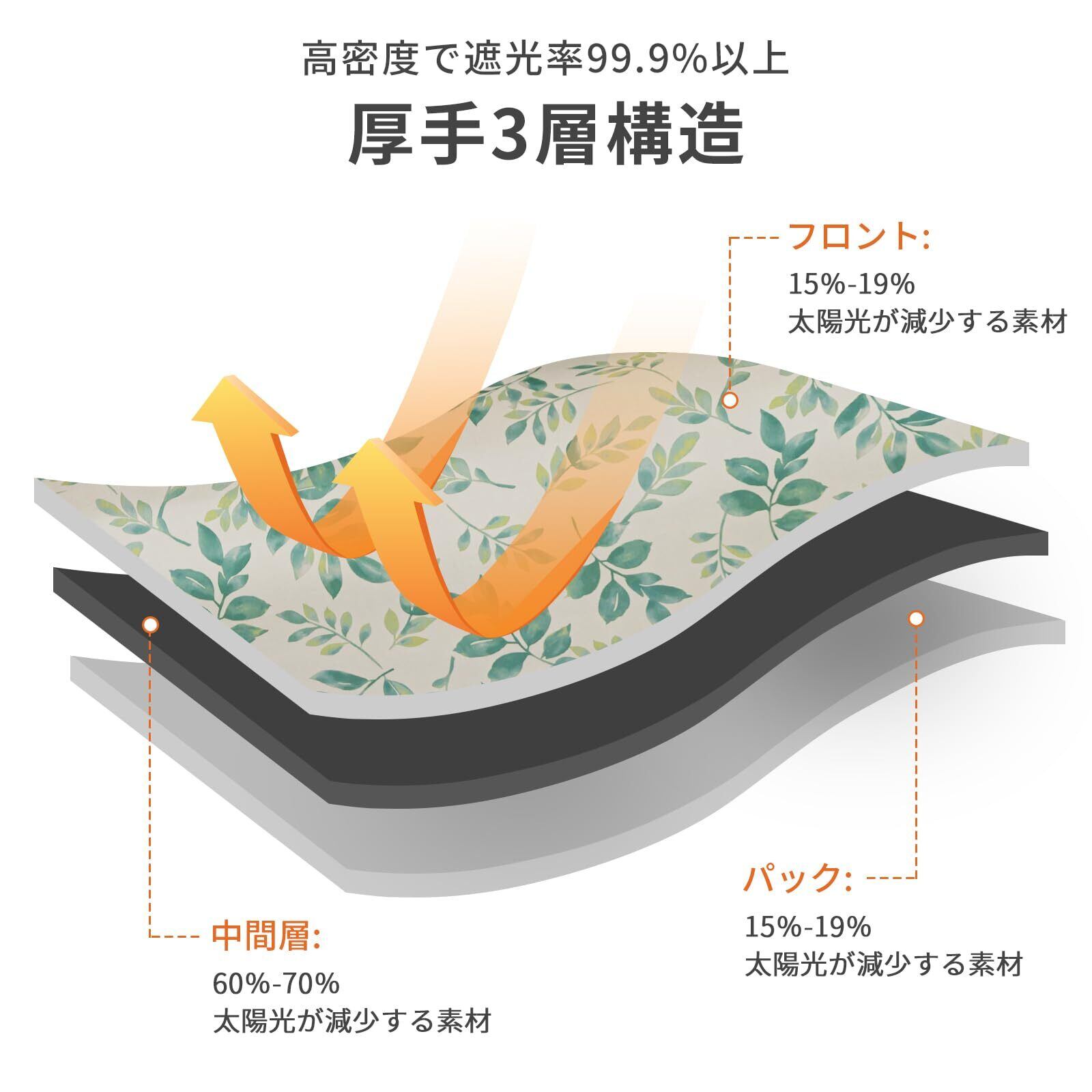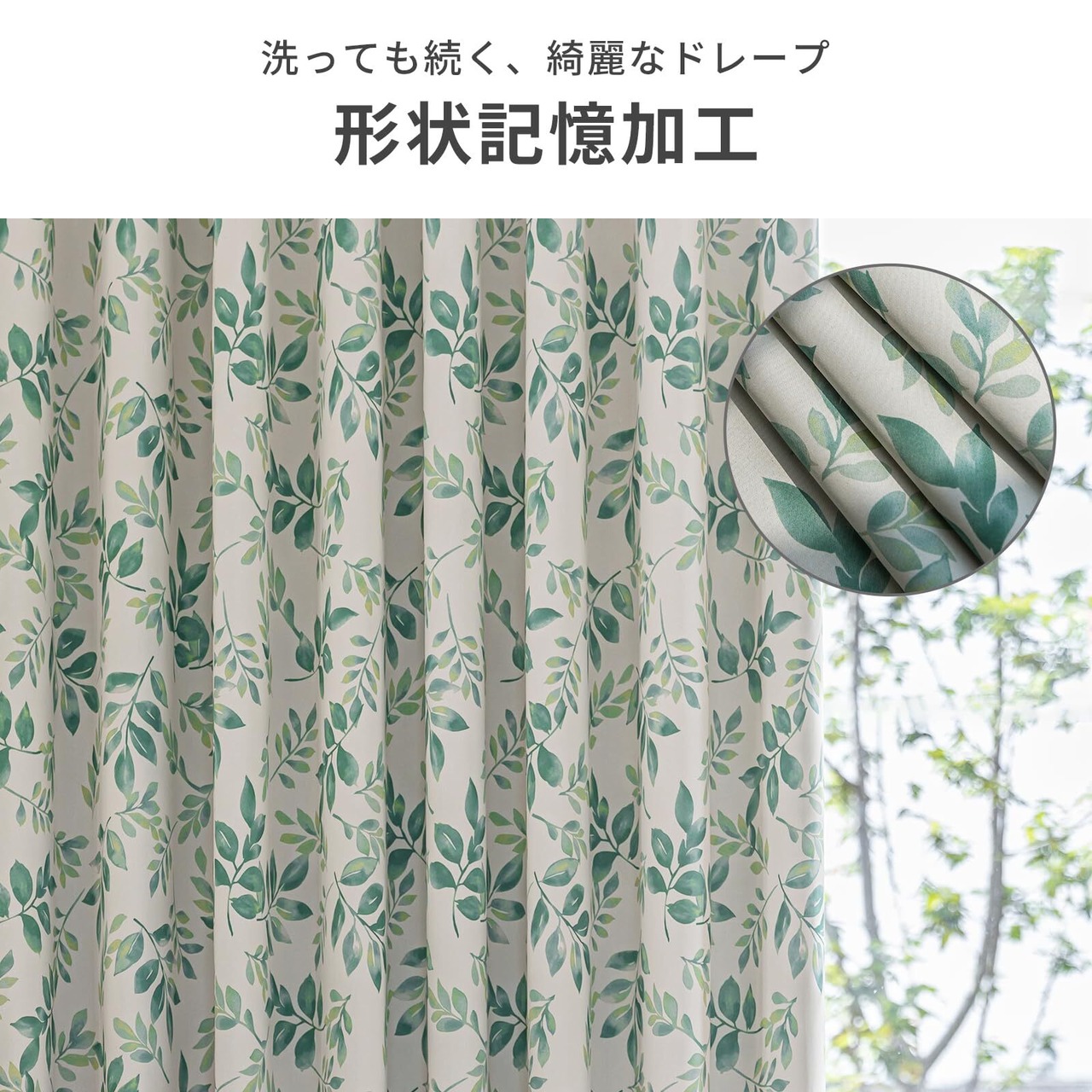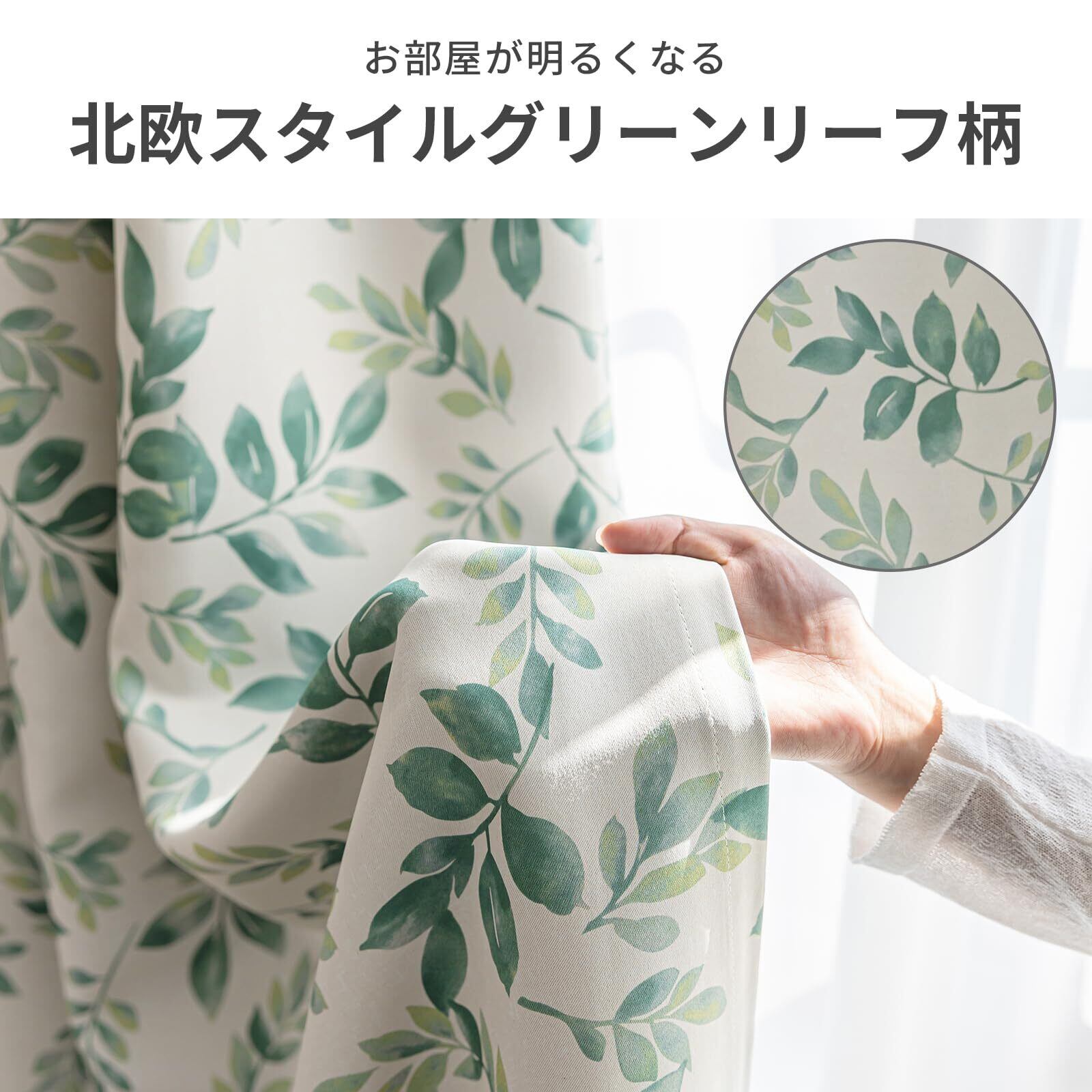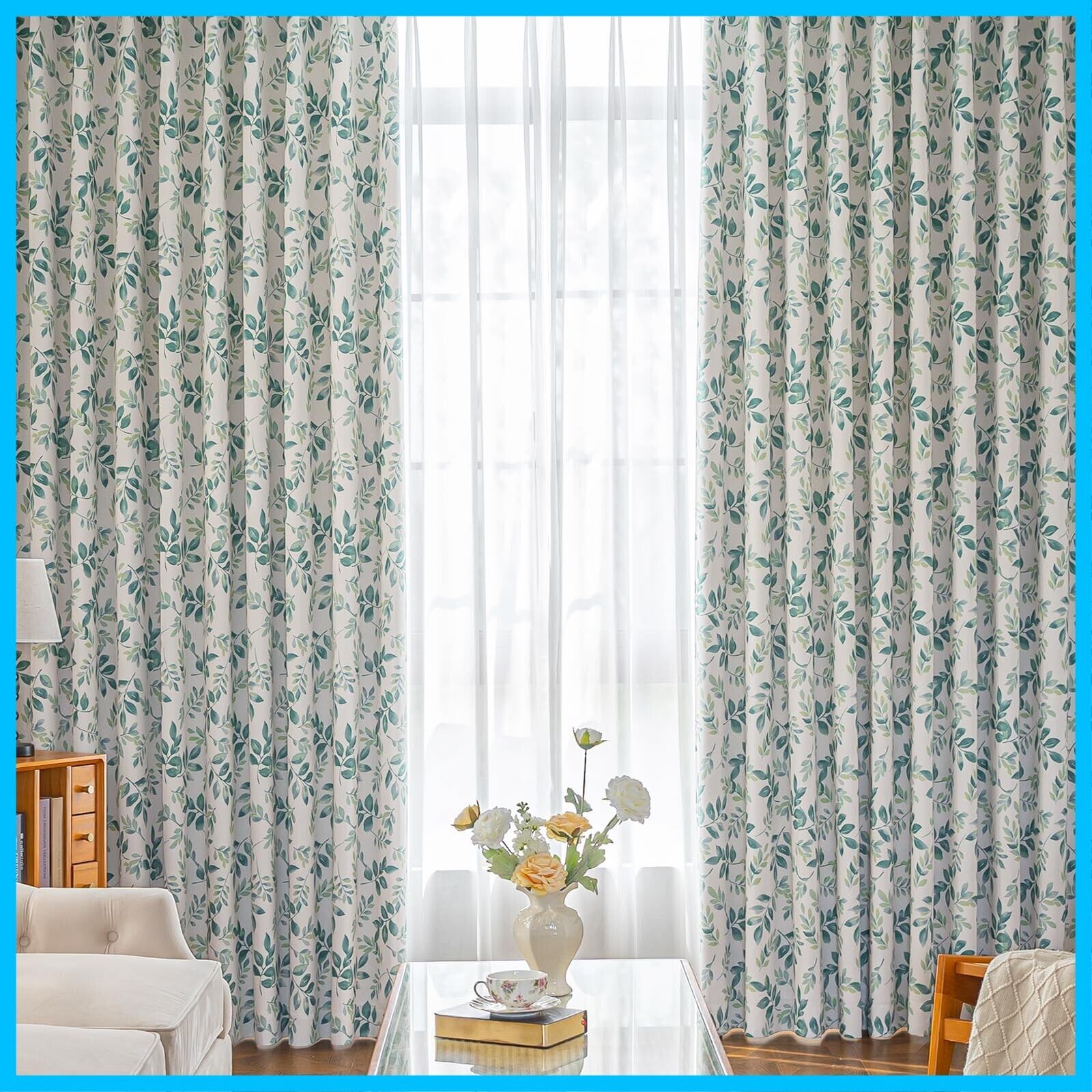 AZRA カーテン 遮光 99.9%以上 北欧 2級遮光 葉柄 幅100丈178CM 2枚セット 形状記憶 UVカット 断熱 防寒 節電 可愛い 爽やか リビング 喫茶店 幼稚園