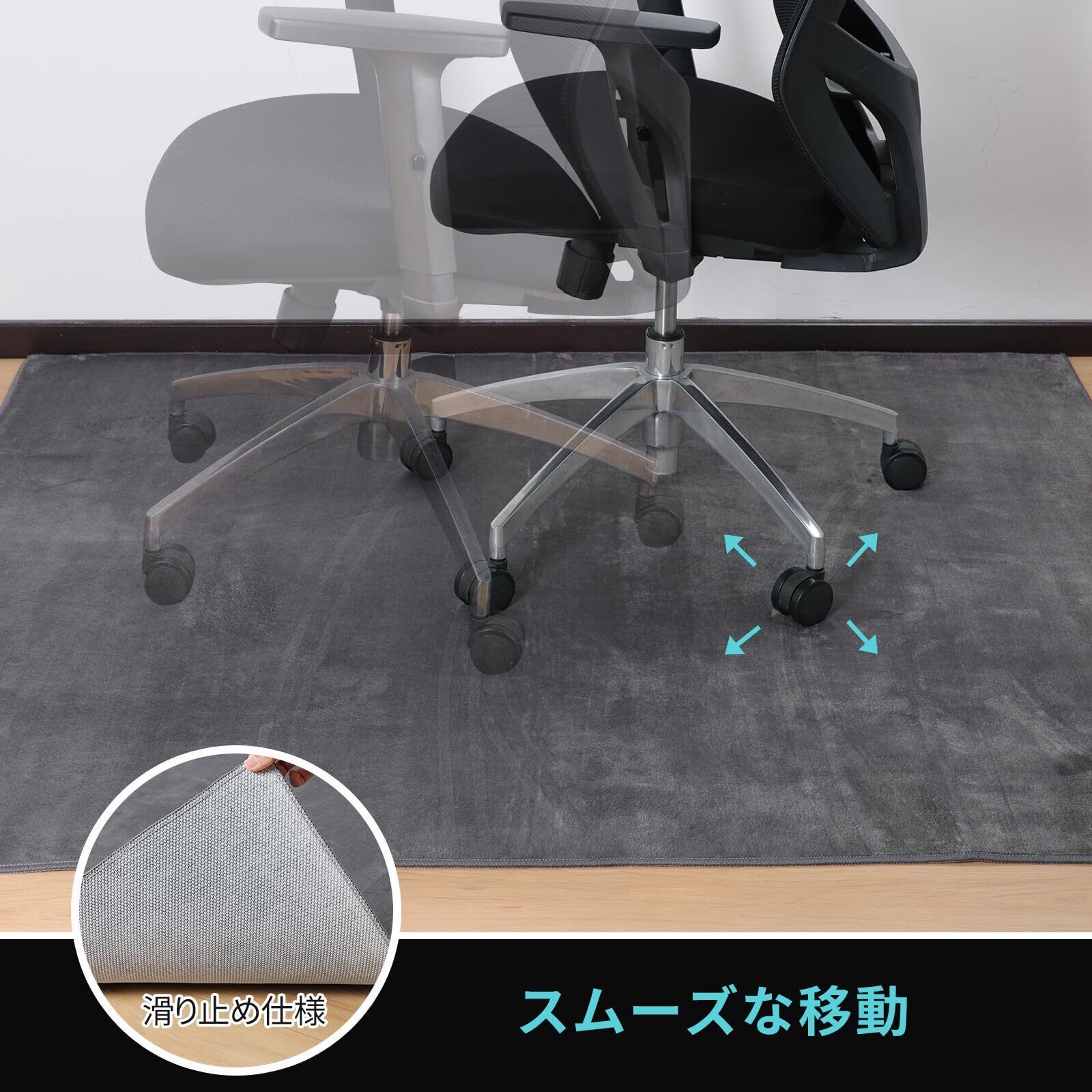 ゲーミングチェアマット 130×160cm チェアマット カーペットタイプ 滑り止め加工 フランネルタイプ フローリングマット 騒音対策 床暖房対応 床保護 傷防止 グレー