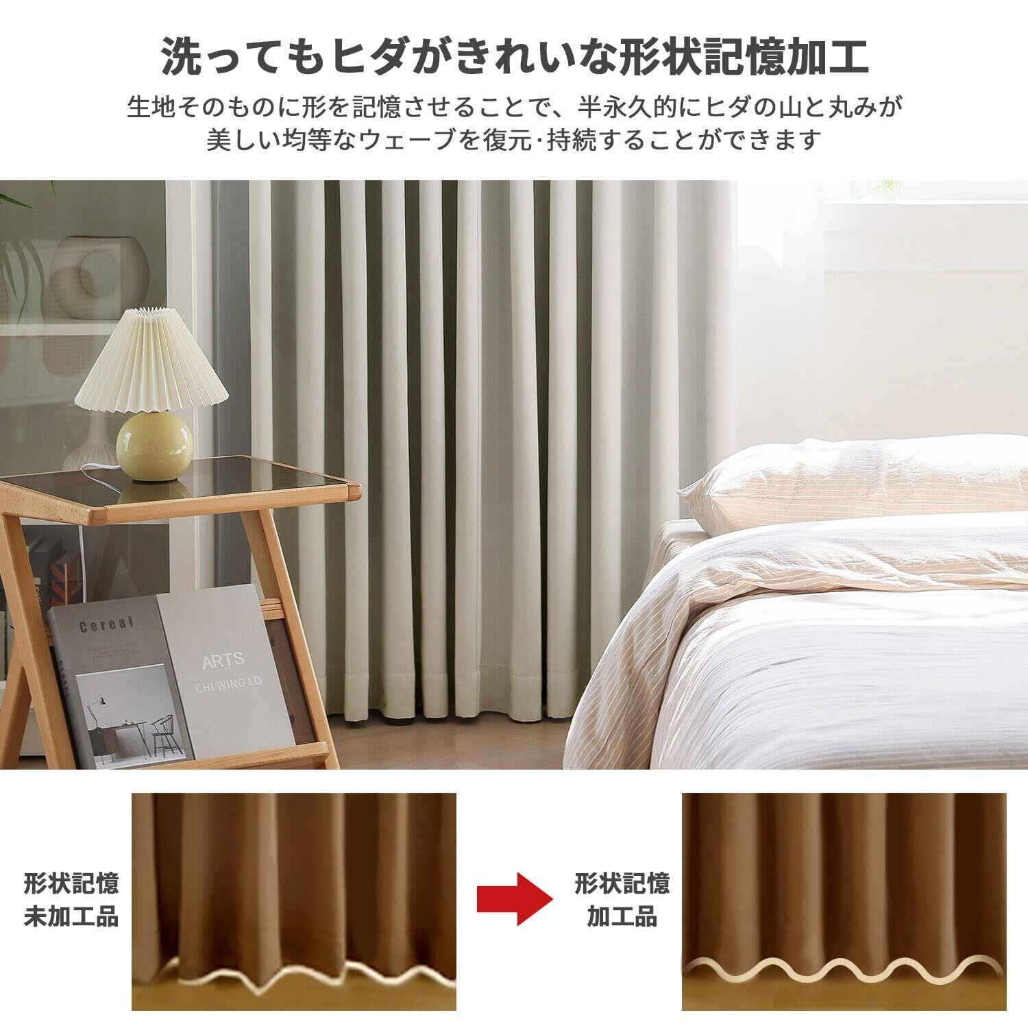 【形状記憶・丸洗いOK】市販の遮光カーテンとは異なり、形状記憶機能を追加しており、洗濯しても美しい均等なウェーブを復元します。洗濯機でまるごと洗え、カーテンレールに干しておけば、重みで洗濯シワも伸ばせるのでラクチン!