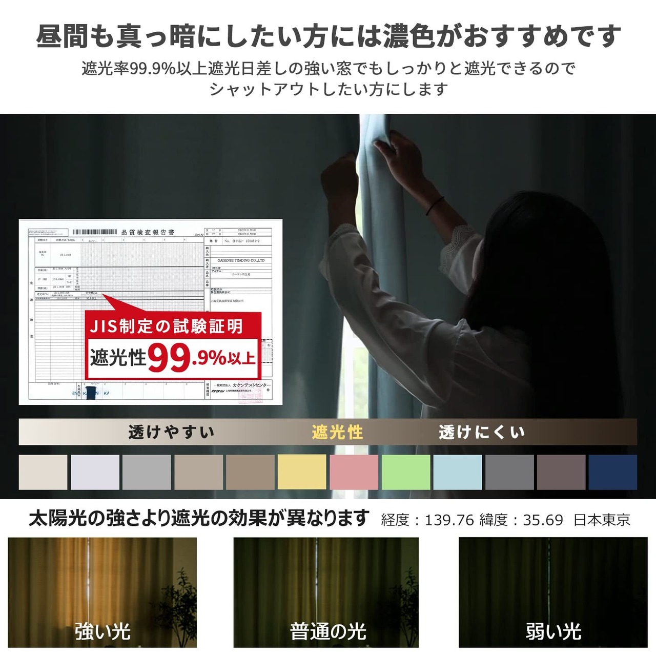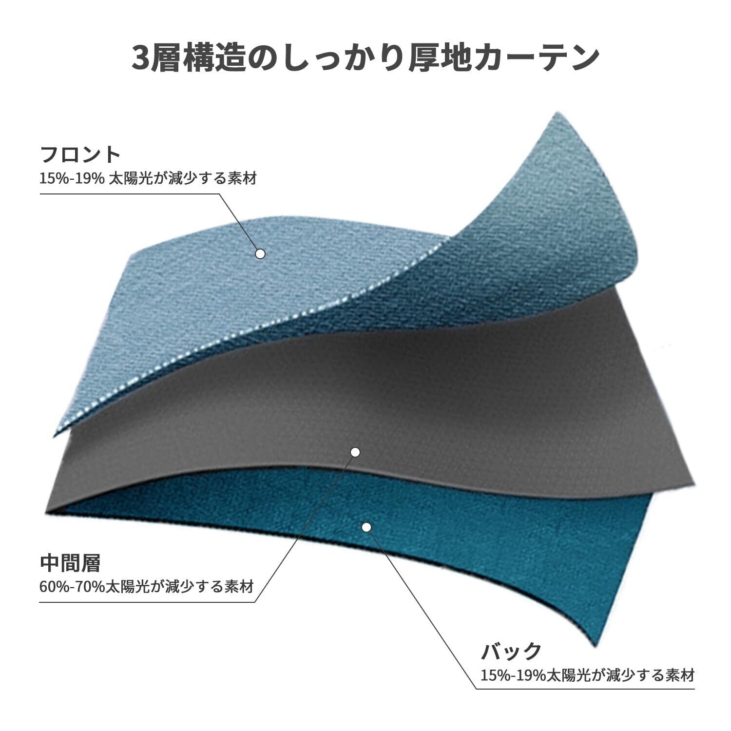 【一級遮光】カーテンは高密度の厚手の3層構造材料で99.99%以上遮光率を実現。日差しの強い窓でもしっかりと遮光できるので、光が透けにくく、日中に降り注ぐ強い日差しもシャットアウト!※同じ遮光率でもカーテン色により遮光効果が異なります。淡色は光が透けやすい性質があるため、より高い遮光性を求める方は濃色をお選び下さい。