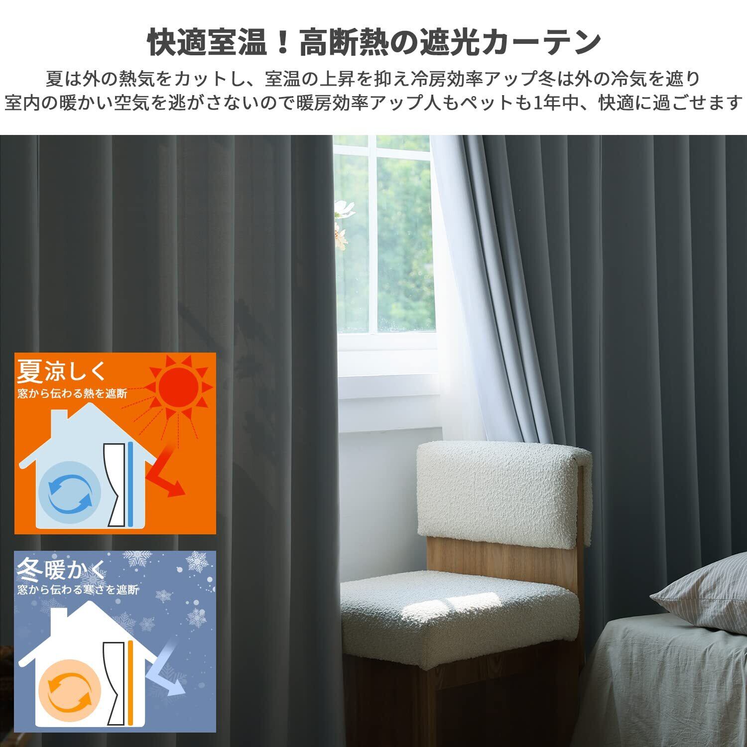 【断熱&防寒&防音】遮熱効果もバッチリ!夏は外から入ってくる熱を、冬は室内から熱が逃げるのを防いでくれる、オールシーズン使える遮光カーテンです。冷暖房の効果もアップするのでお財布にも優しい。厚手の生地で防音効果もある防音カーテンです。