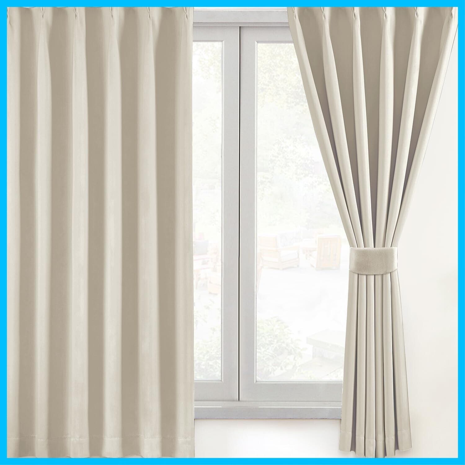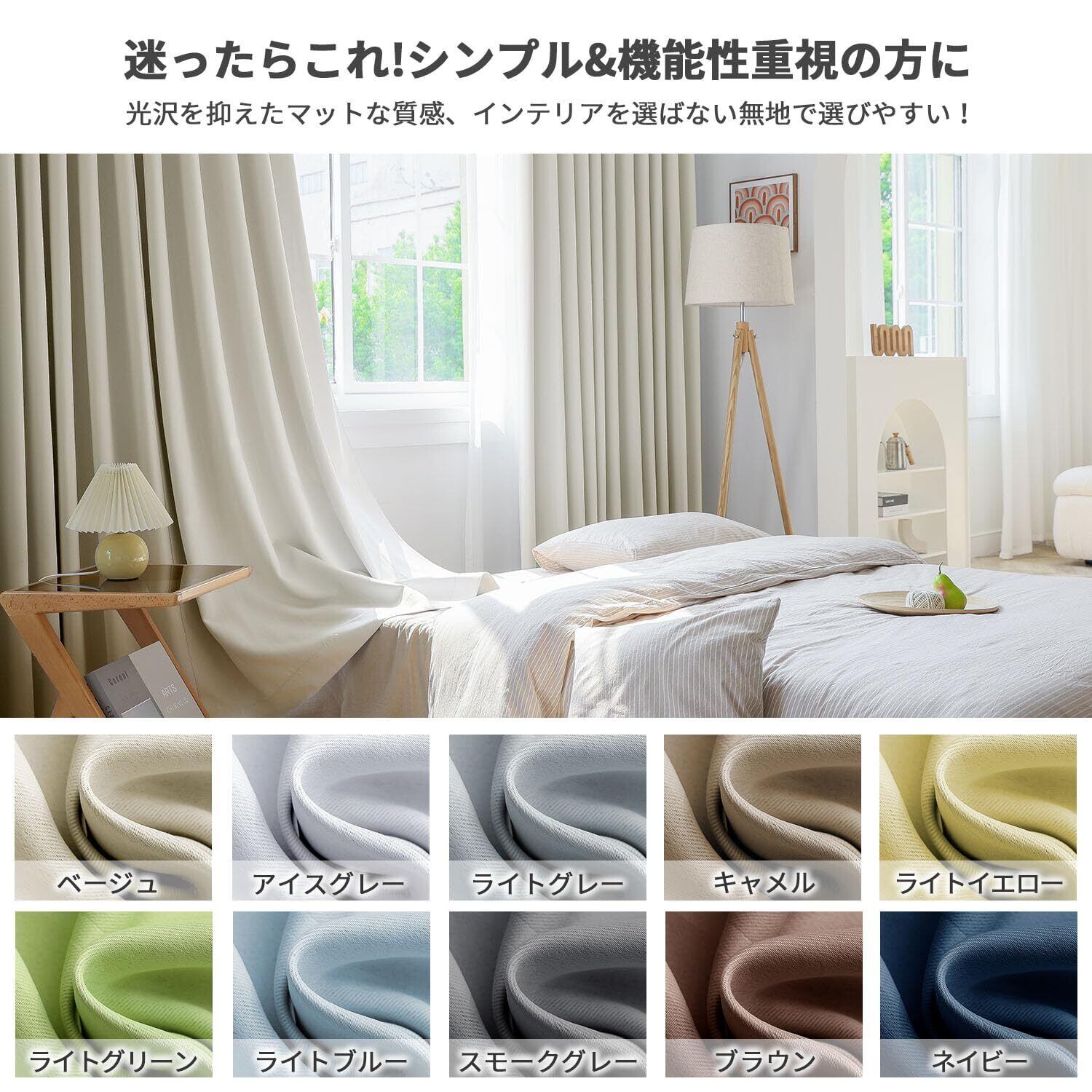 AZRA カーテン 1級遮光 2枚セット 防音 断熱 防寒 目隠し おしゃれ 既成 無地 寝室 リビング 洗濯可能(ベージュ,幅100×丈90cm)