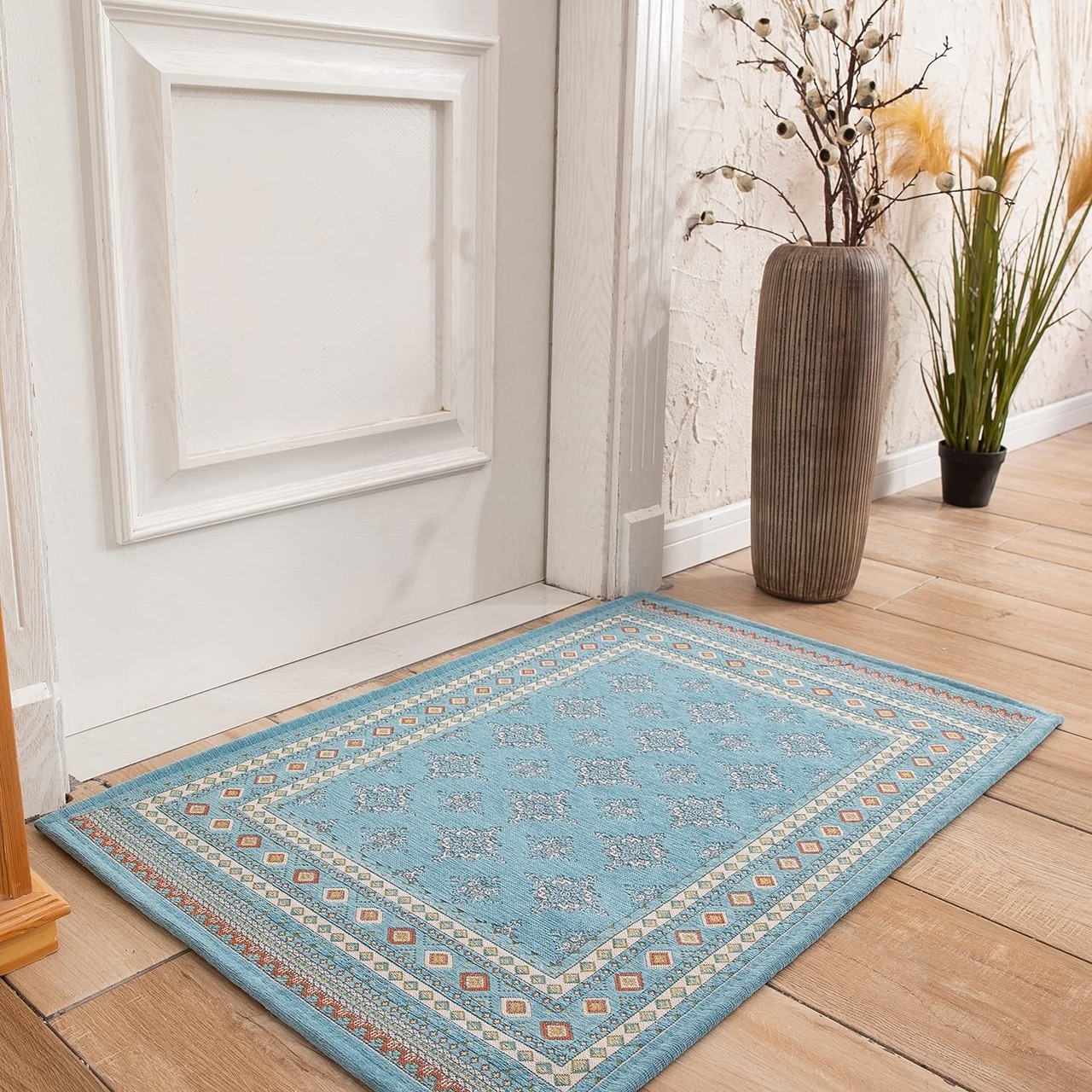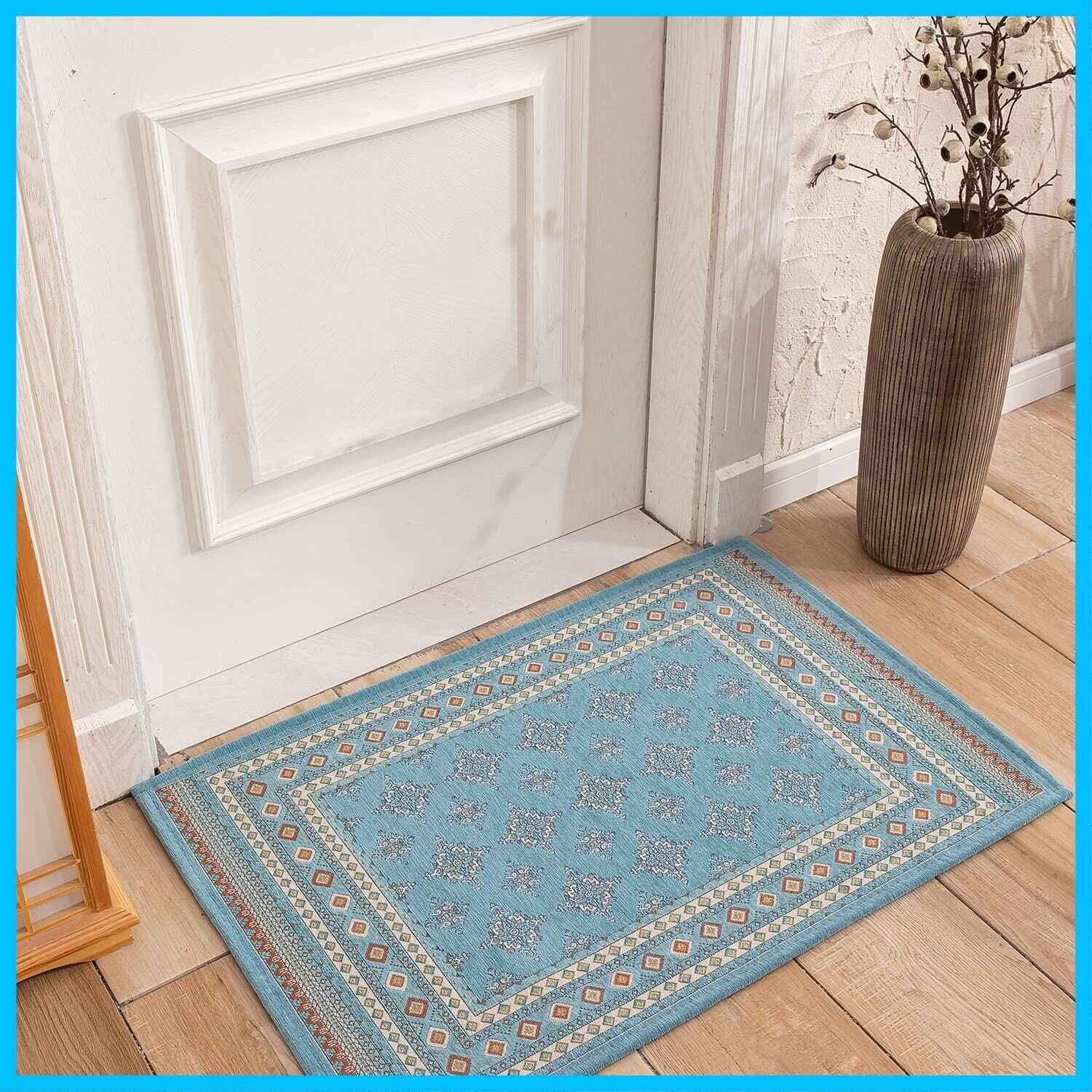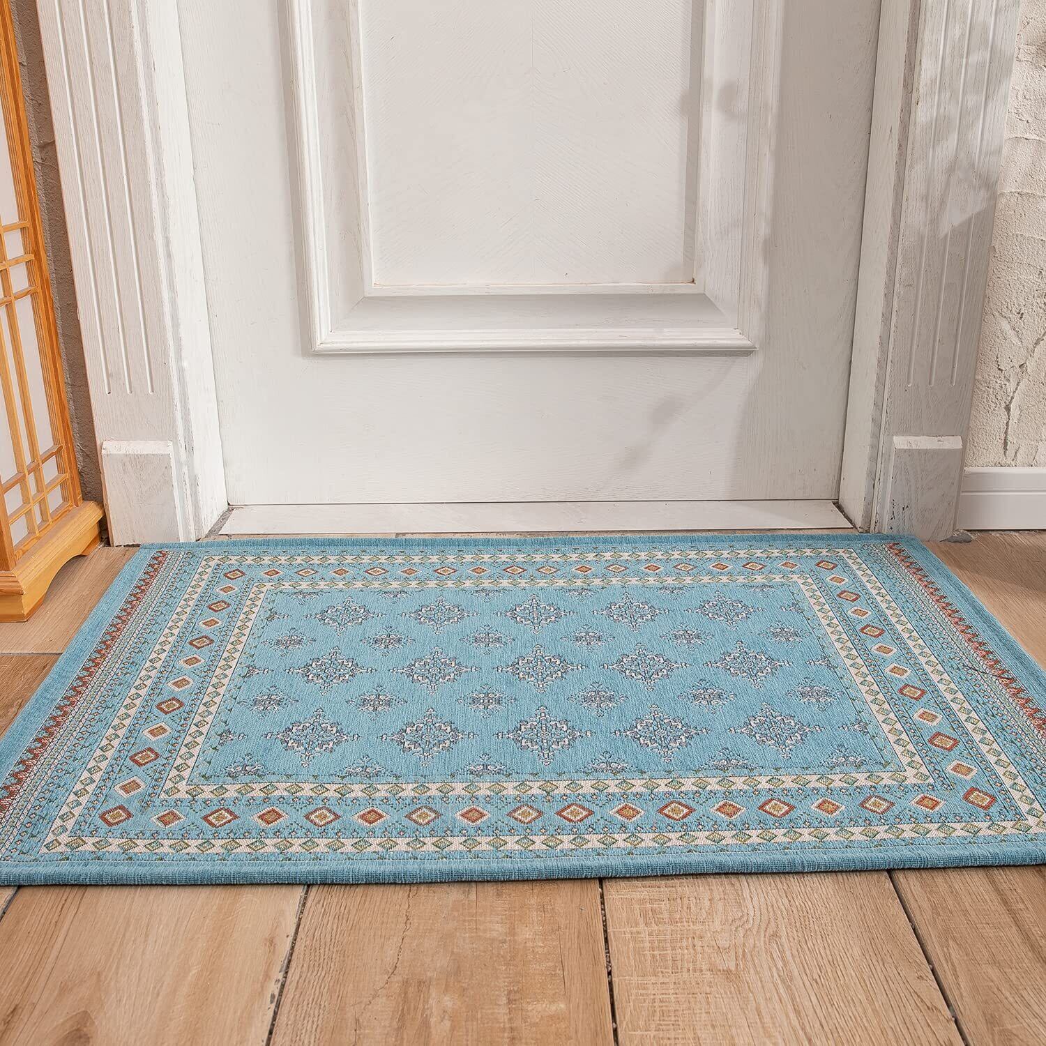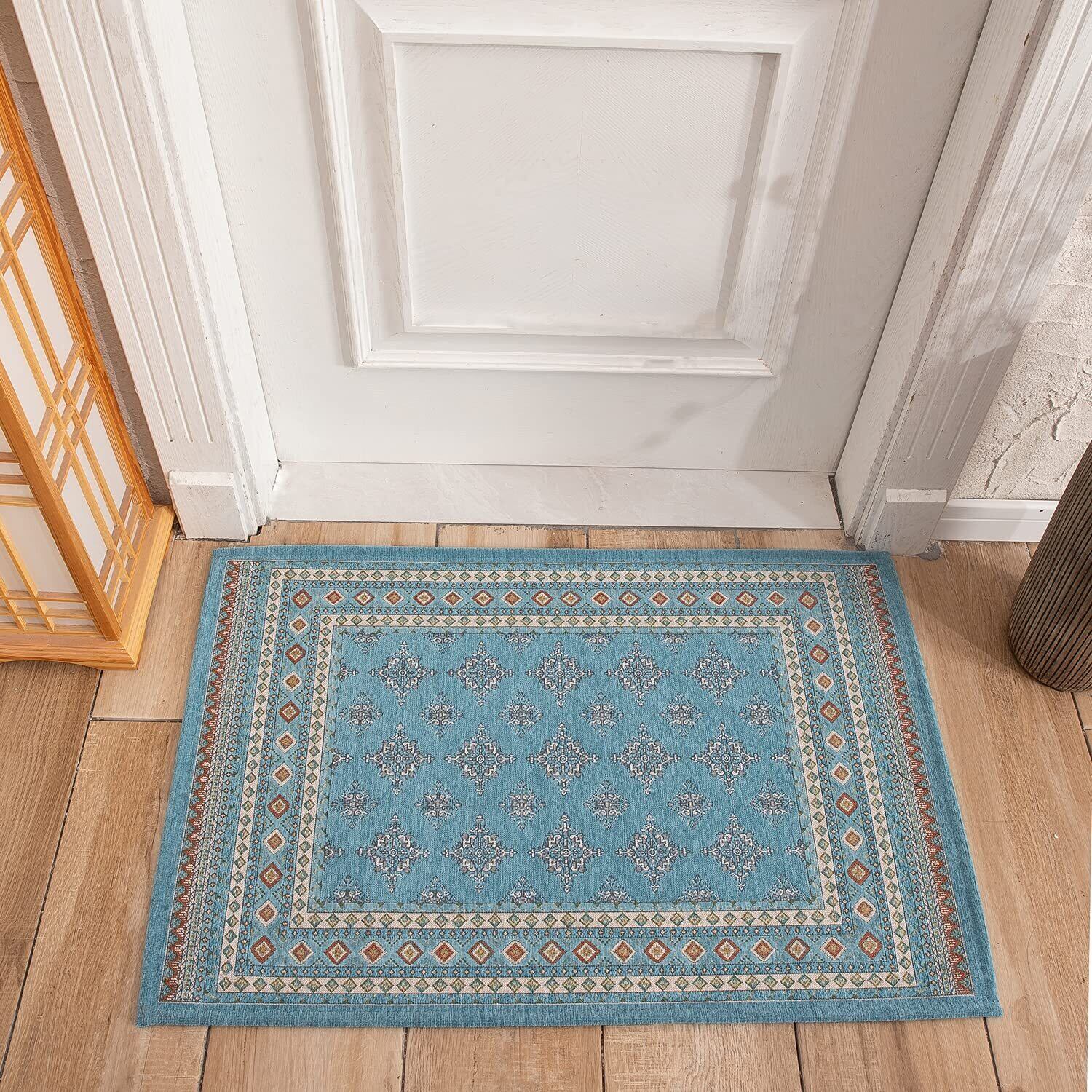 カーペット 玄関マット 屋外 屋内 北欧 洗える おしゃれ ドアマット 泥落とし ゴブラン織り すべり止め 床暖房対応 60 * 90cm 業務用 家庭用 オフィス用 ブルー
