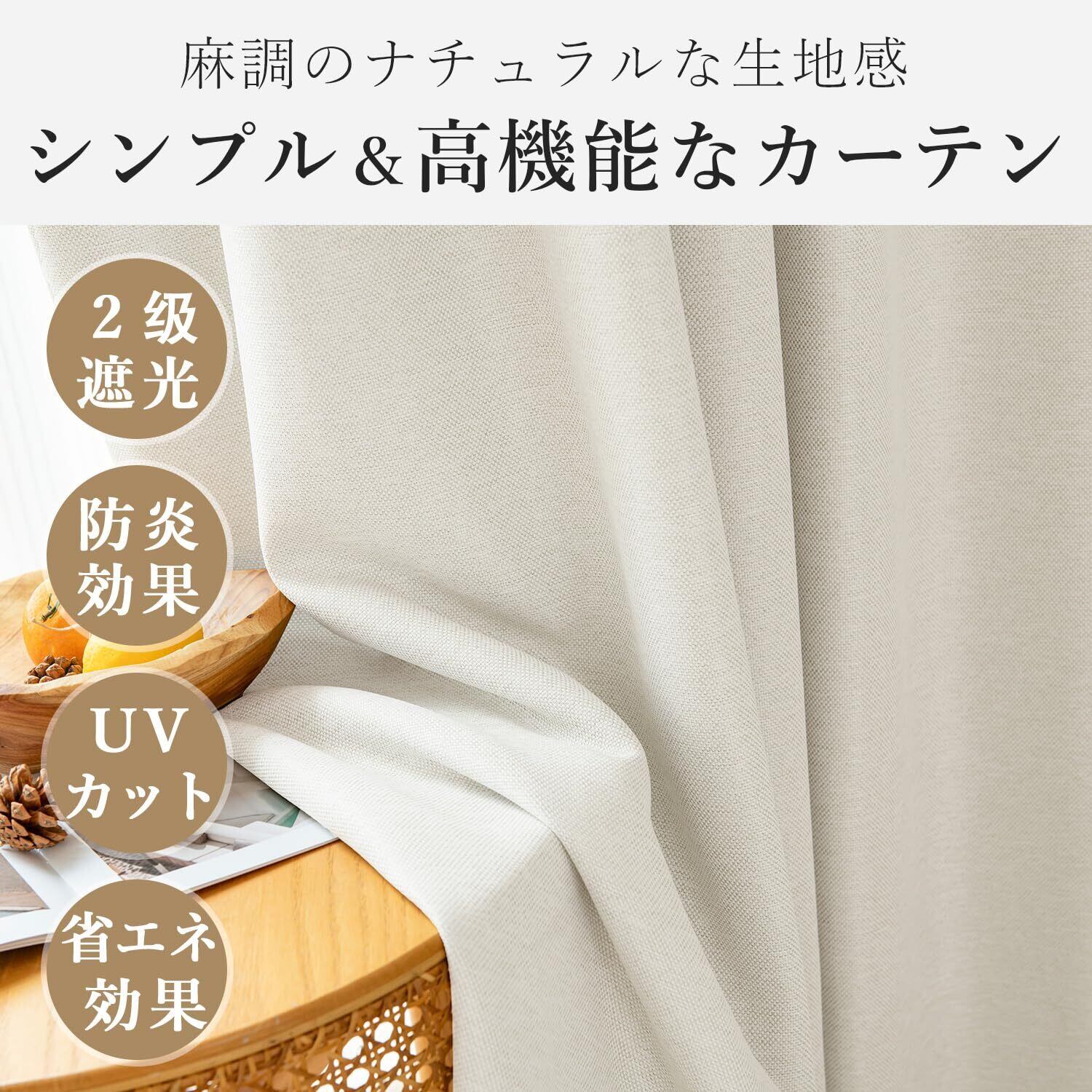 AIFY 防炎 カーテン 2枚組 2級遮光 UVカット 断熱 保温 遮熱 防寒 防音 ドレープカーテン 形態記憶加工 省エネ 洗濯機対応 厚手 無地 おしゃれ 寝室 リビング (カーテン2枚) 幅100cm×丈135cm アイボリー