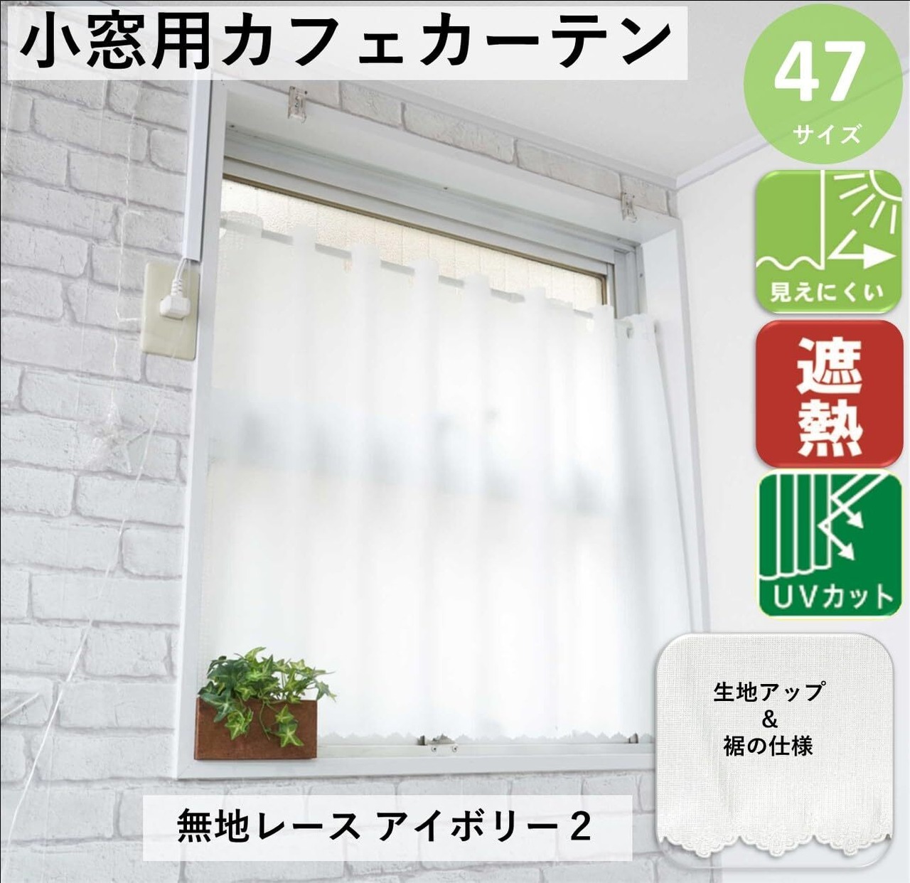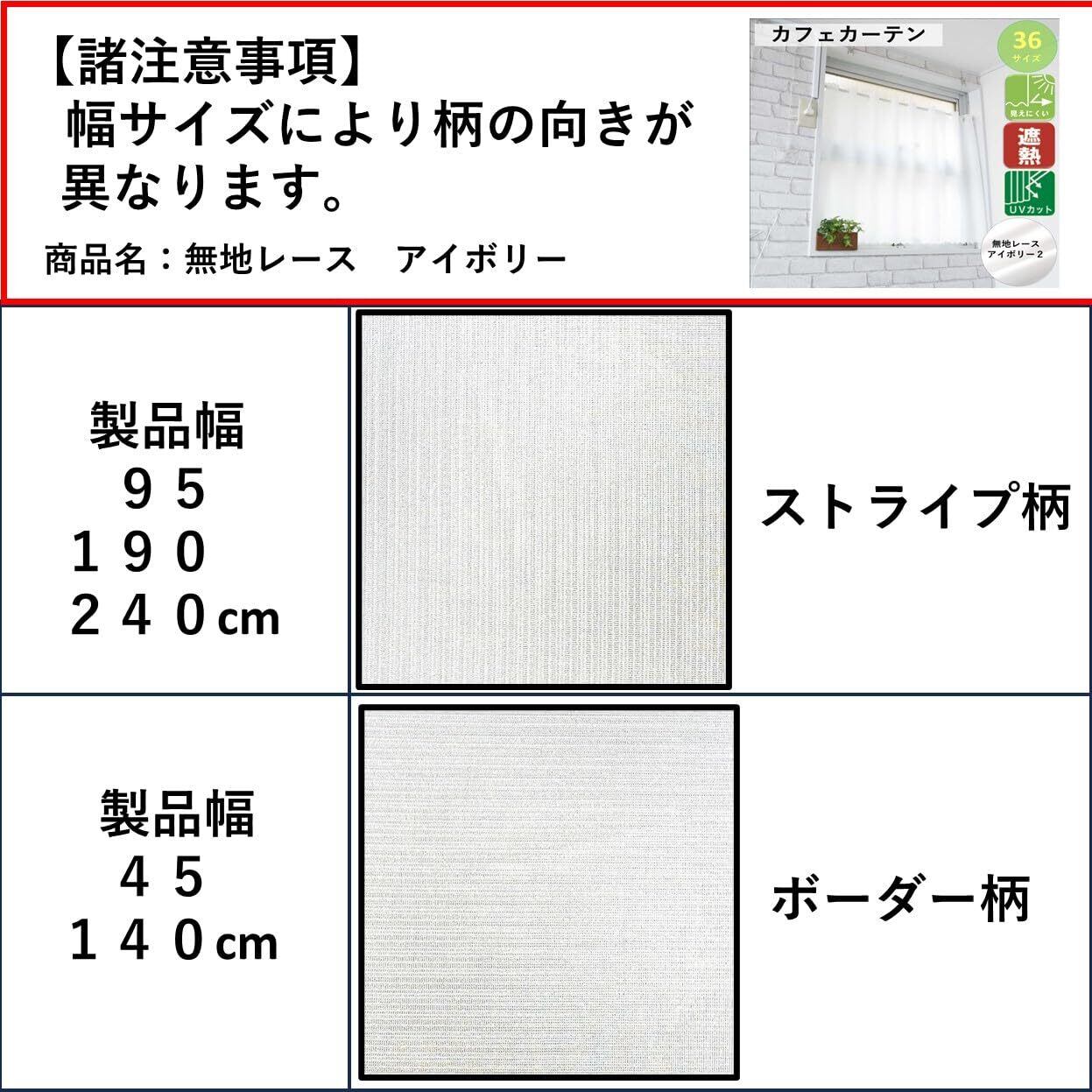 【製品・カラー・サイズ】 カフェカーテン・無地レース アイボリー2・幅45cm x 丈130cm 適応幅:25〜35cm