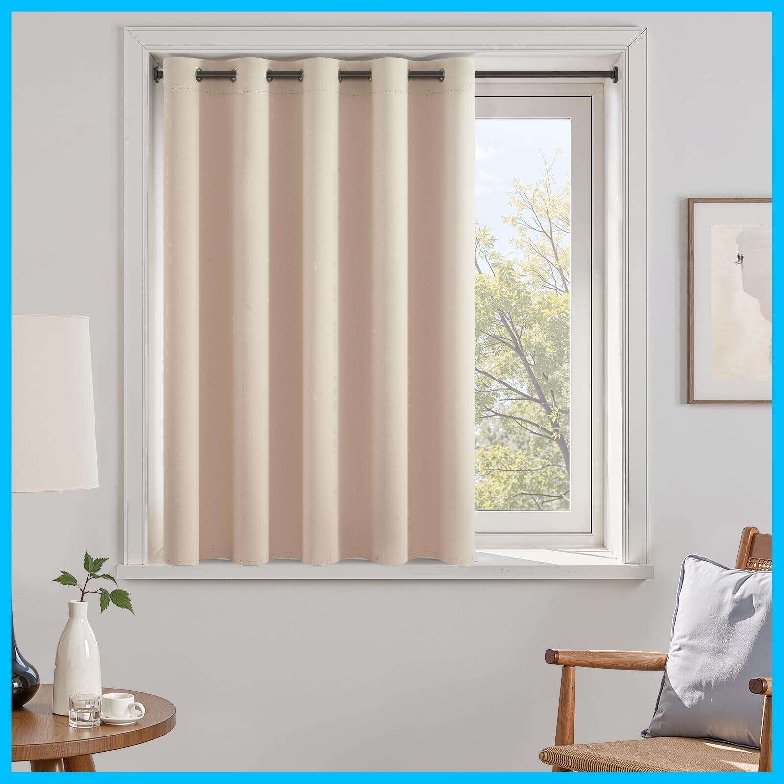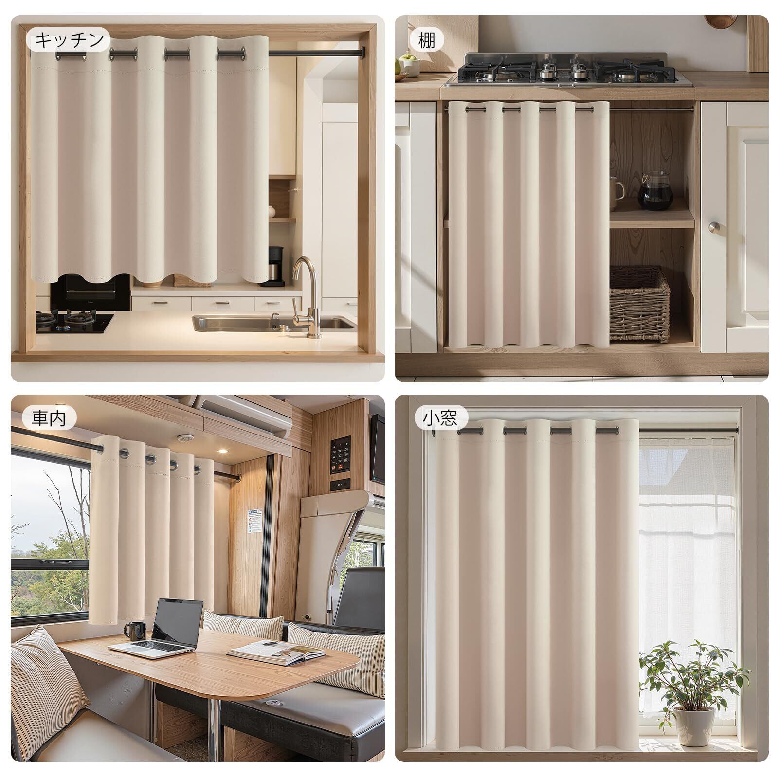 Topfinel カフェカーテン 遮光 カーテン 小窓 60cm丈 ベージュ 1枚 ハトメ型 遮光 断熱 UVカット 目隠し 間仕切り 洗える 寝室 キッチン リビング 車内