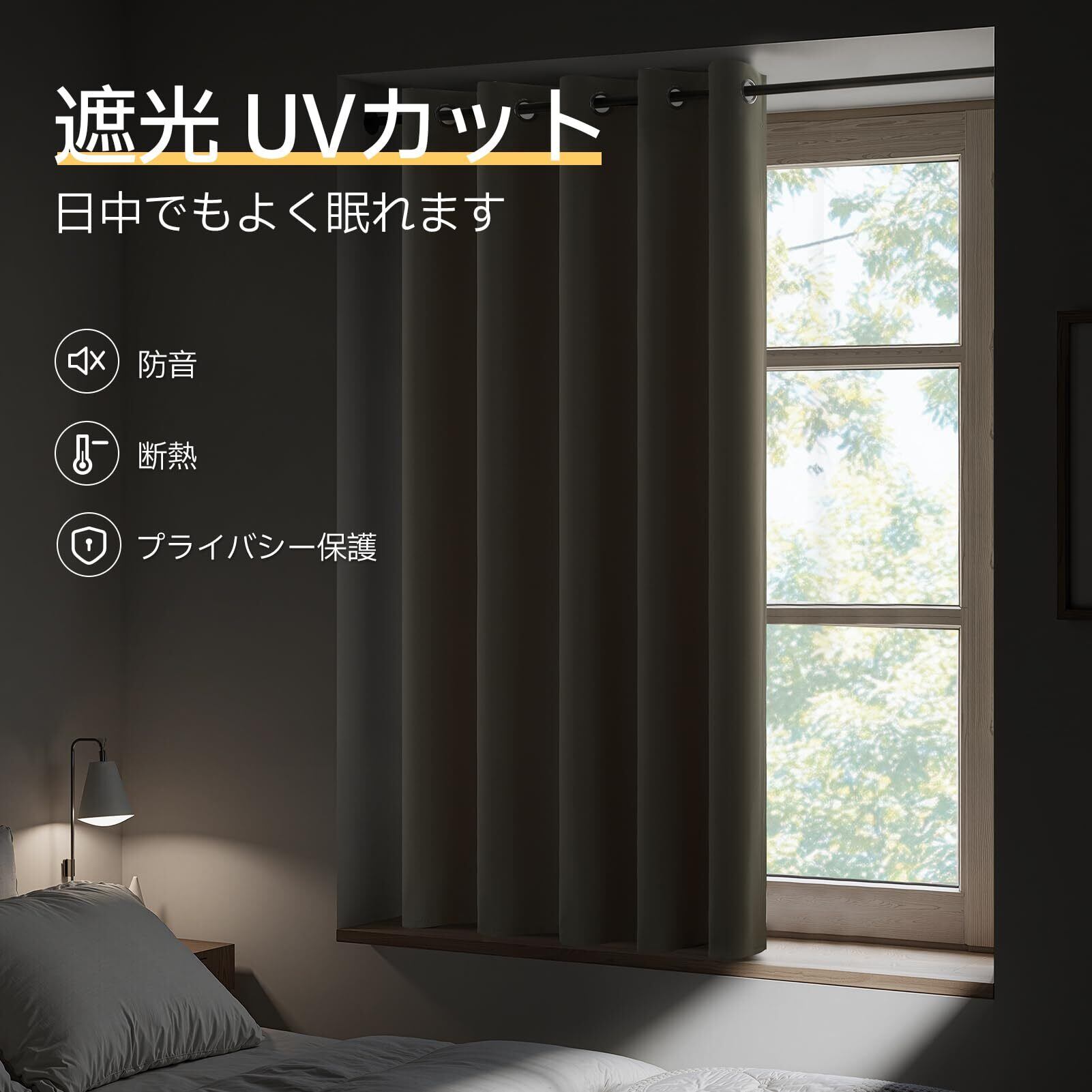 【目隠し】厚みのある生地が外部からの視線を遮断し、プライバシーを保護。夜間に部屋の明かりをつけていても、外から見えにくいのです。