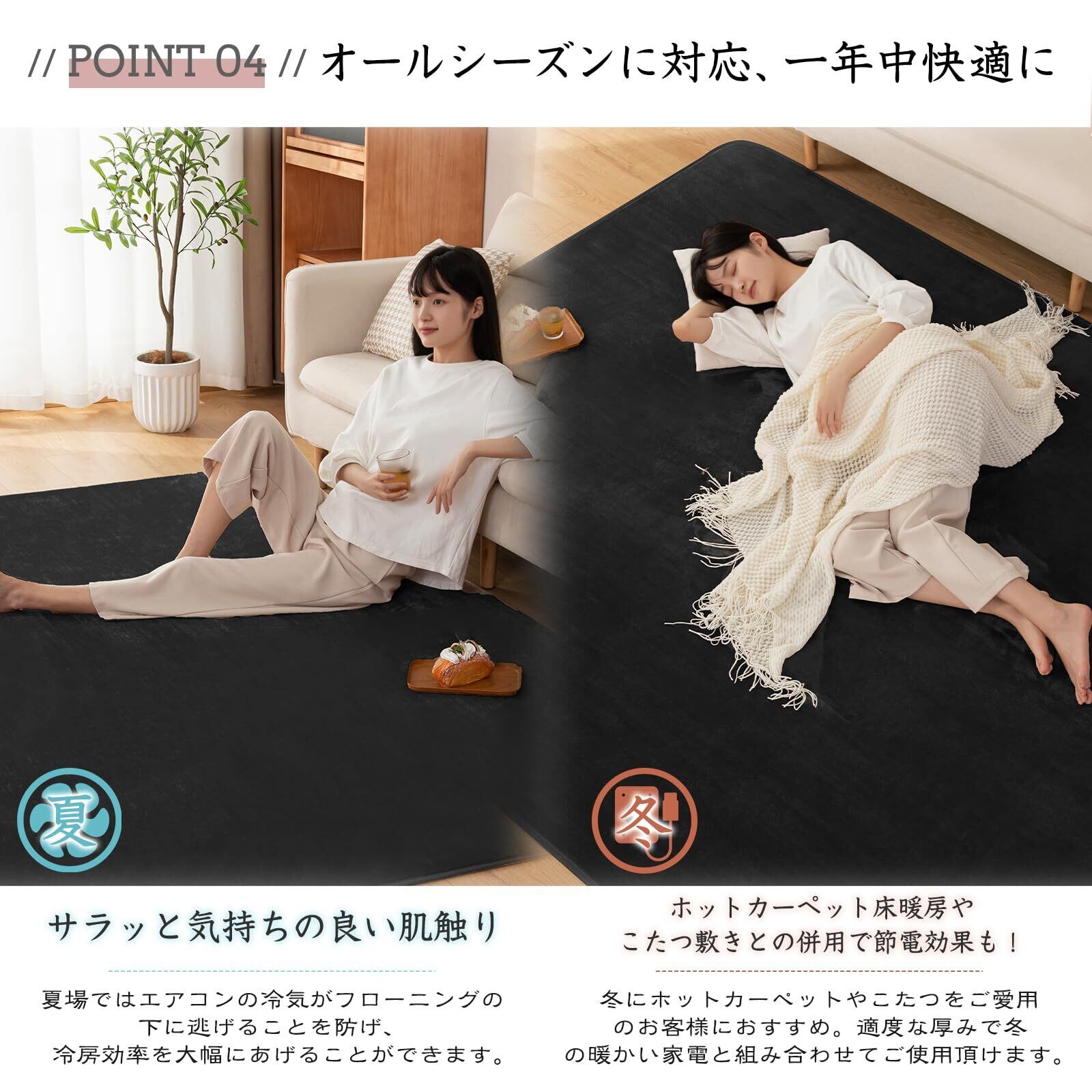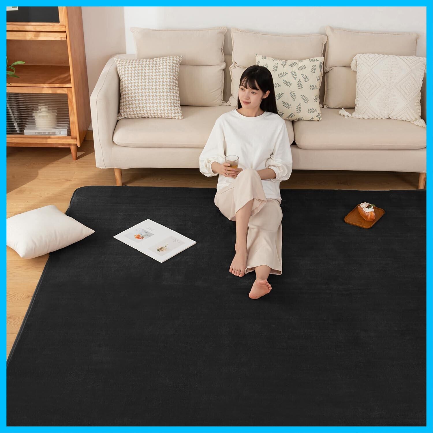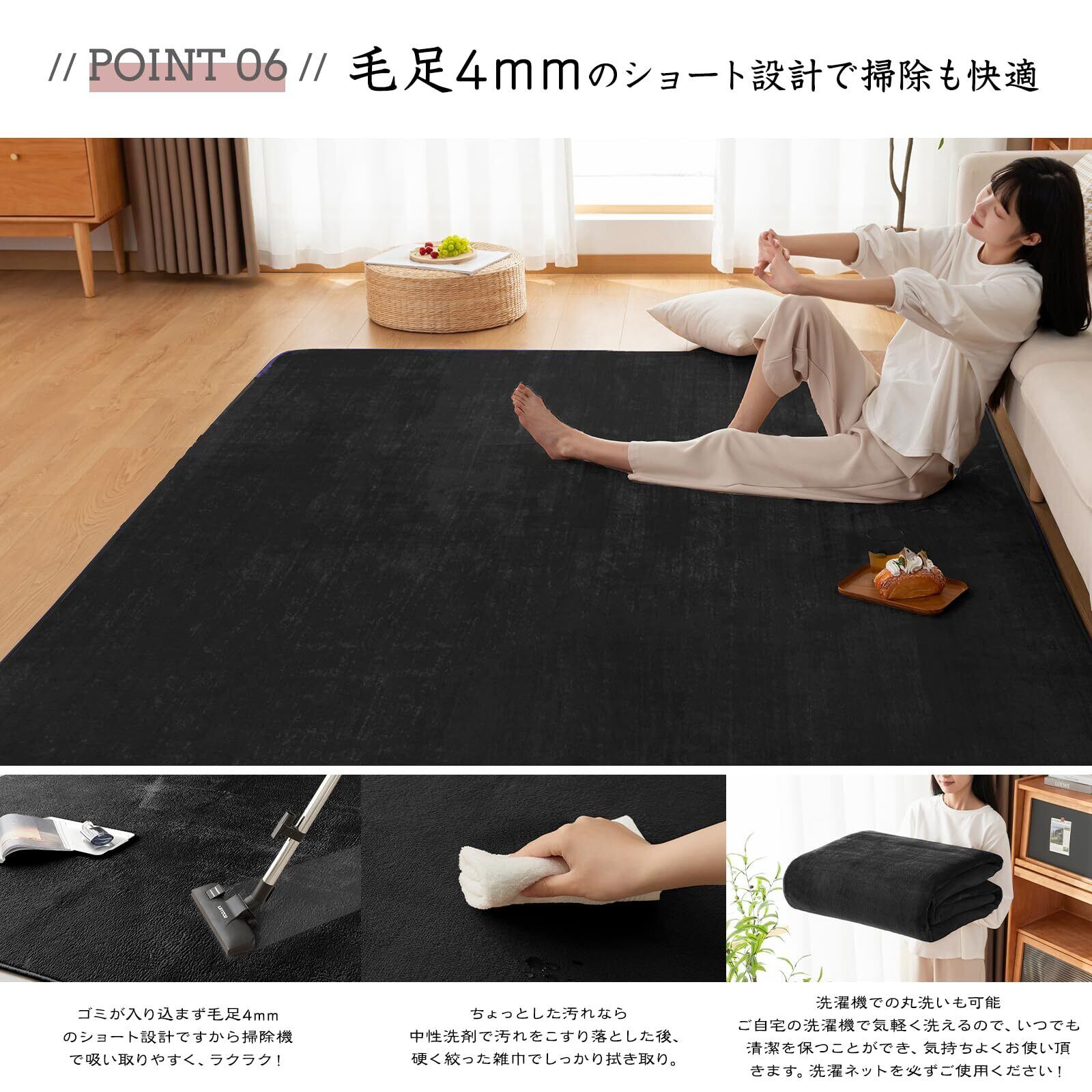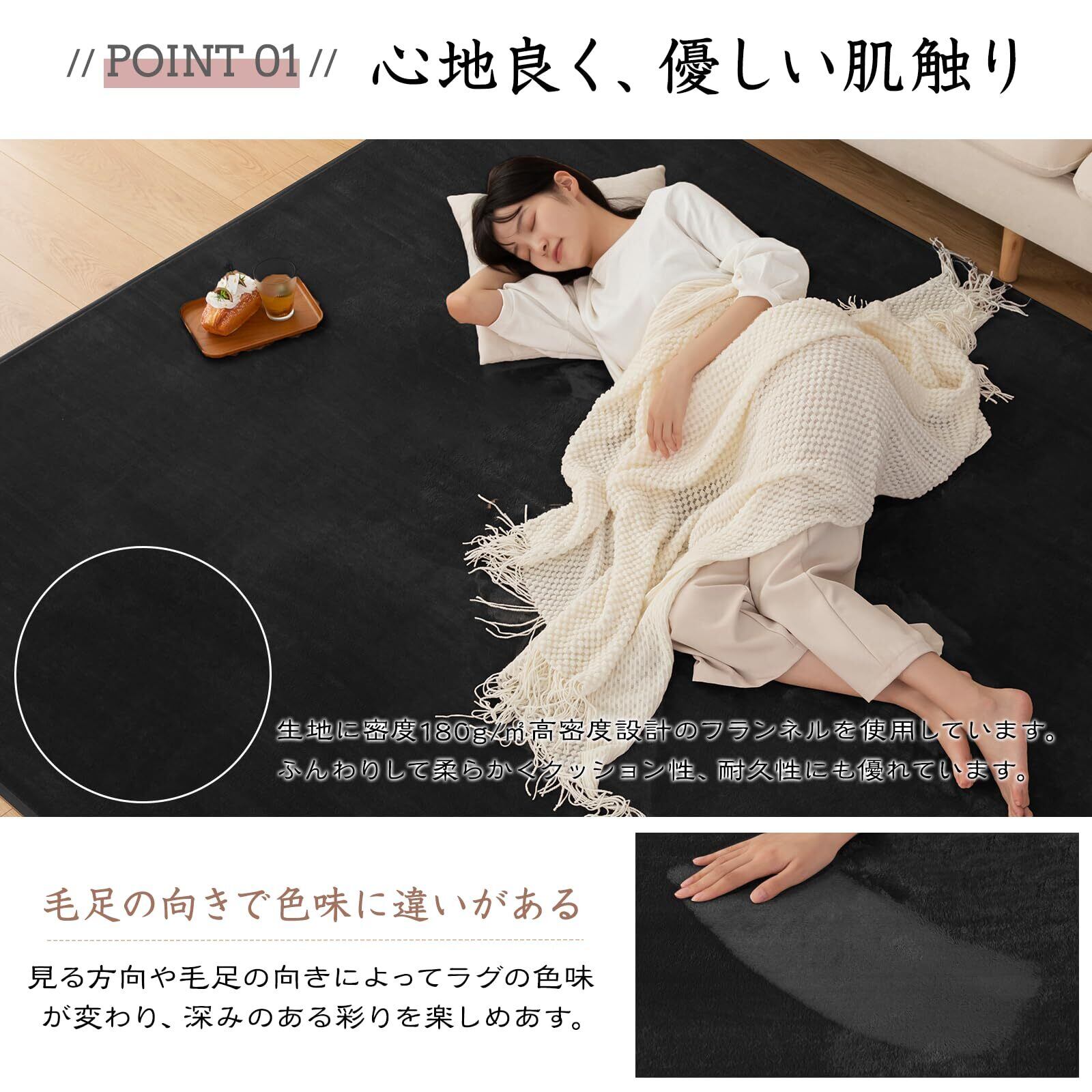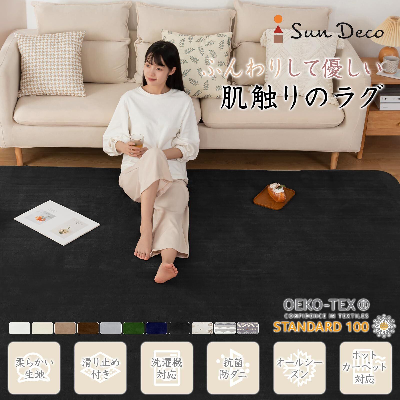 Sun Deco カーペットラグ 洗えるラグマット 絨毯 135×185cm(約1.5畳) 抗菌 防臭 防ダニ 滑り止め付き オールシーズン 床暖房 ホットカーペット対応 丸洗い フランネル 無地・ブラック 135185BK