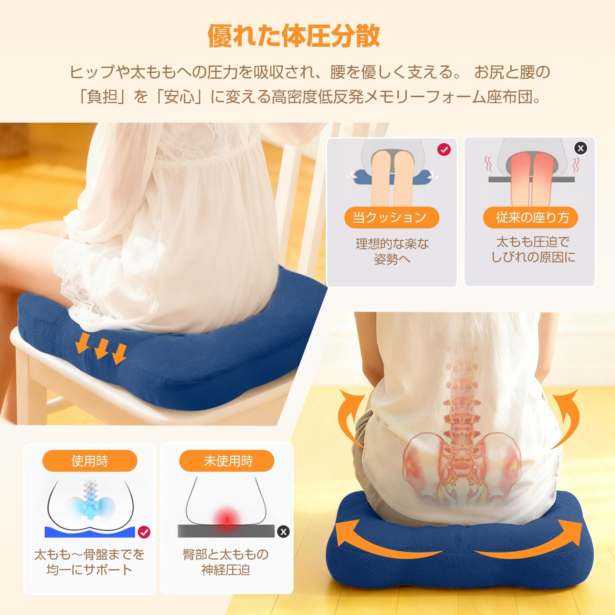 【様々なシーンで活躍】豊富なカラーで、リビング、書斎、和室、車内など、どんな椅子にもマッチ。お部屋に温かみのある雰囲気を演出します。ダイニングチェアやオフィスチェア、シートクッション、フロアクッションとしても使えます。座り仕事をしている人や、毎日長距離を運転する人に快適さをもたらすことができる。