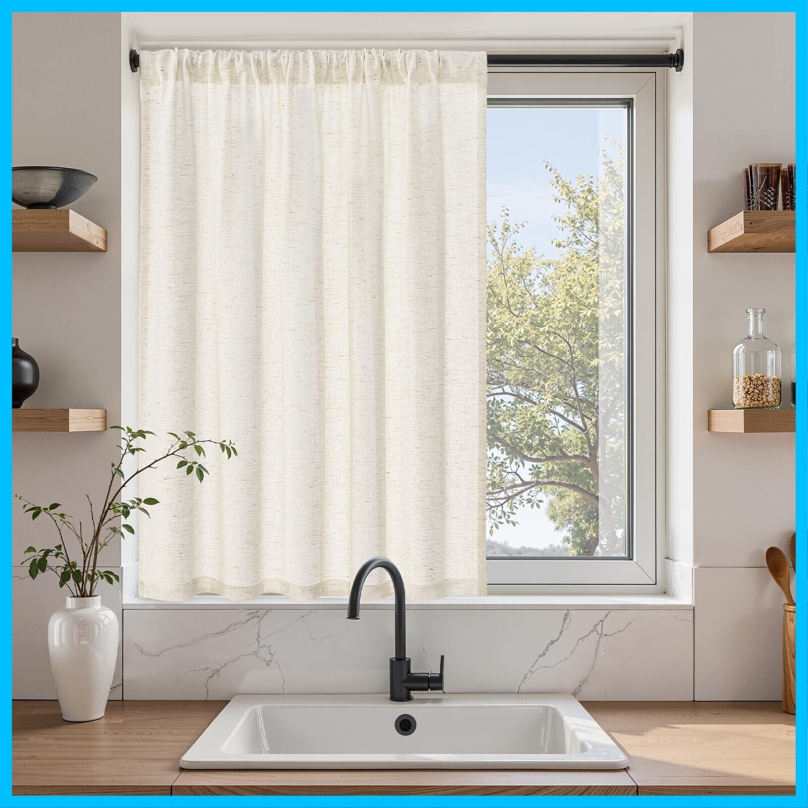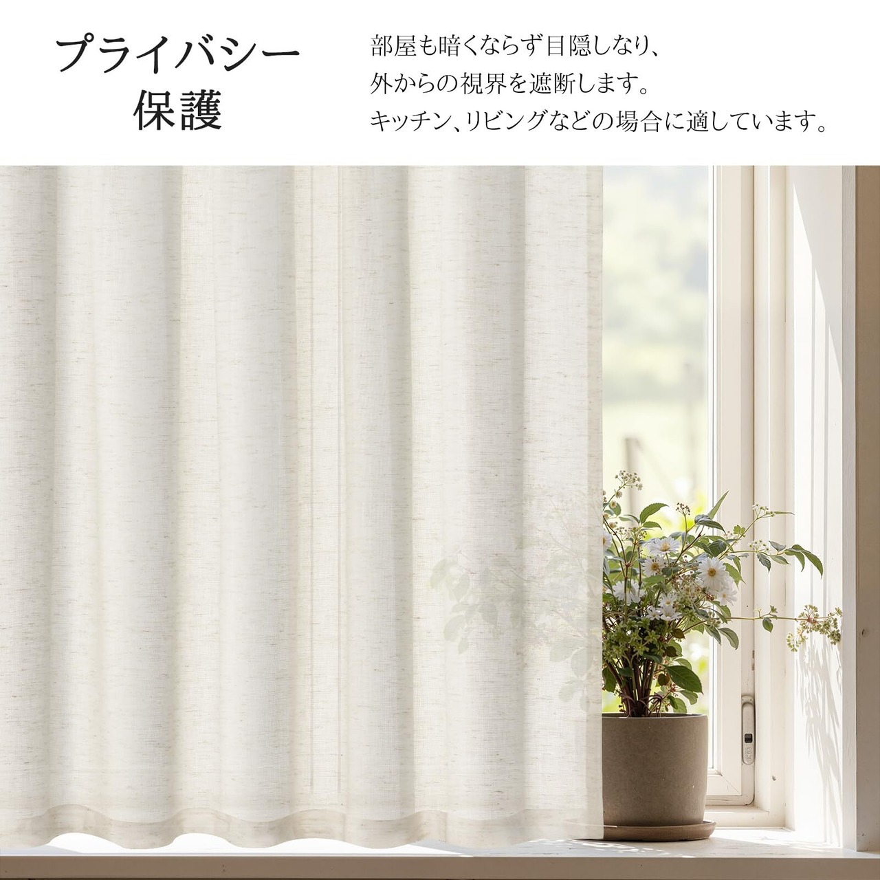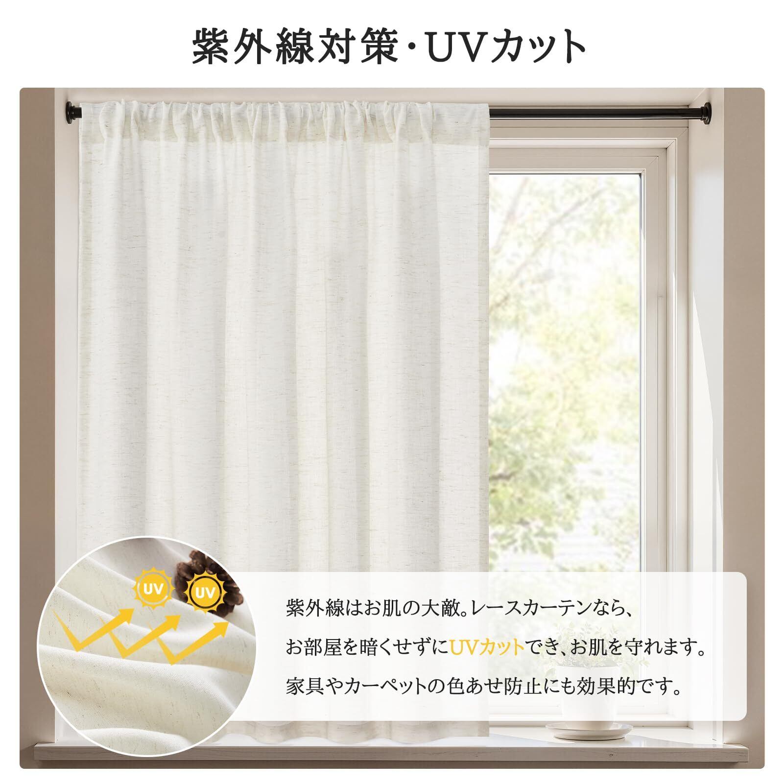 Topfinel カフェカーテン レース リネン風 小窓用 70cm丈 幅100 生成り色 1枚 レースカーテン 透けない 外から見えにくい 目隠し 半遮光 断熱 UVカット 通気 洗える キッチン リビング トイレ 玄関