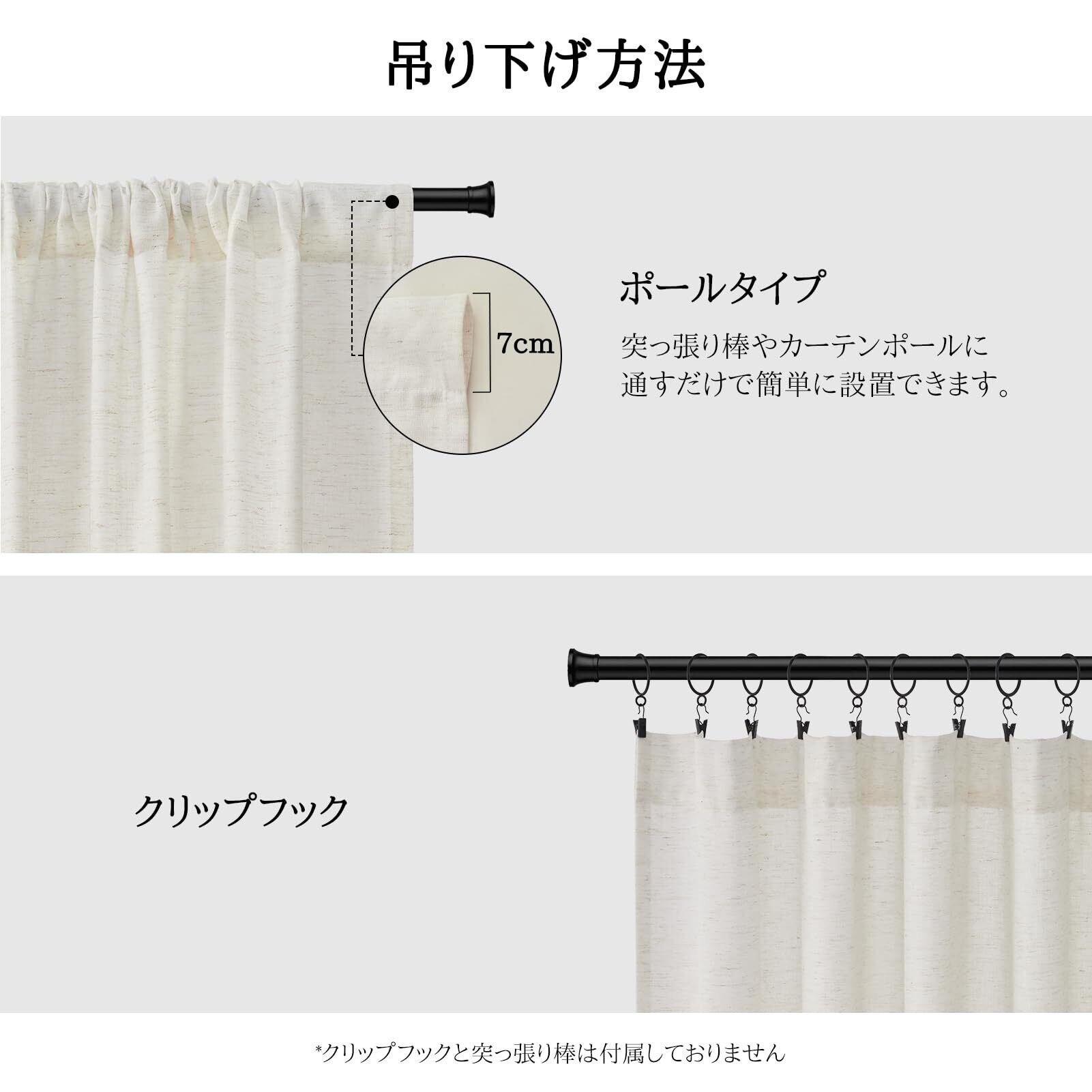【取り付け簡単】一般的な突っ張り棒を通すだけで簡単に取り付け可能です(突っ張り棒は付属しておりません)。水洗いできてお手入れも簡単です。