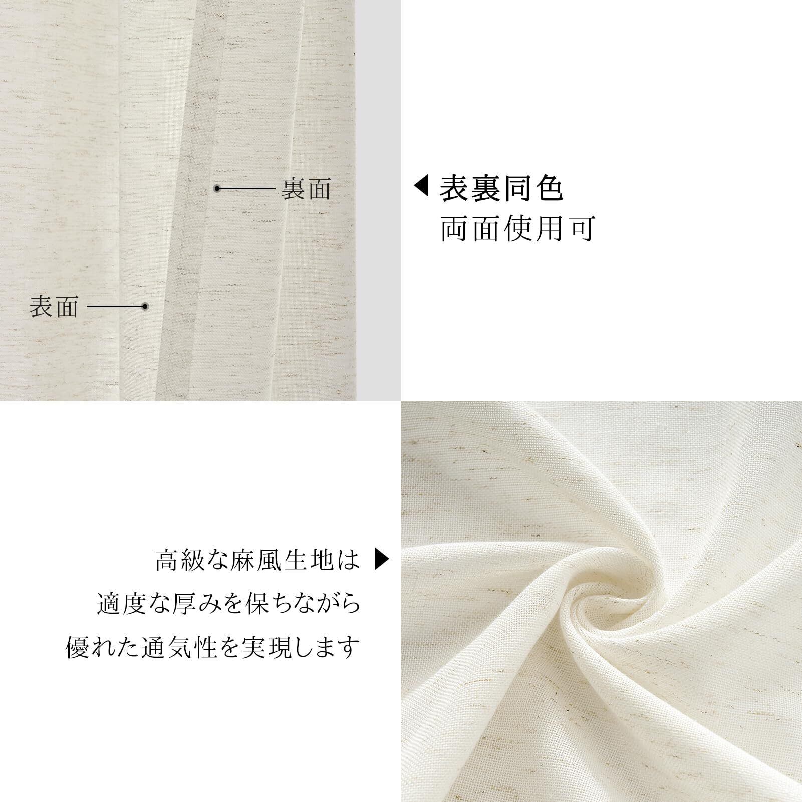 【麻風生地】高品質ポリエステル製で、麻のような質感と柔らかい手触りを兼ね備えています。適度な厚みを保ちながら優れた通気性を実現しています。
