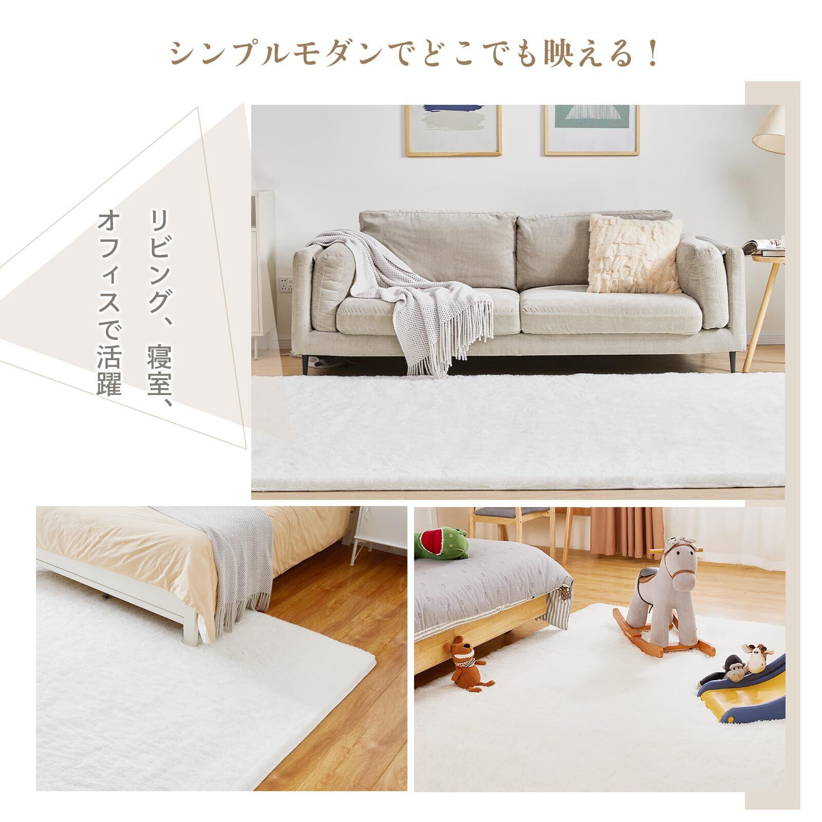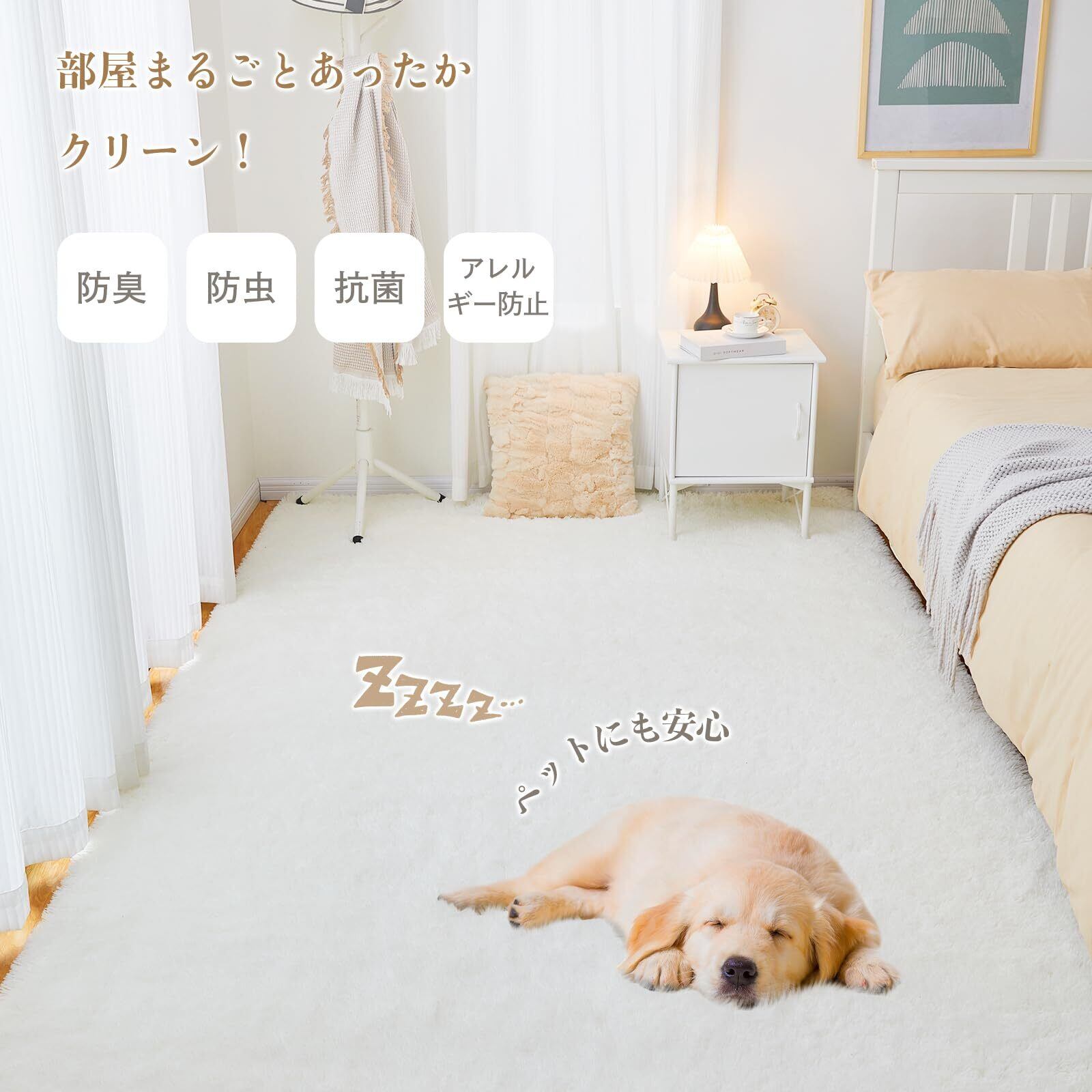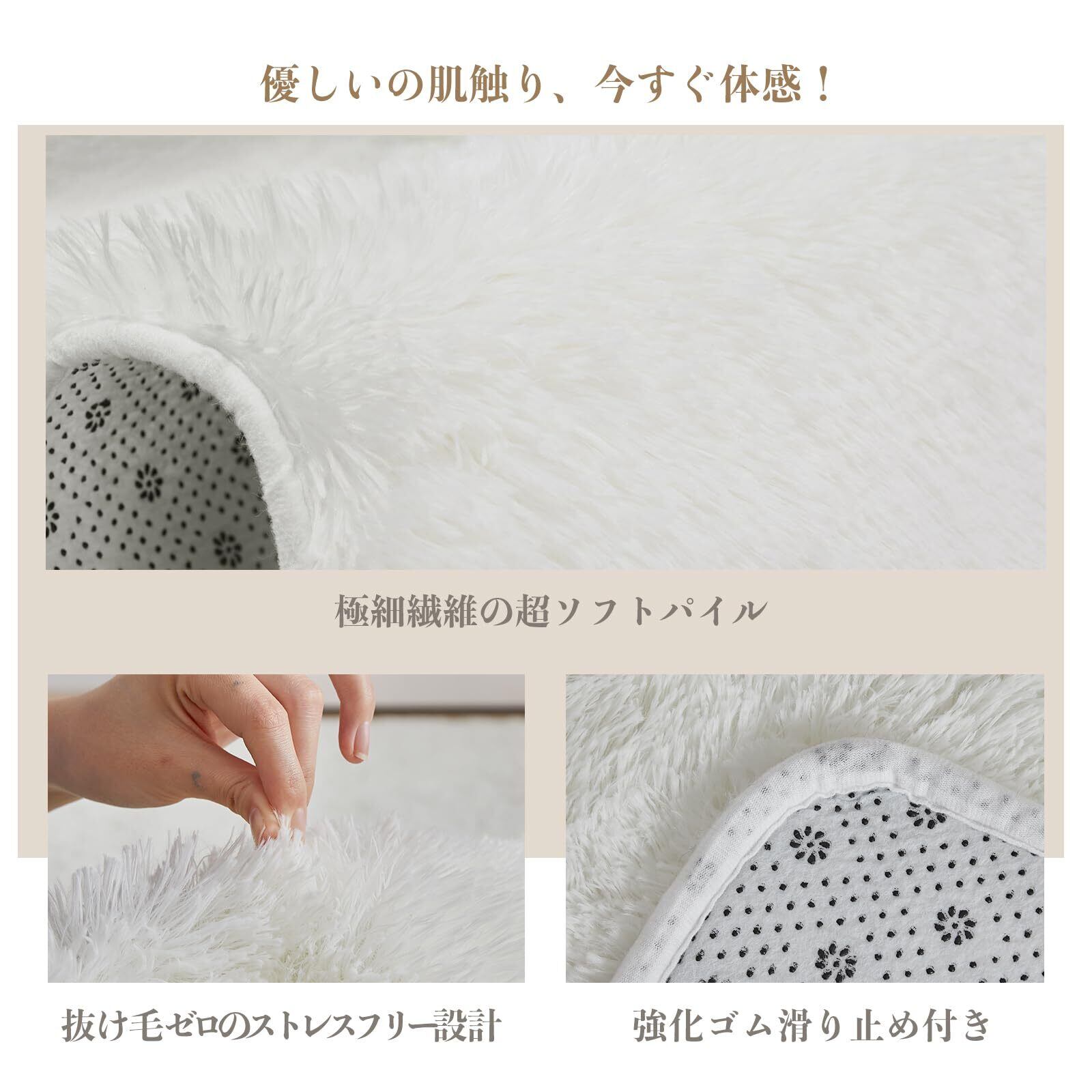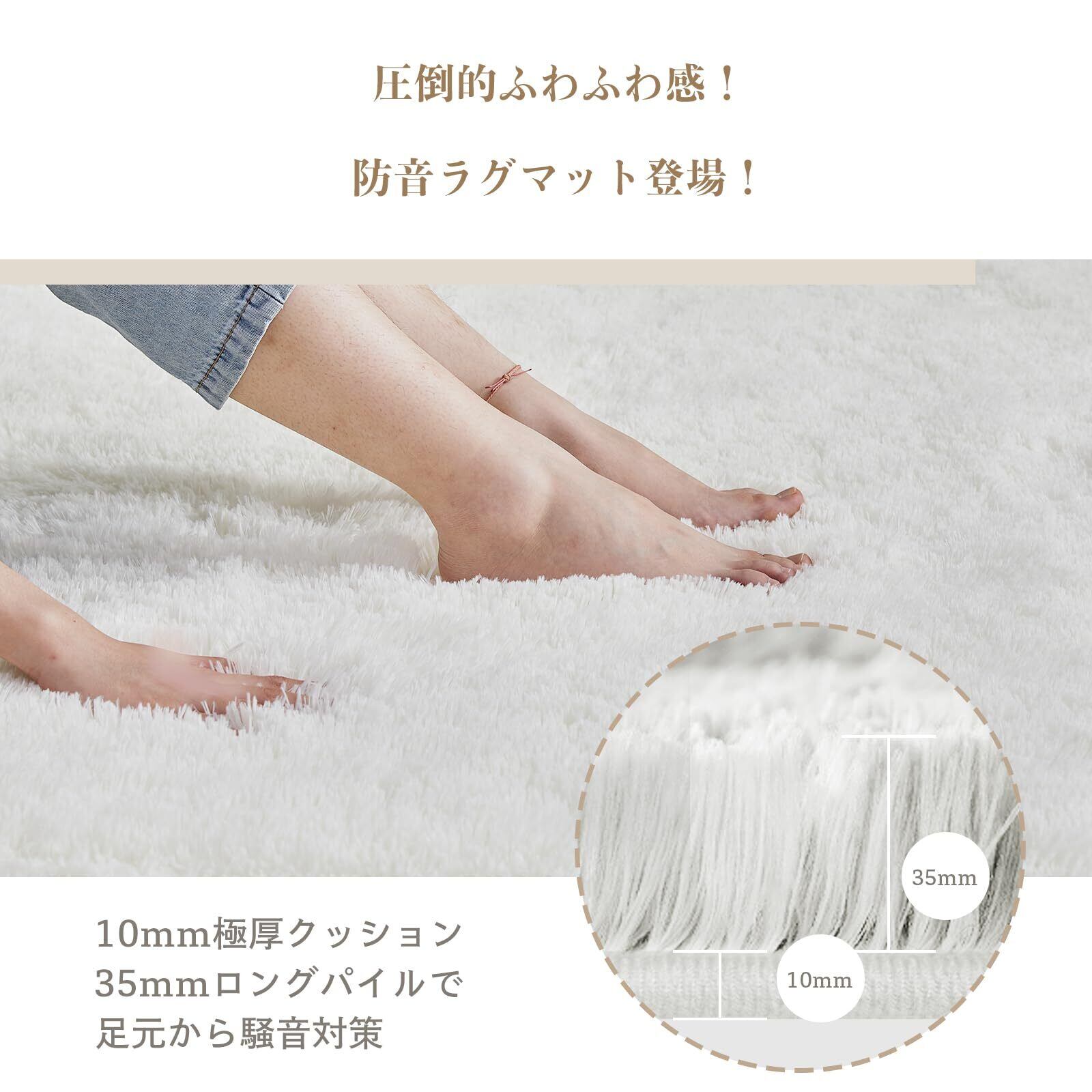 ✨【極上ふわふわ感|抜け毛ゼロの高級仕様】35mmの超長毛パイルは極細繊維(0.1mm以下)を高密度で編み上げ、高級ホテルのスリッパのような肌触りを再現。従来の短毛ラグに比べ、保温性が30%向上(室温20℃時測定)。毛玉や抜け毛が発生しにくい特殊加工で、掃除機でさっと吸引するだけでゴミやペットの毛もスッキリ! 洗濯機対応(ネット使用推奨)で衛生面も万全です。