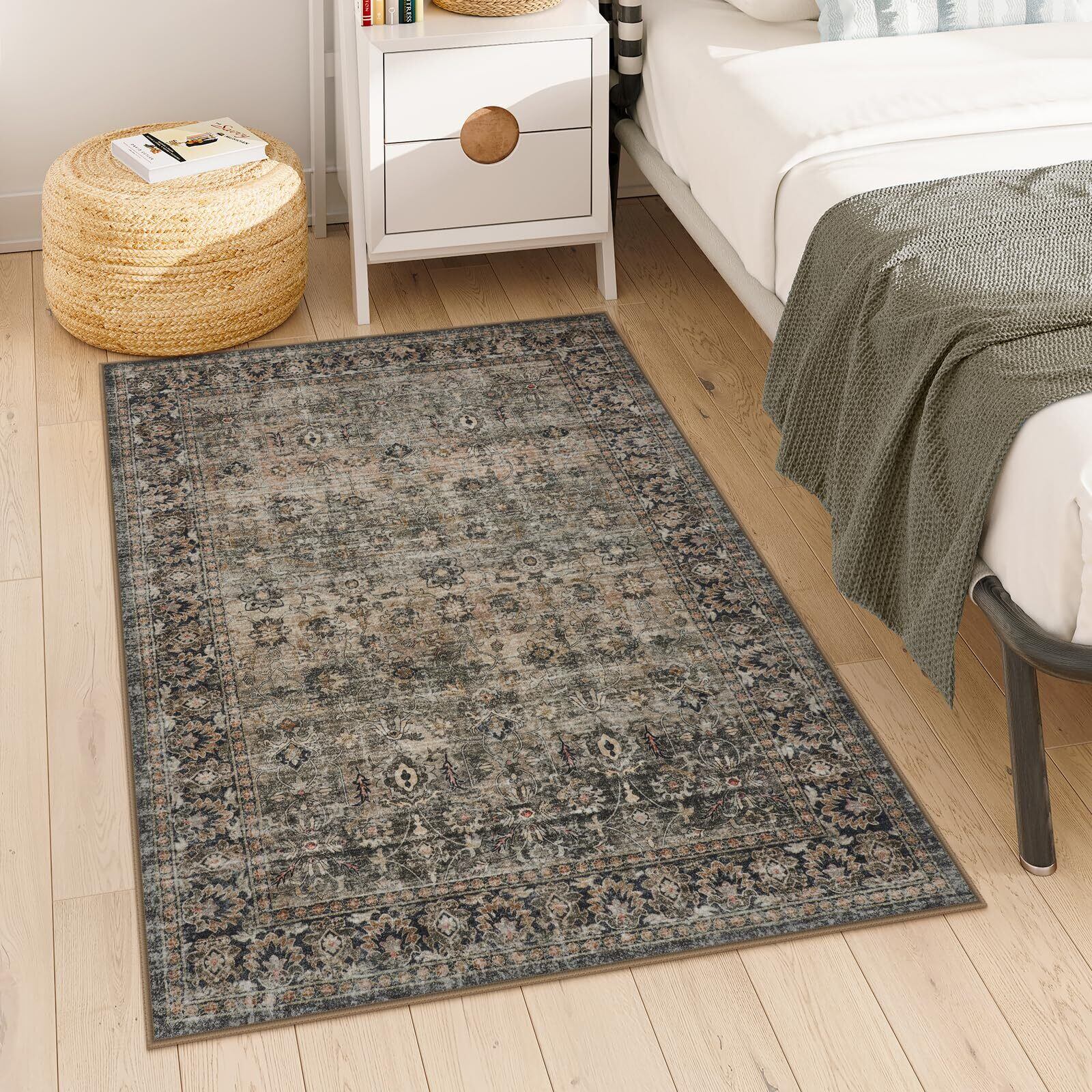HAOCOO ラグ 洗える 120×160cm オールシーズン適用 ペルシャ風 ラグマット 1.5畳 ふわふわ 滑り止め ホットカーペット対応 防ダニ 防臭 軽量 防音 リビング 寝室 デスクマット ダイニングマット チェアマット アンティーク 花柄