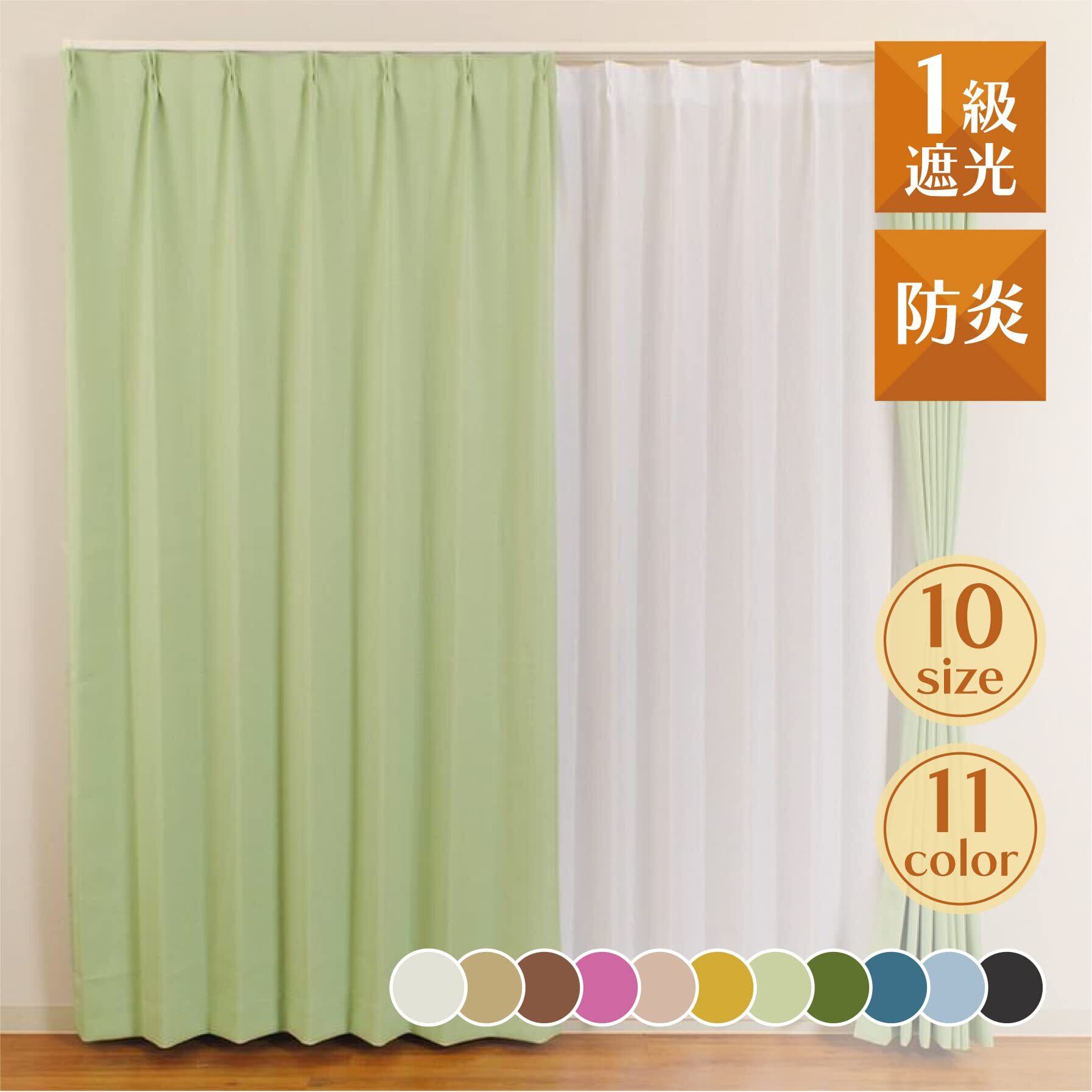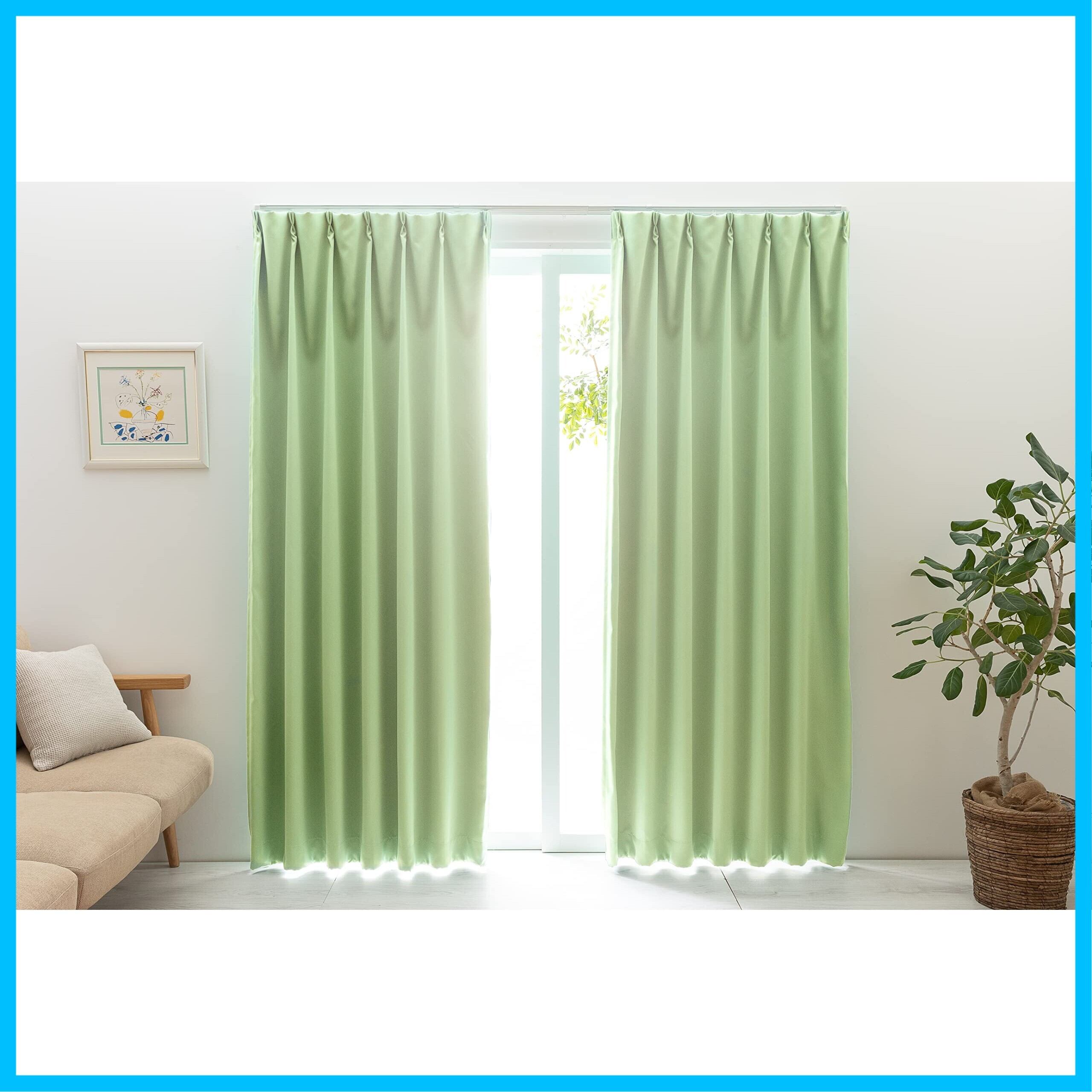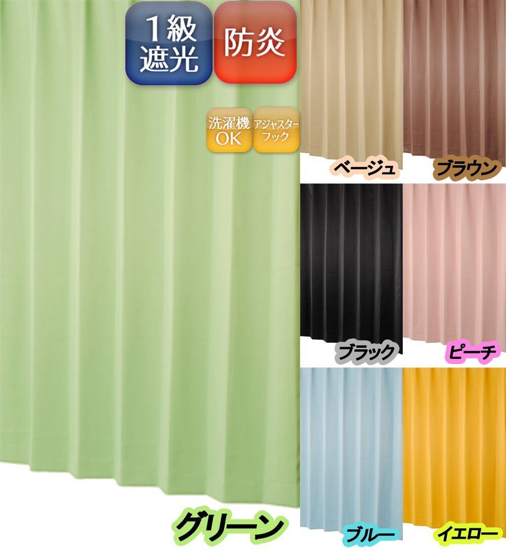 ユニベール 1級遮光 防炎 防炎ラベル付き 節電 省エネ 断熱 保温 日本製 無地 寝室 リビング カーテン 幅100cm×丈178cm 2枚 ベルーイ グリーン