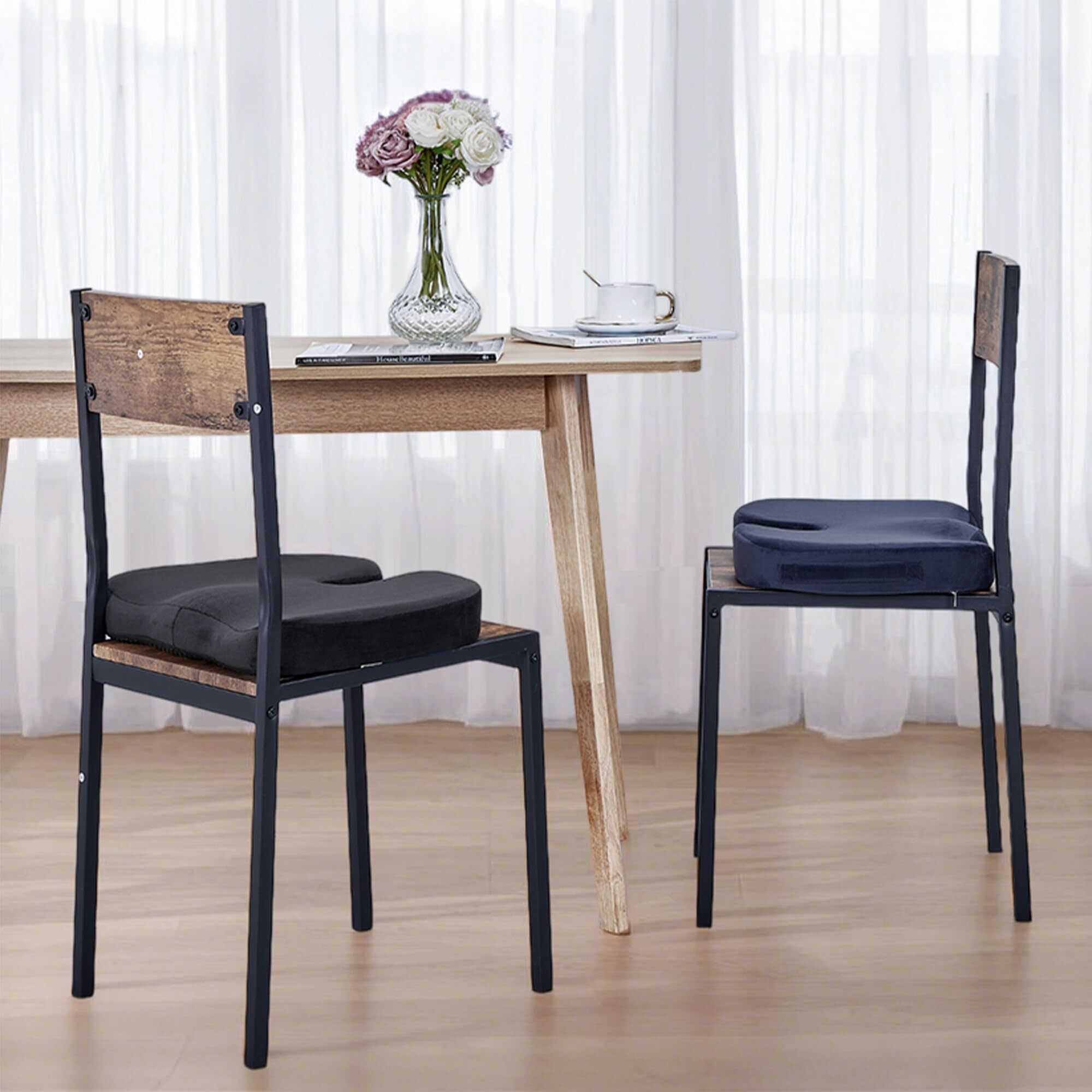 VECELO 座面クッション 座布団 チェアパッド 低反発 椅子 クッション チェア u字 腰痛 産後 痔 オフィス 正座 椅子 車 円座 メッシュ表地 ブラック ギフト