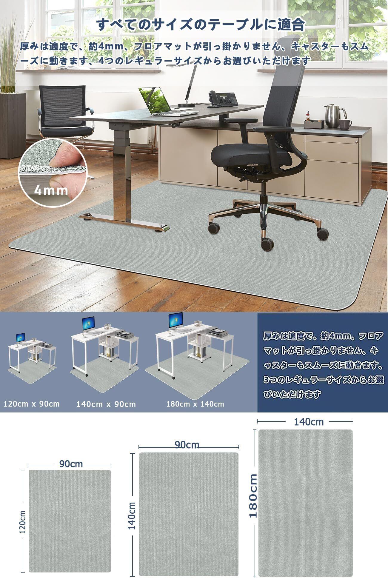 チェアマット 140×160cm 椅子 マット WEIDUOYI 床保護マット pcチェア マット デスクマット 椅子 厚さ4 mm 椅子の下に敷くマットキズ防止 凹み防止 床保護シートズレない 滑り止め 丸洗い可能セルフ粘着 (ライトグレー)