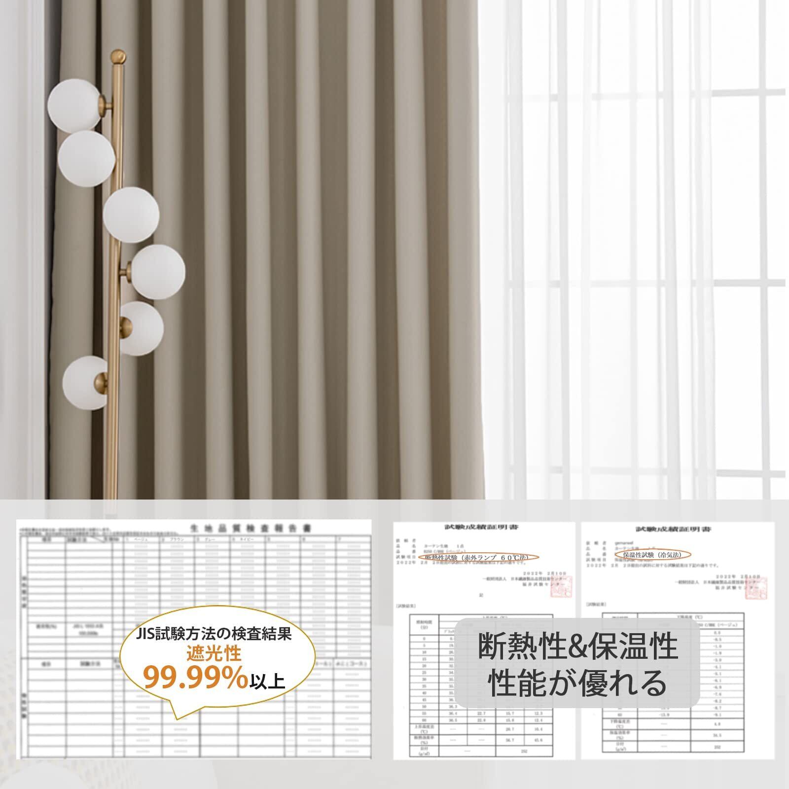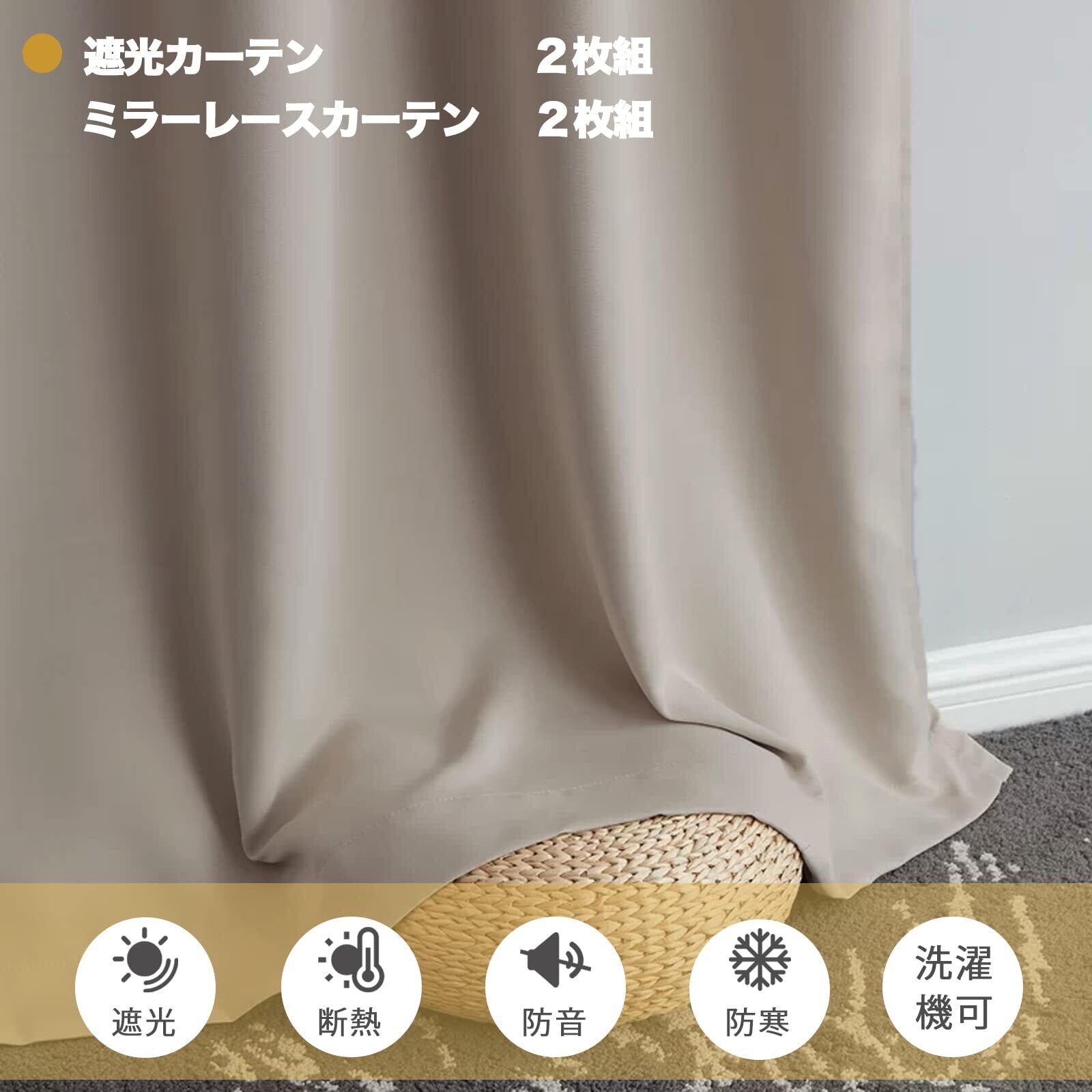 Gemarwel 遮光カーテン 4枚セット 1級遮光 厚手 遮熱 断熱 防音 防寒 保温 節電対策 洗濯機対応 既成 子供部屋 居間 寝室対応(カーテン2枚 レース2枚)(ベージュ, 100cm幅178cm丈)