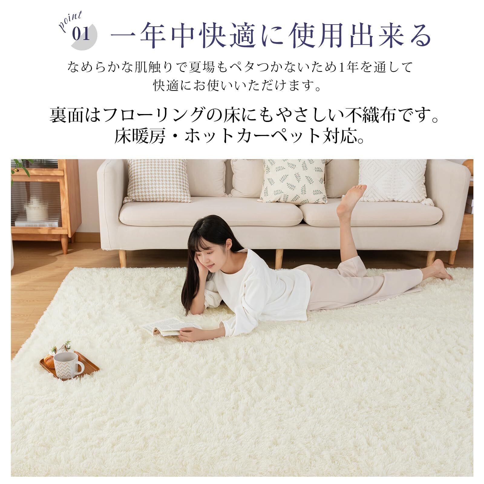 【オールシーズンカーペット】このラグの毛足は、通気性が良く、速乾性にも優れたマイクロファイバーを採用し、踏み心地は柔らかい、夏はサラッと快適に、冷房機器との併用で快適に過ごせます。耐熱加工を施しているので冬はホットカーペットや床暖房の上に敷いてもお使いでき、フワフワと暖かく、居心地がよくなります。