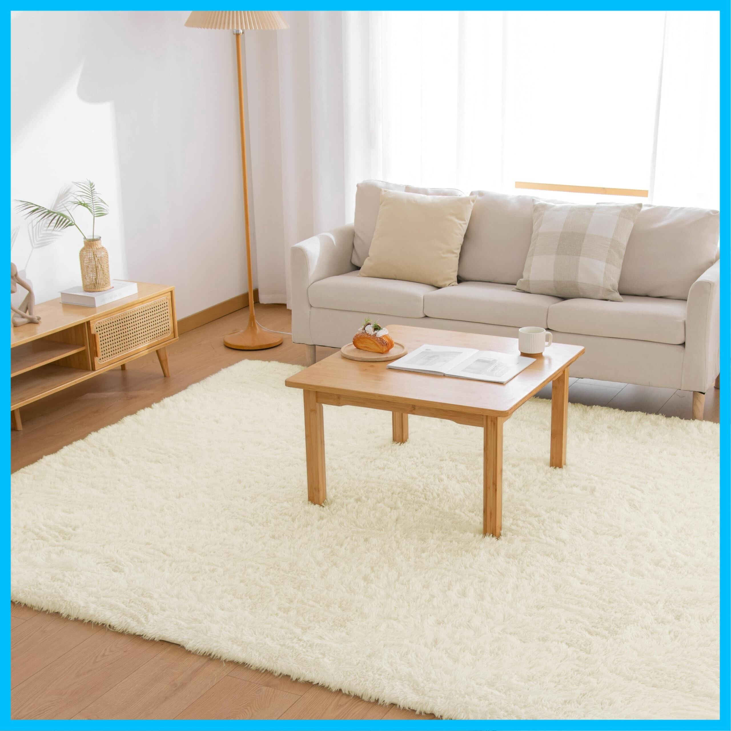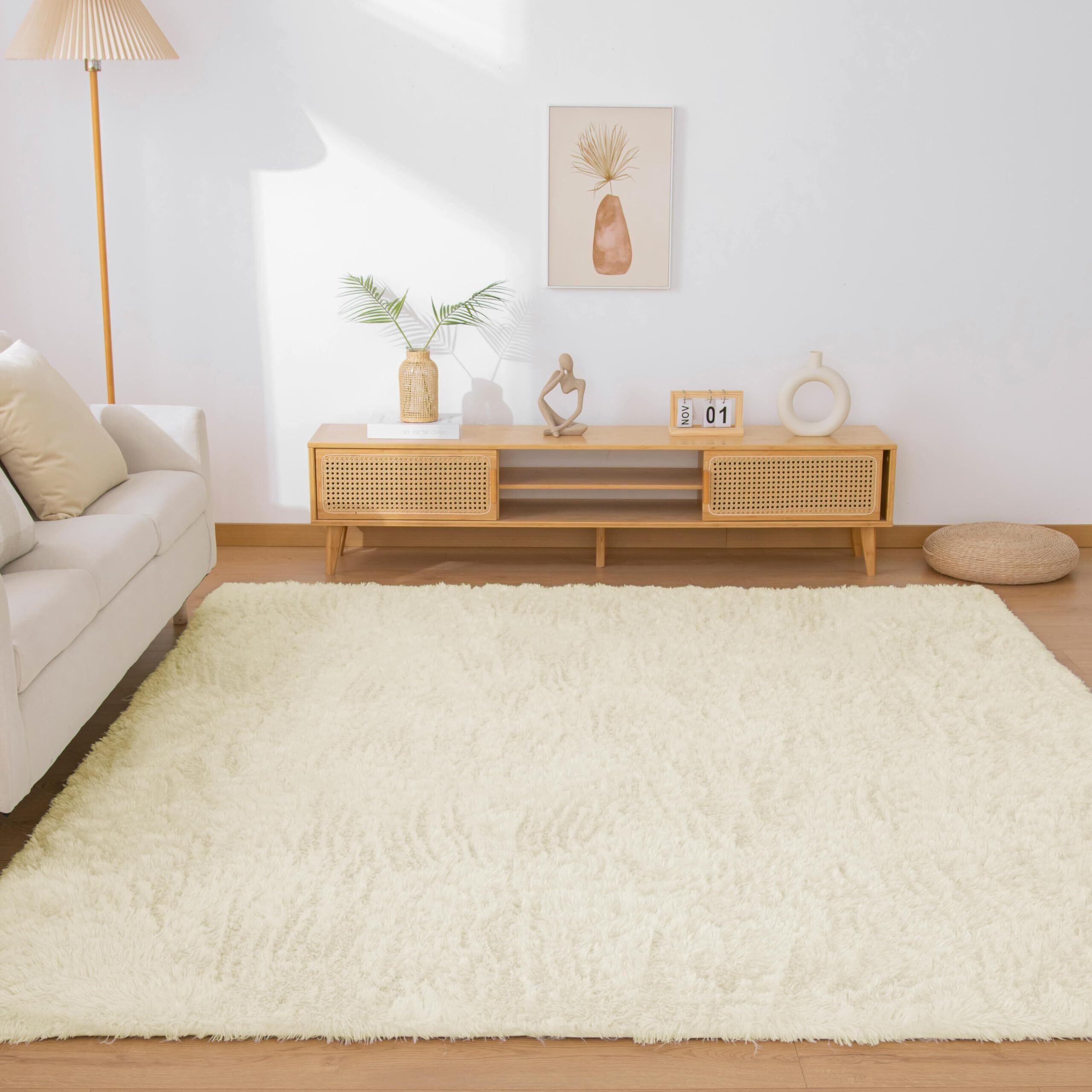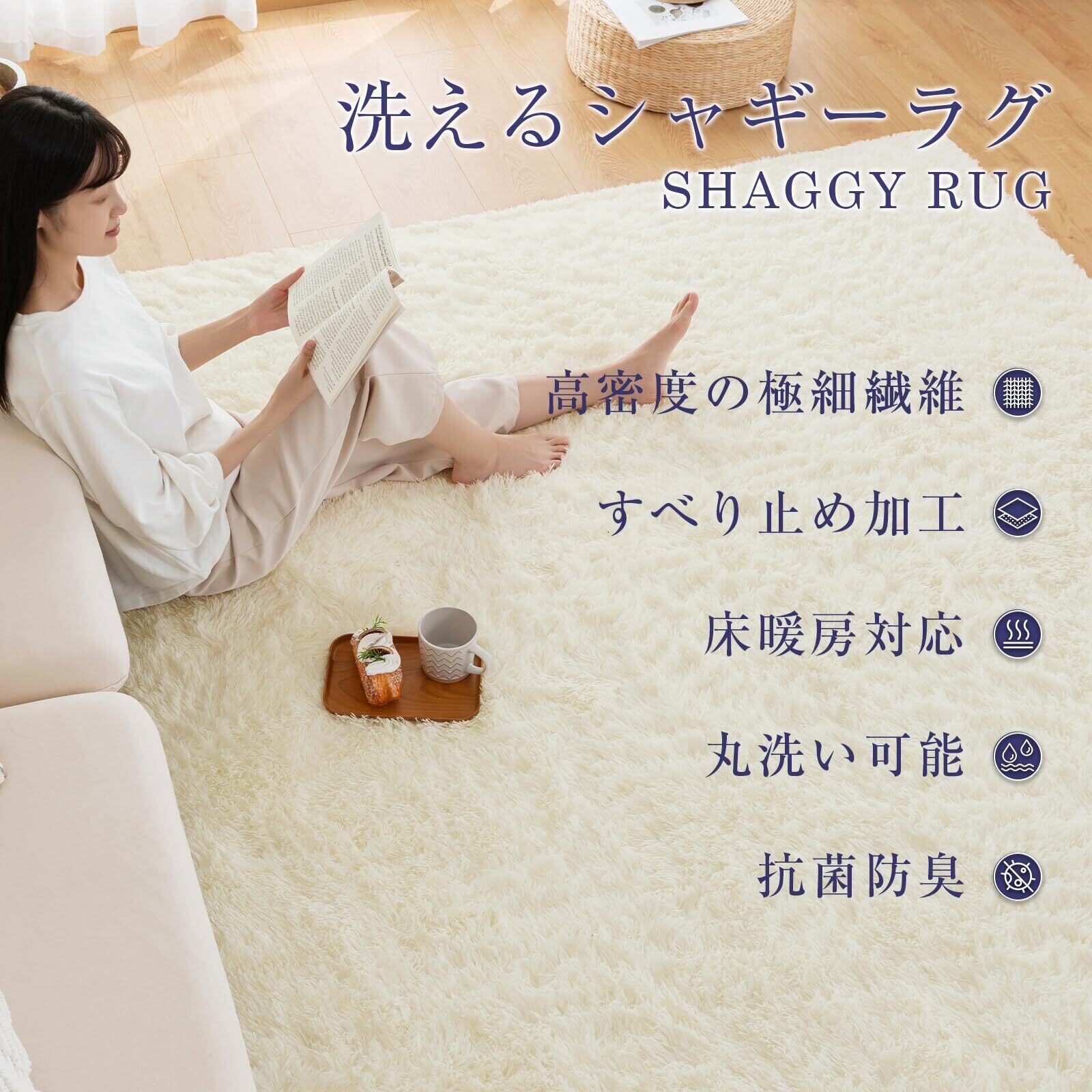 Matdeco ラグ カーペット シャギーラグ 長方形 約1畳(120×160cm) 洗えるラグ ラグマット 滑り止め 防音絨毯 ふわっと手触り オールシーズン リビング用 じゅうたん 柔らかい (アイボリー, 120×160cm) I024-120160IV-A