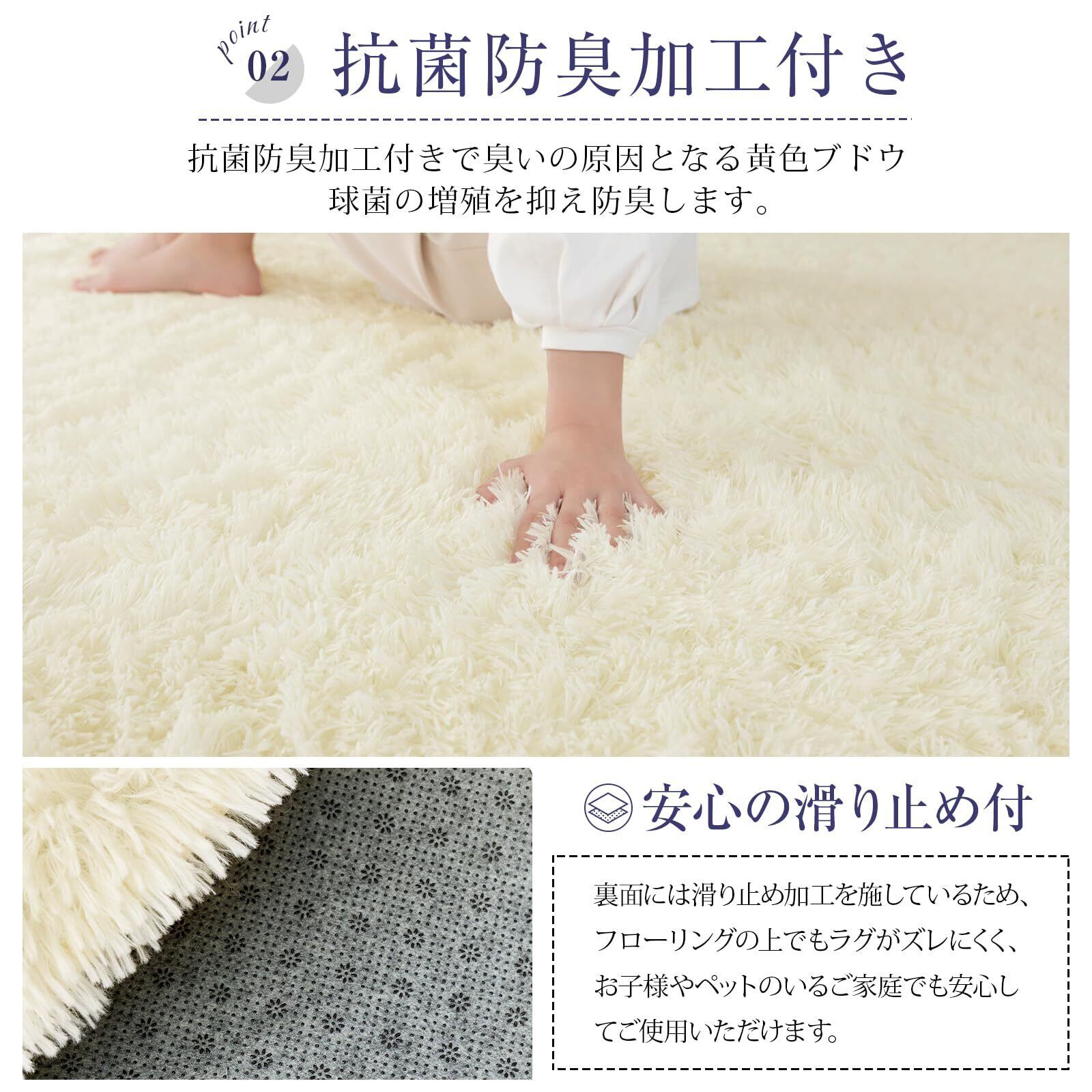 【抗菌防臭・滑り止めラグ】絨毯は抗菌防臭加工を施して、安全な品質で直接肌に触るのも大丈夫です。 ラグマットの裏面は滑り止め付き、ズレにくい、掃除機をかける時も滑らない。お子様のいるご家庭でも安心してお使いいただけます。