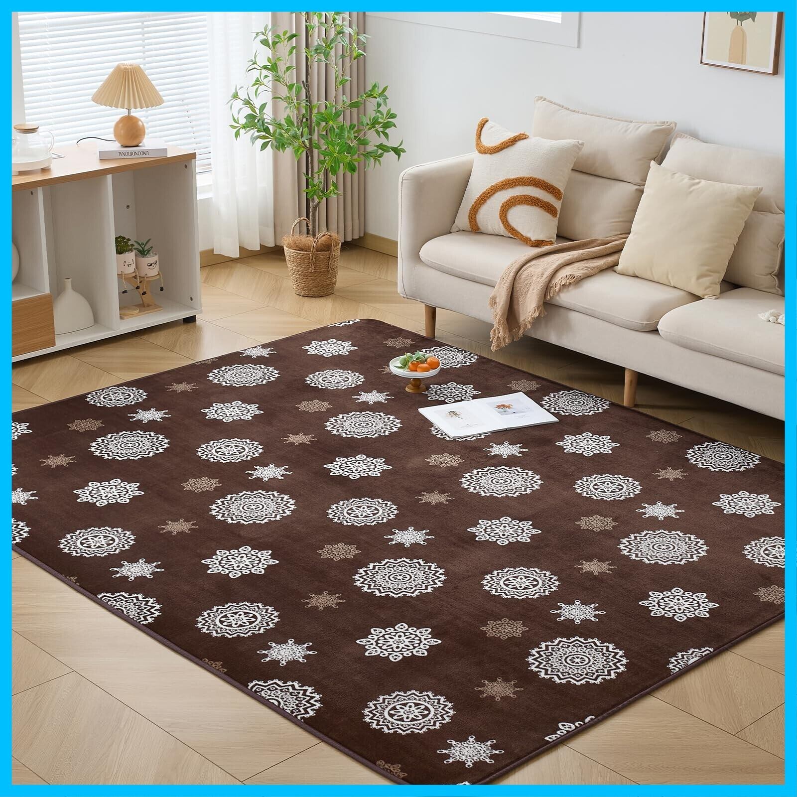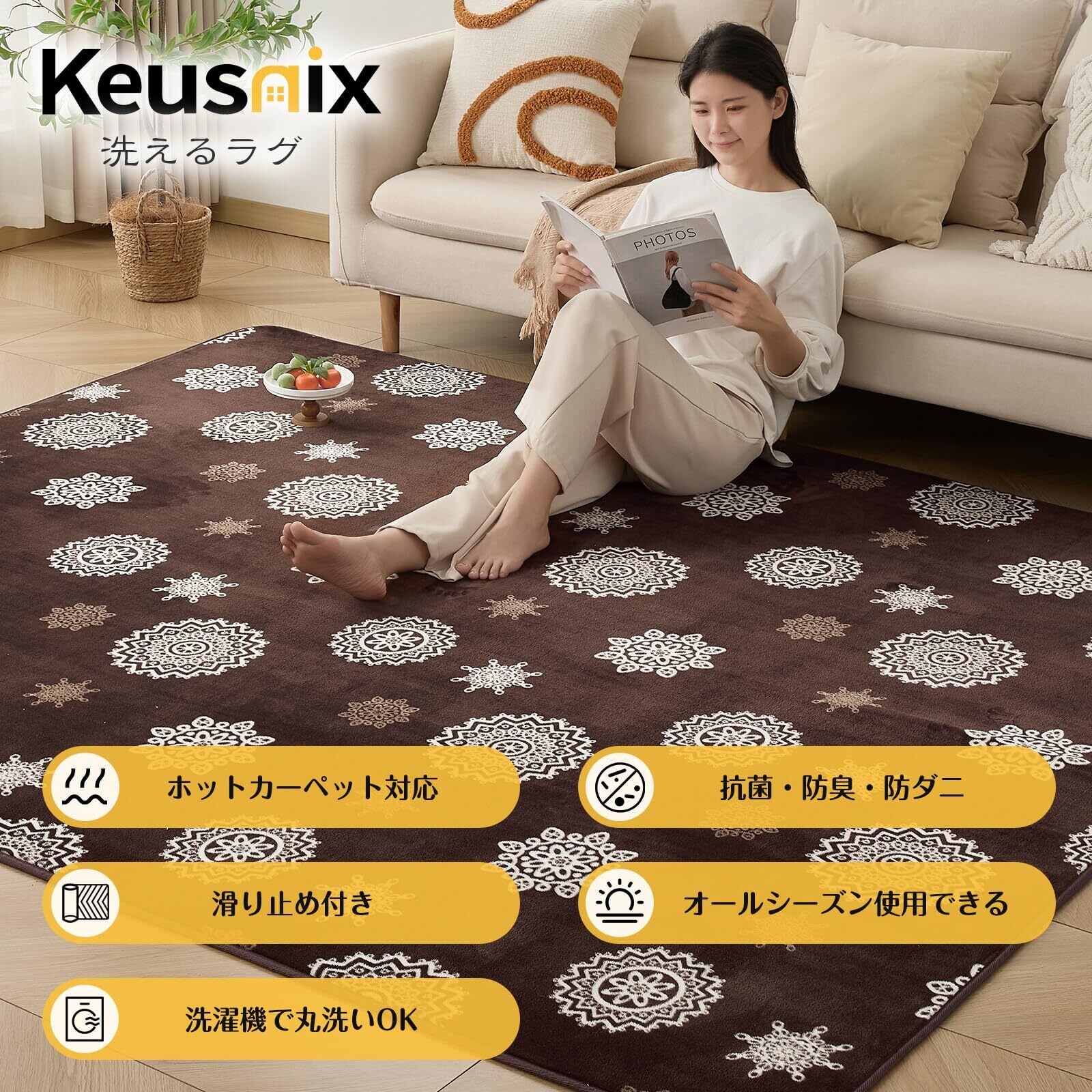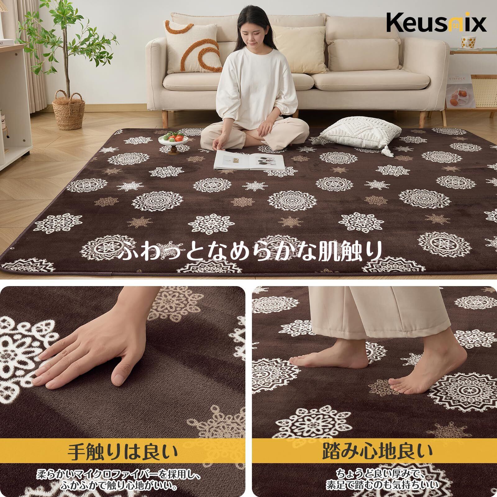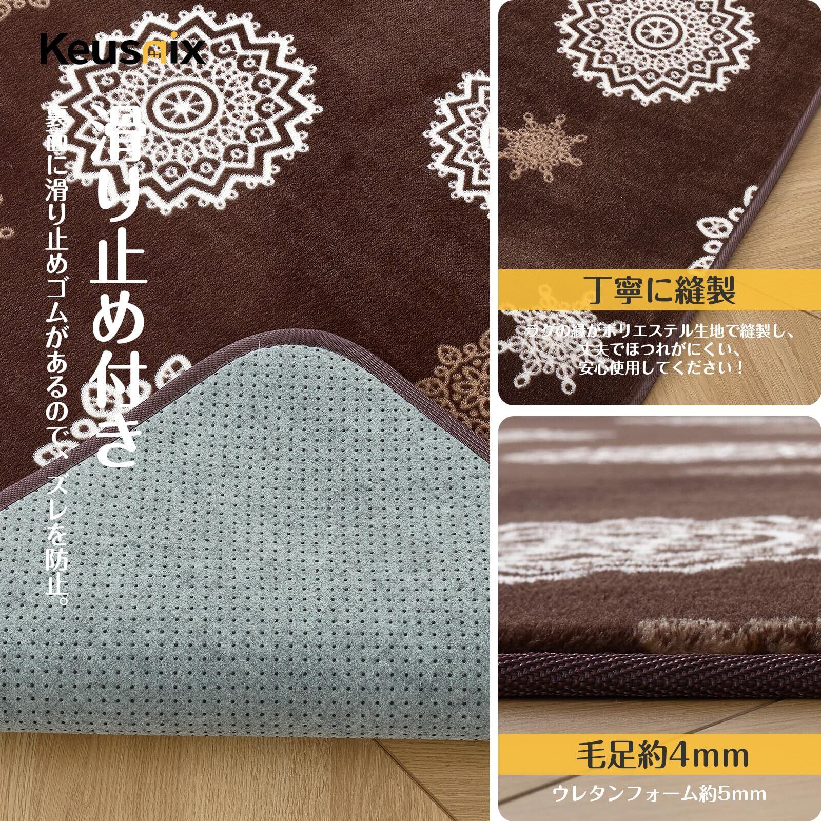 Keusnix カーペット ラグ ラグマット滑り止め付 洗える 185×185cm 約2畳 絨毯 防ダニ 抗菌 防臭 オールシーズン快適に使用 床暖房 ホットカーペット対応 ふわふわ肌触り フランネルラグ レース・ブラウン