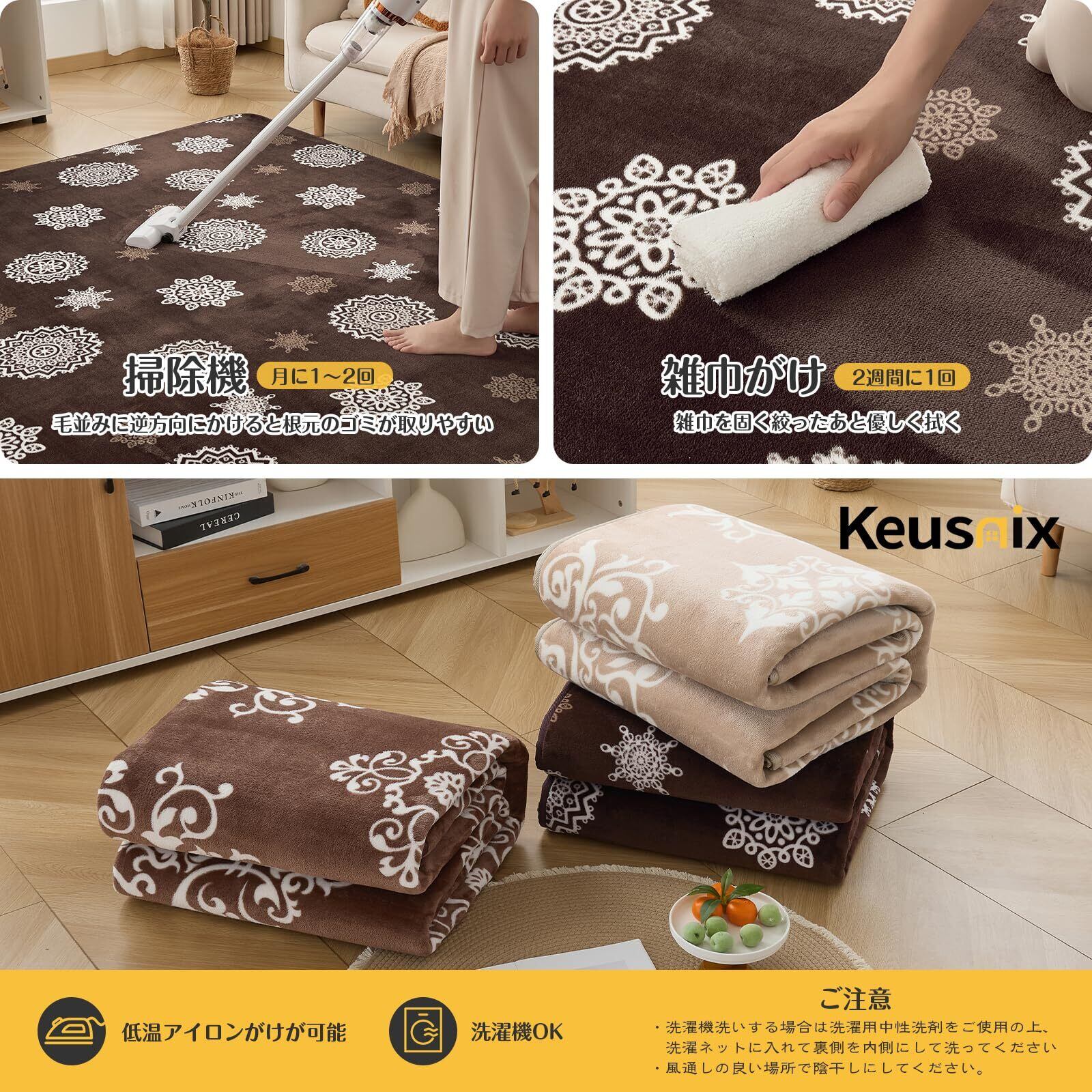 【優れた肌触り-フランネルラグ】極細繊維で作られたフランネル素材のラグマットはソフトでしなやか、滑らかな感触を実現します。肌ざわり良いし、短毛タイプのラグマットなので、ネコや犬の毛が付いても、掃除機で簡単に取れます。