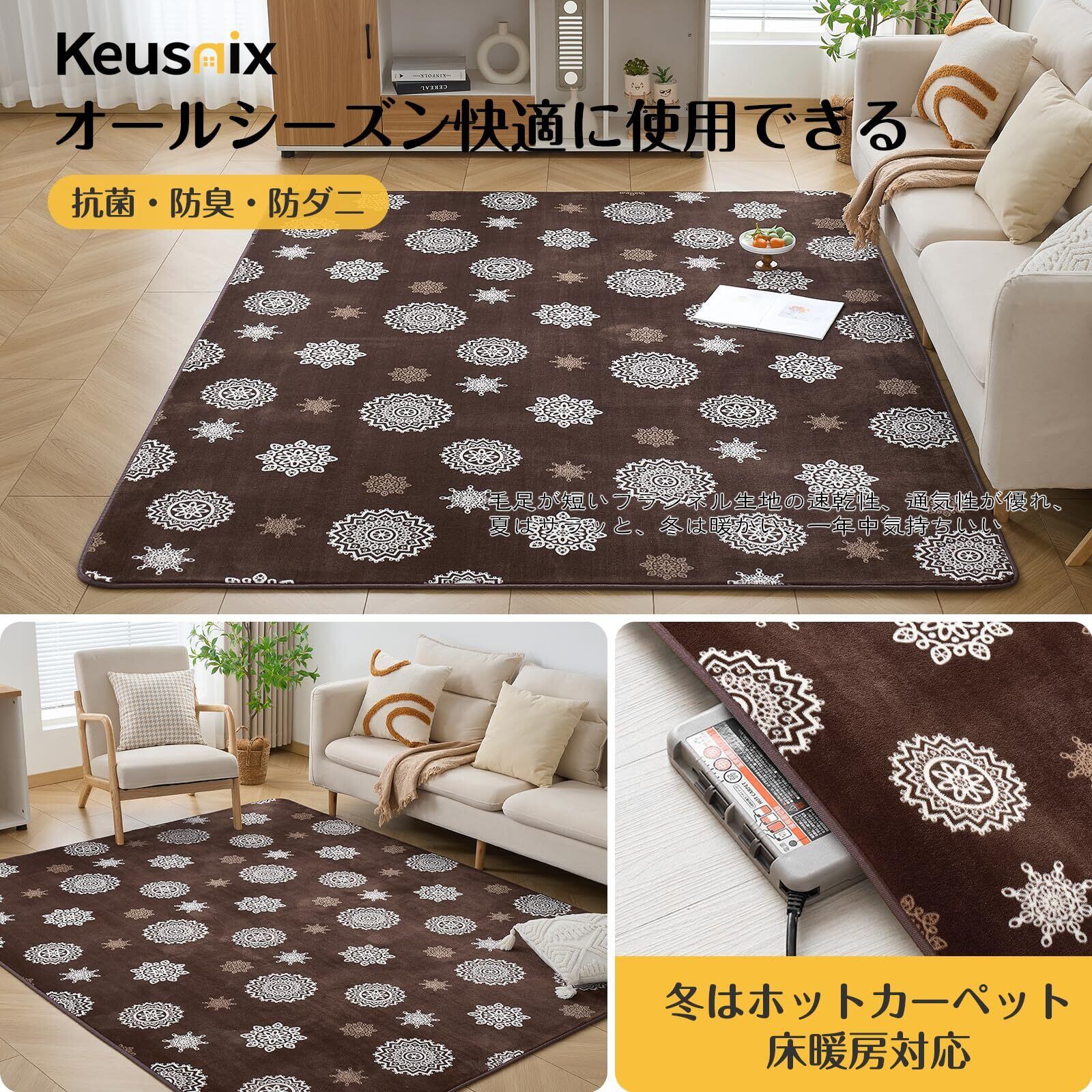 【オールシーズンカーペット】フランネル生地は速乾性、吸水性、通気性が優れ、夏はさらりと、冬は暖かく、季節が考えなくて年中使えるカーペットです。色落ちせず、抜け毛もない、夏は冷房対策、冬はホットカーペット・床暖房対応。リビングマットとしても快適に使用できます。