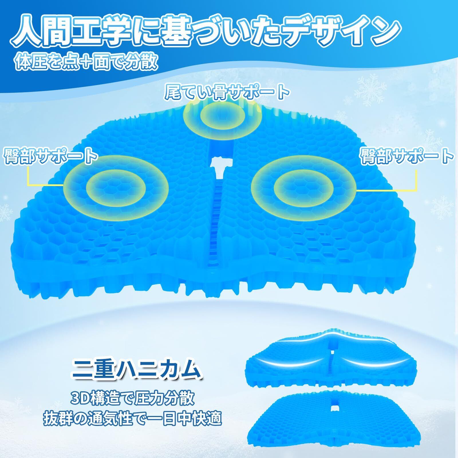 【卵割れないほどのクッション性 】高品質TPEゲル素材と日本のメッシュ弾性ソフトキャンディーゲル技術を採用して、非常に丈夫で柔軟性と耐久性に優れています、いくらストレッチ、絞ってもすぐ元の形に戻します。ジェルクッションは卵を置いて座っても割れないほどのクッション性があります。