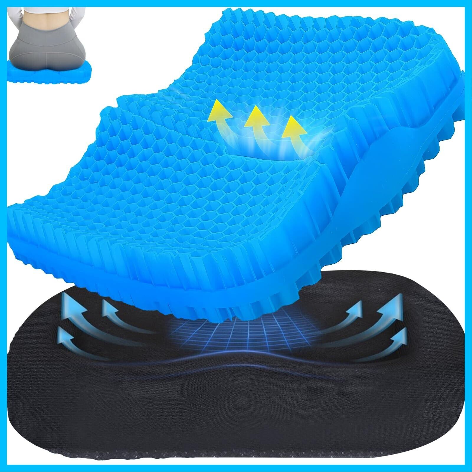 ゲルクッション ジェルクッション ハニカム構造 無重力クッション 卵割れないクッション 座布団 高通気性 カバー付き 在宅勤務 オフィス 車 椅子 自宅用(ブルー3, (立体型))