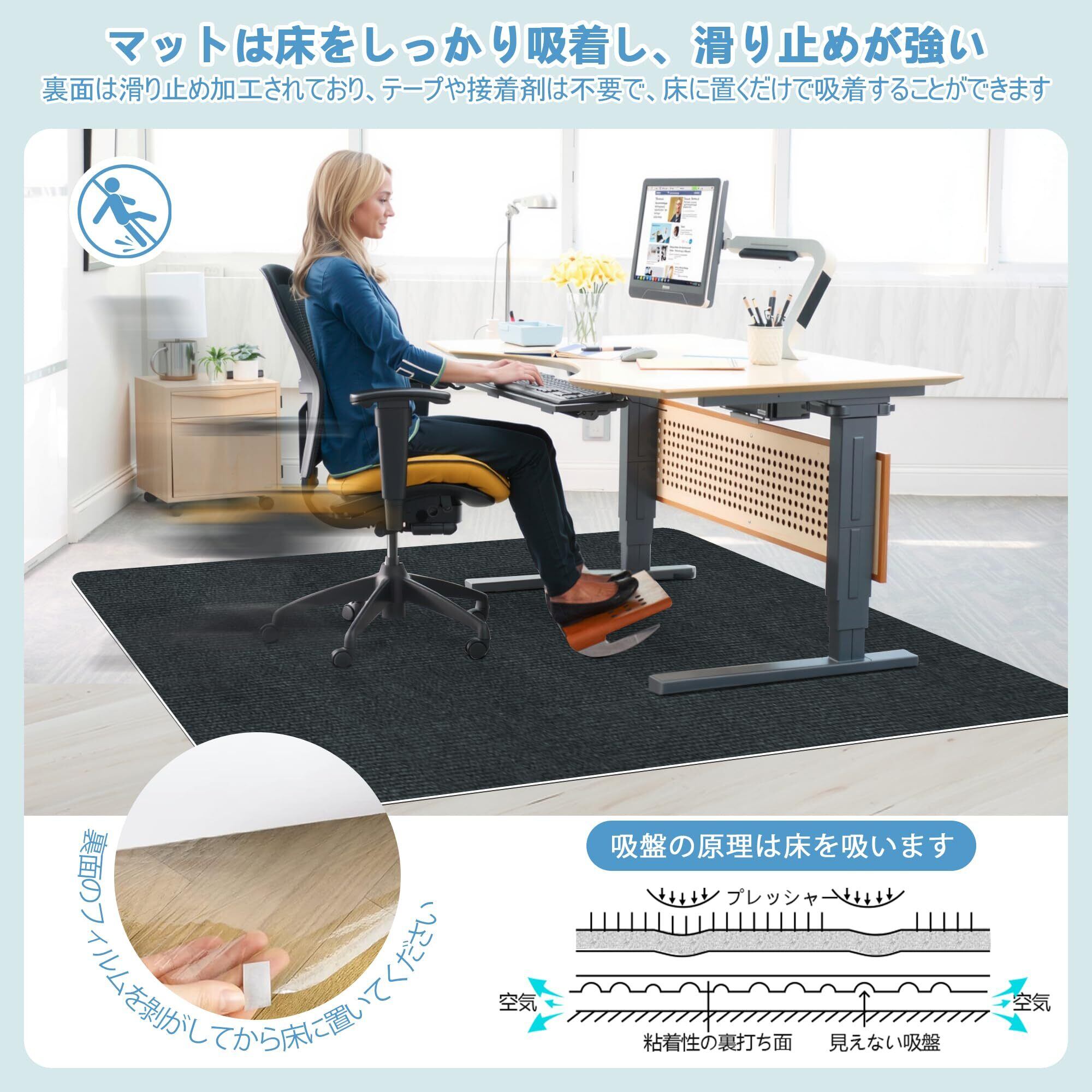 【強くグリップして手入れしやすい】フロアマットの底部には吸着構造設計が採用されており、地面との摩擦力を効果的に増加させ、フロアマットは滑りにくい。子供が学習机で宿題をしても、大人が食卓の前で食事をしても、ペットが家で勝手に走り回っても、安定した支えを提供し、滑りを減らすことを予防することができます。洗浄後は必ず徹底的に乾かし、湿った環境によるマットの損傷を避ける。