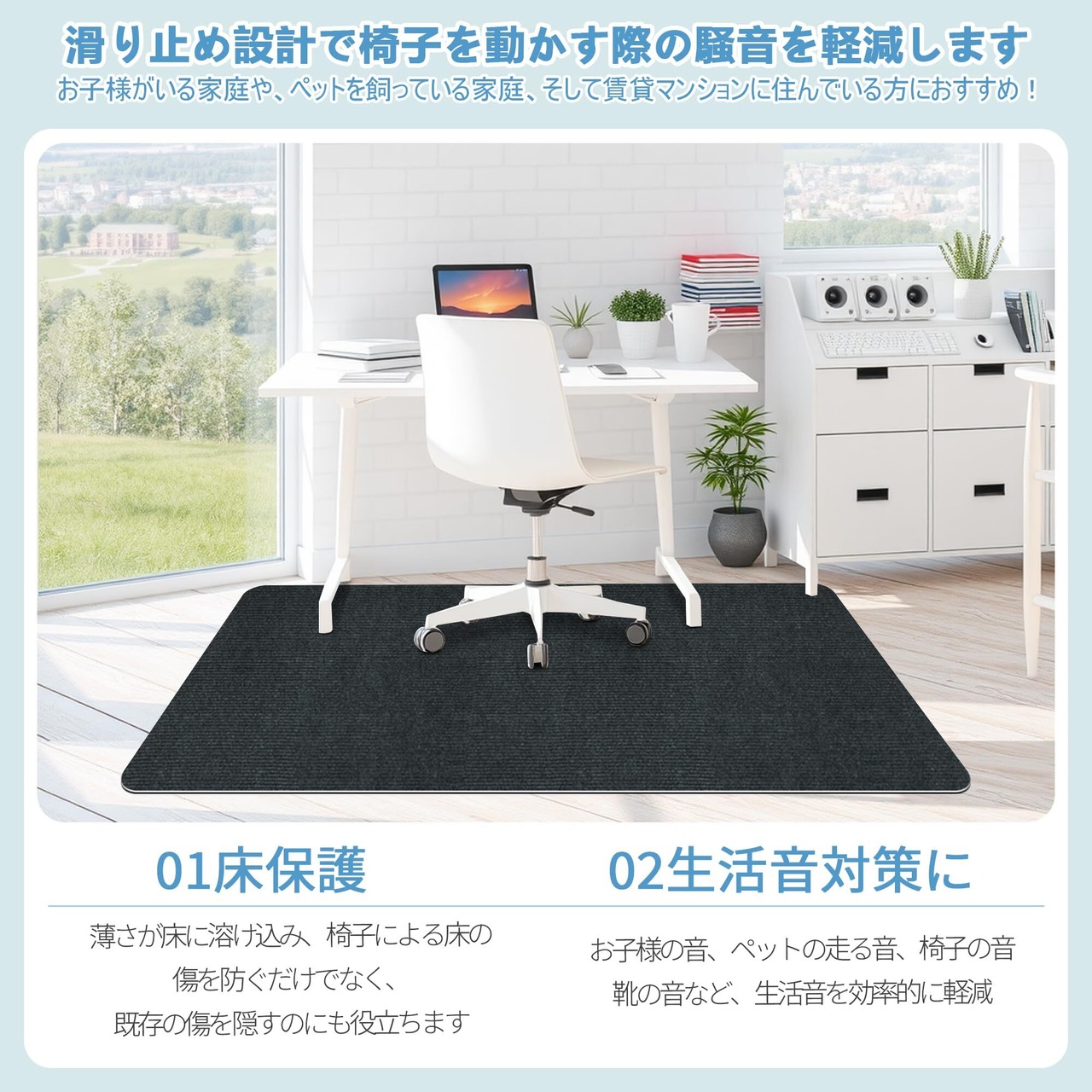 【滑り止めノイズ低減、柔らかく快適】テーブルや椅子の床マットの敷設は滑り止めだけでなく、地面の柔らかさをある程度増やし、足の快適さを高めることができる。同時に、その防音効果は机や椅子の移動時の騒音を減らし、静かな家庭環境を作ることもできる。