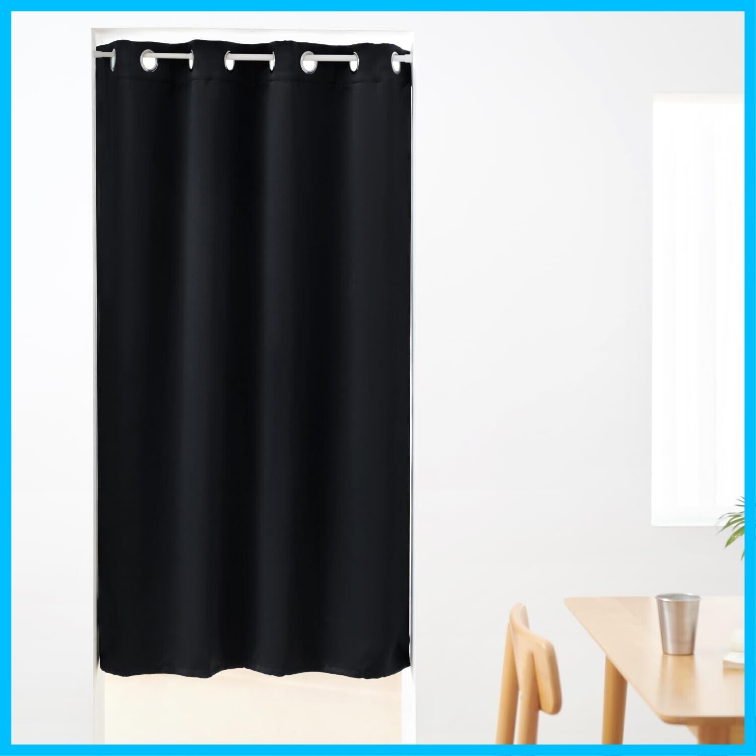クモリ(Kumori) 間仕切りカーテン 遮光度99.99% 断熱防寒 のれん 暖簾 ハトメ仕様 目隠し 突っ張り棒 ドアカーテン 無地 厚手 保温 防音 遮熱 省エネ 洗濯可能 北欧 階段 玄関 キッチン リビング 出入り口 ロング (幅150cm×丈180cm・1枚組 ブラック)