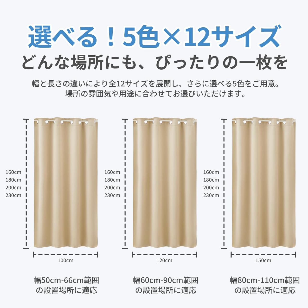 【商品仕様】※サイズ:幅150cmx丈180cm「幅80cm-110cm範囲の設置場所に適応しております」※素材:ポリエステル+ステンレス(ハトメ部分)、カーテン生地はシルクのような柔らかさとマットな質感を実現。優れたドレープ性を持ち、耐久性に優れ、長期間使用可能。※機能:遮光1級/遮熱保温/間仕切り/ウォッシャブル。(ご注意:つっぱり棒は付属しておりません)