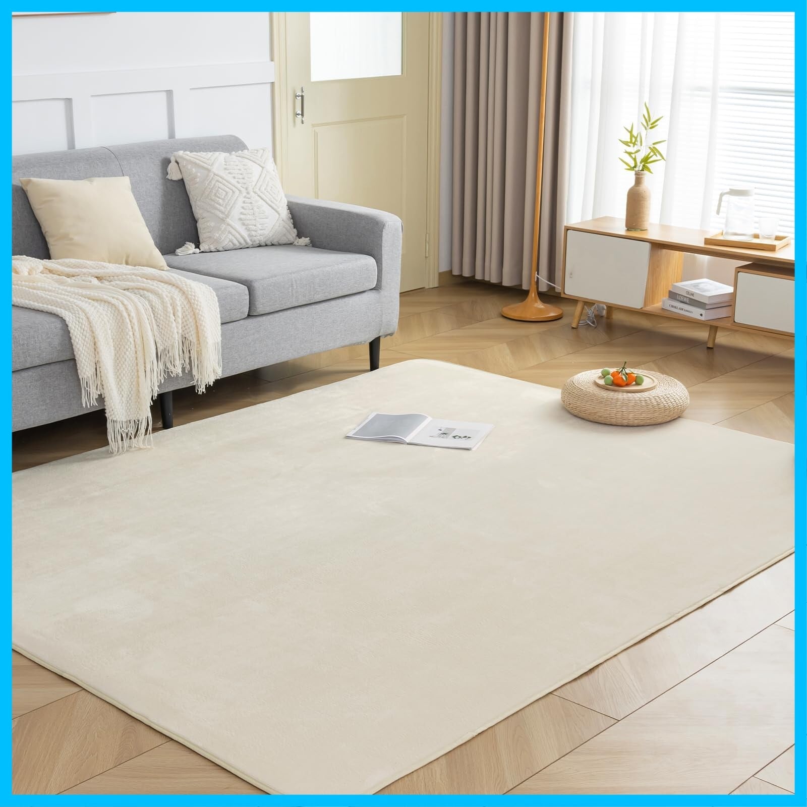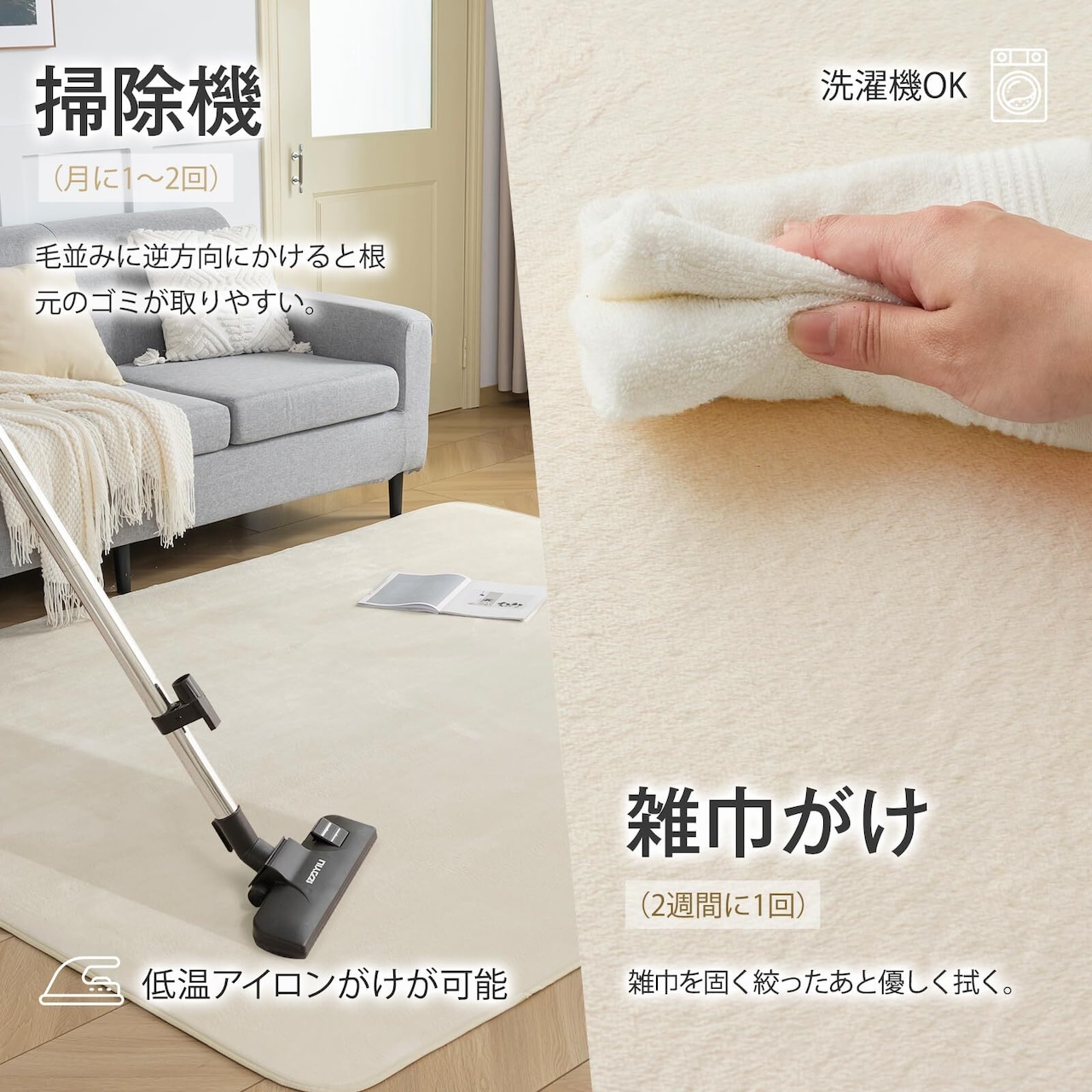 fuwawa ラグ カーペット 滑り止め付 洗える ラグマット 1.5畳 135×185cm 絨毯 オールシーズン快適に使用 フランネルラグ 抗菌 防臭 ホットカーペット対応 無地 アイボリー