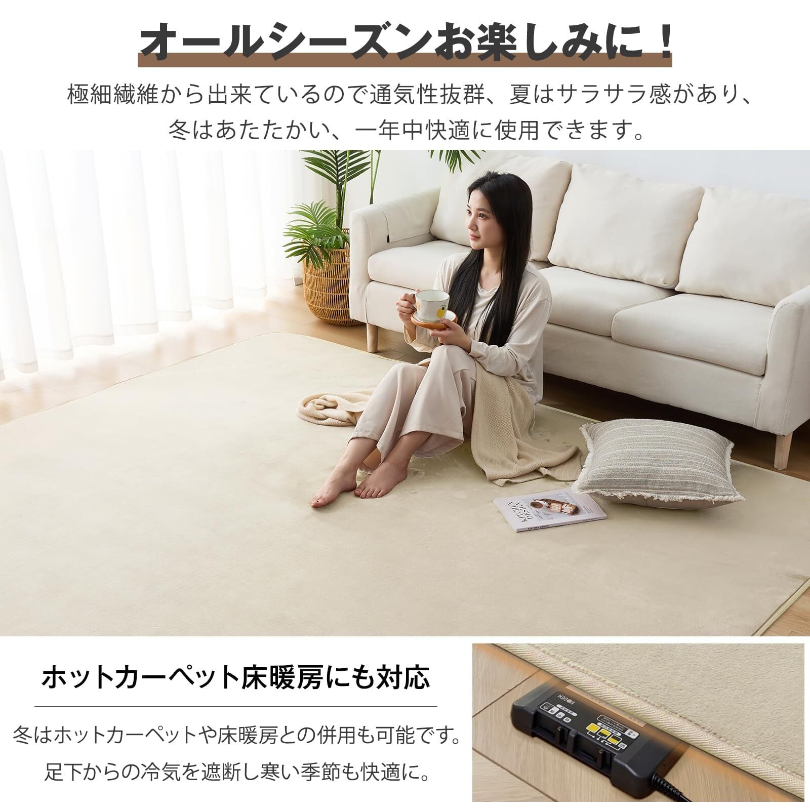 ✨【ホットカーペット対応、オールシーズン快適に】人気のフランネルラグ!速乾性、通気性が優れています。耐熱加工を施しているので、冬はホットカーペットや床暖房の上に敷いてもお使いいただけます。夏はさらりと、冬は暖かく、季節が考えなくて年中使えるカーペットです。