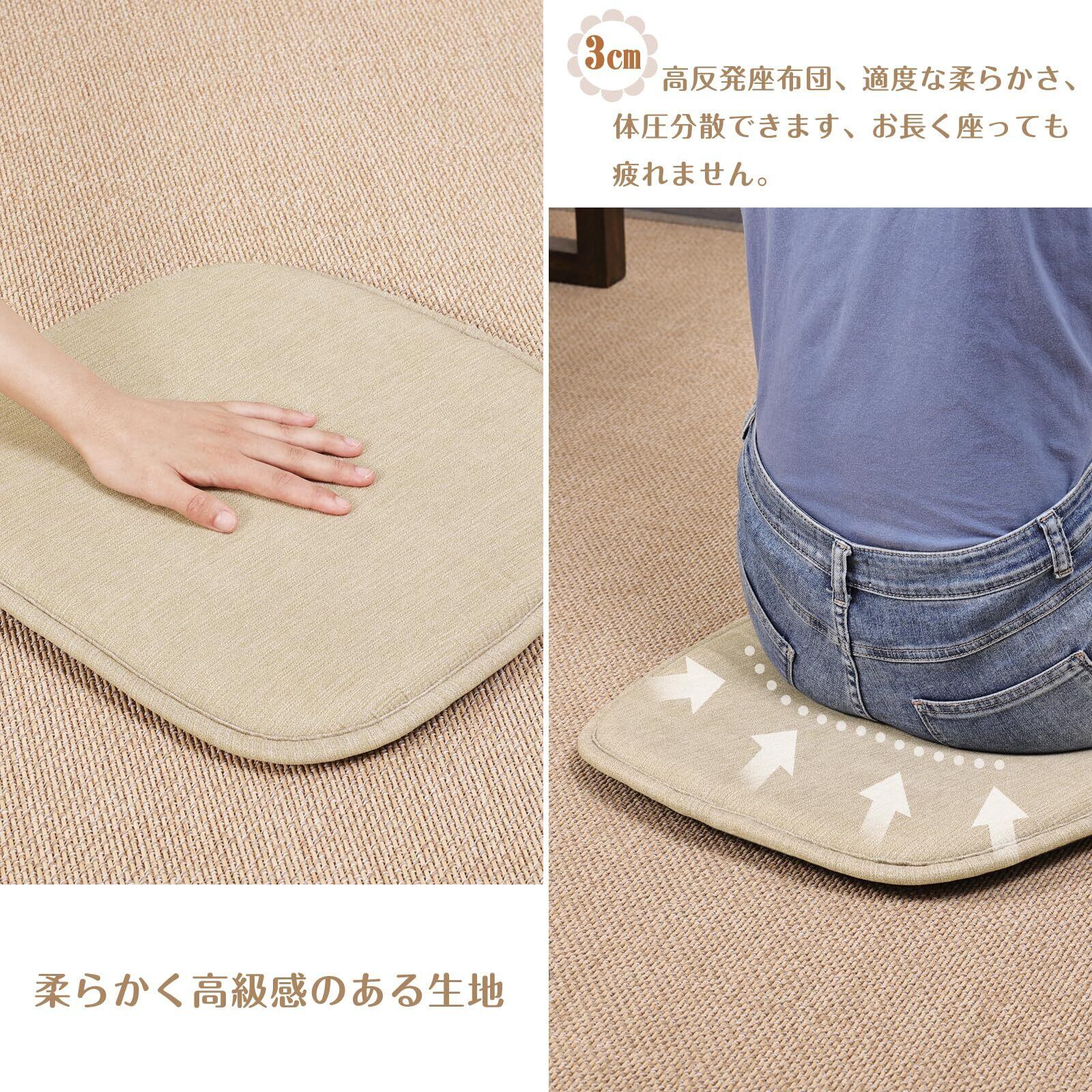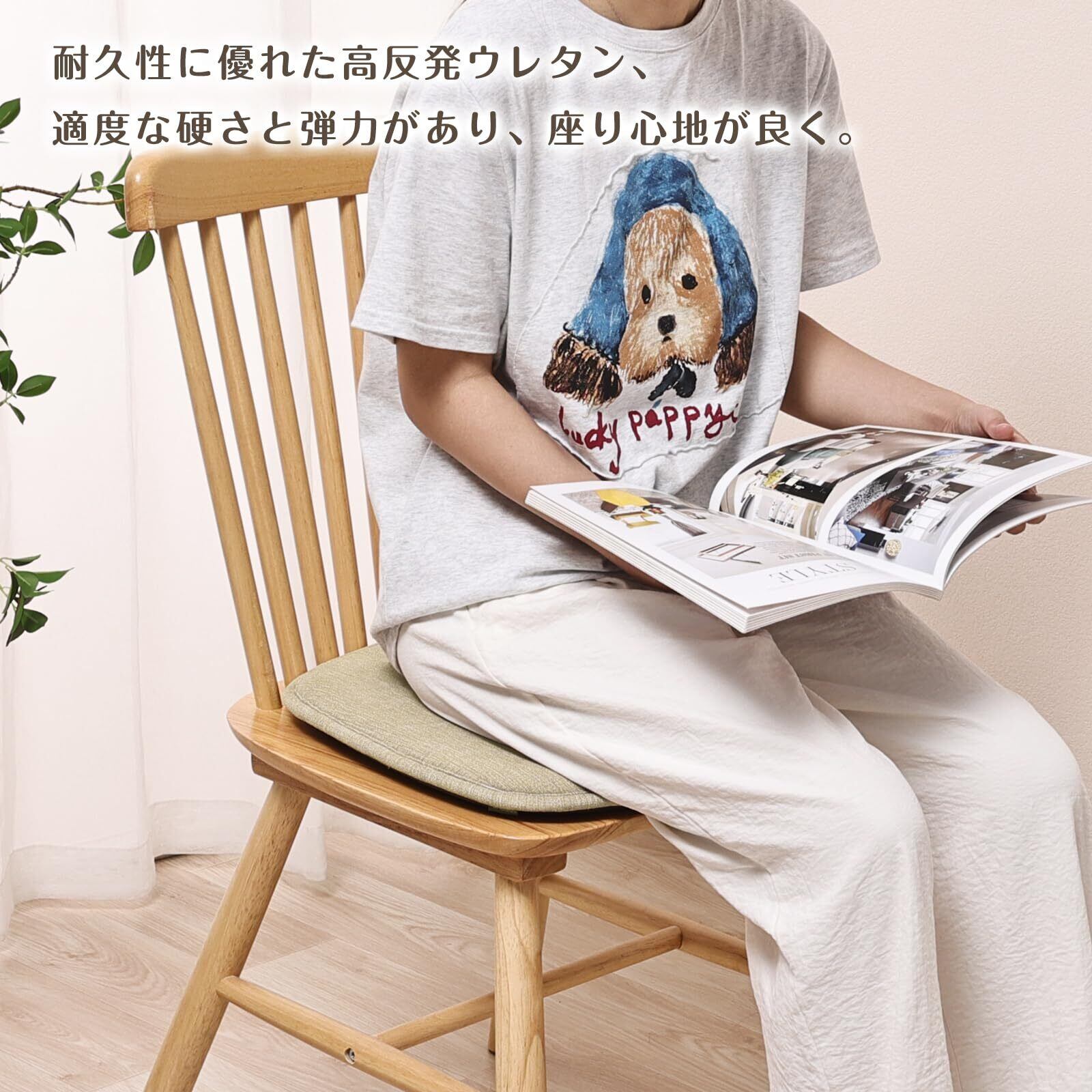 【お尻に優しい】高品質、耐久性のある高反発ウレタンフォームを採用、適度な硬さと弾力があり、座り心地が良く、木製のチェアやフローリングにお長く座てもお尻が痛くならない。座布団は厚み3cm、クッション性良い、座る時に底付き感なし、椅子との直接接触力が減らしますので、お尻や腰の負担も軽減されます。