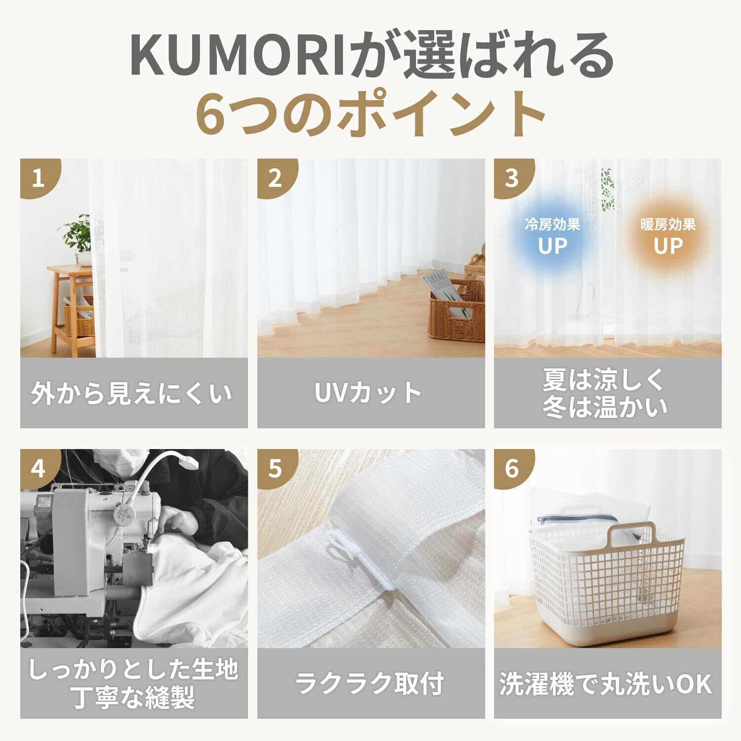 【注意事項】KUMORIのカーテンは日本国内で企画し、海外の工場で日本基準の品質管理を徹底していますので、より安心してご購入いただけます。 ※商品の色合いは、モニター環境により実物とは多少異なる場合があります。 ※万が一商品に不具合がある場合、商品到着後の90日以内にご連絡いただければ返品・交換を承ります。何かご不明な点があれば、遠慮なく当店([email protected])までお問い合わせください。