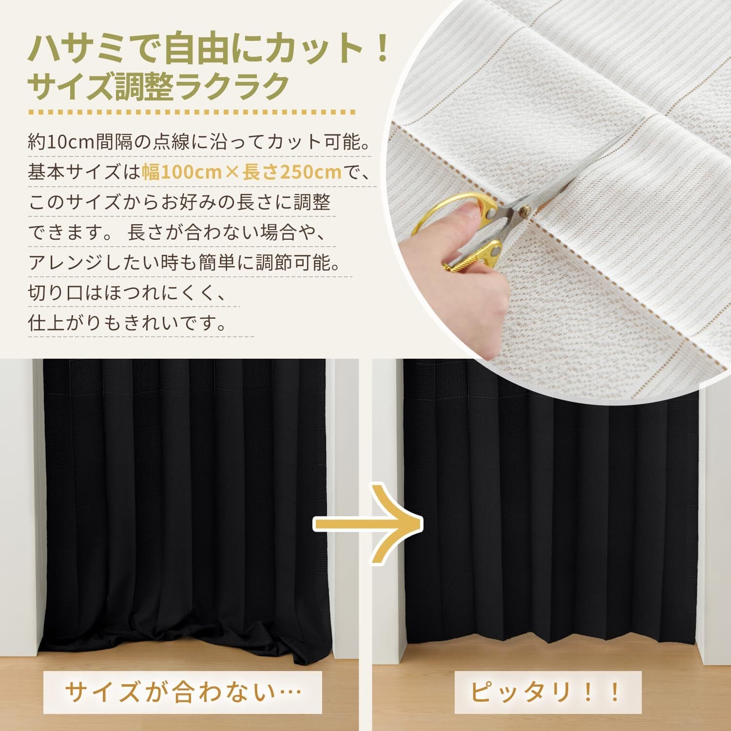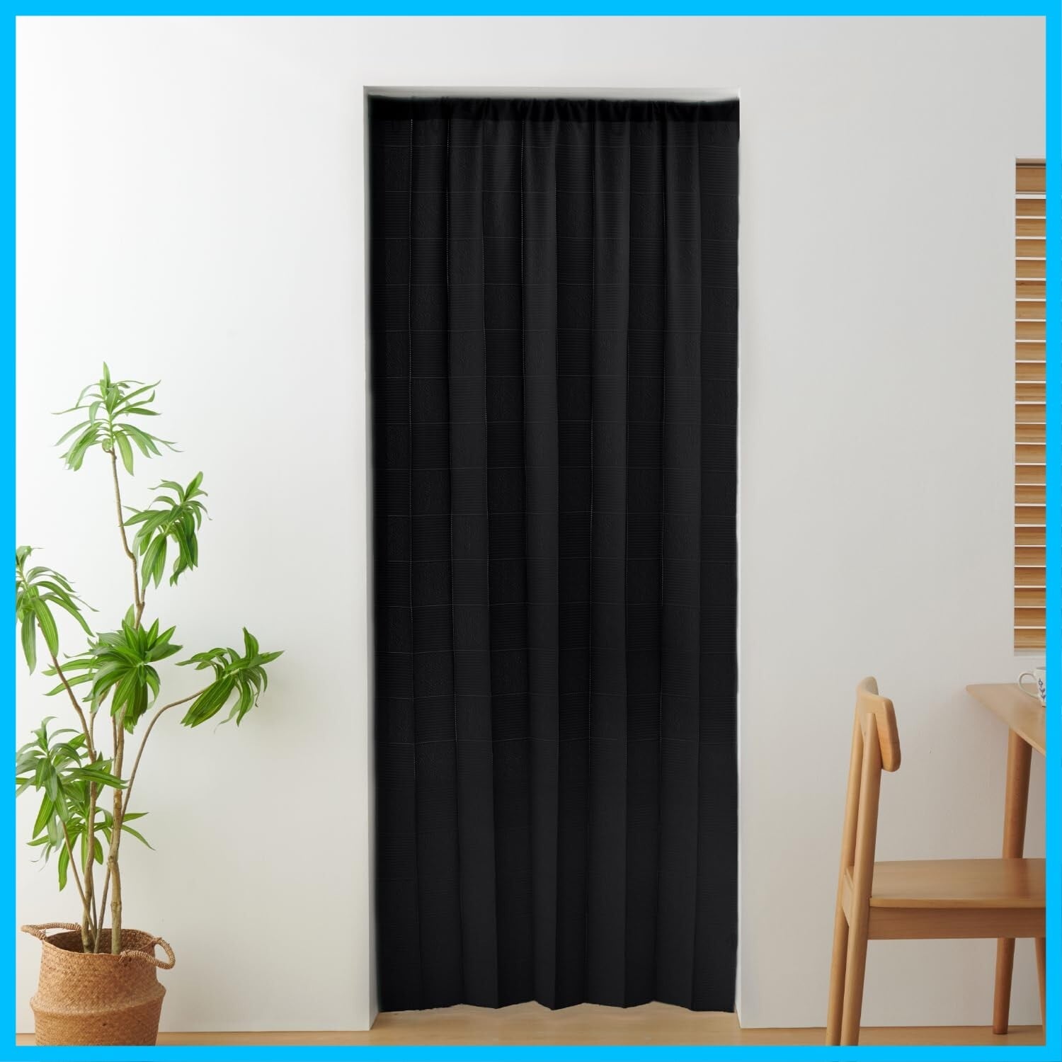 クモリ(Kumori) 間仕切りカーテン フリーカット 好きな形にアレンジ 目隠し 暖簾 のれん アコーディオンカーテン 突っ張り棒 シンプル おしゃれ 無地 チェック調 長さ調整可能 UVカット 遮像 プライバシー保護 程よい透け感 断熱 遮熱 省エネ 洗える (幅100cm×丈250cm・ブラック)