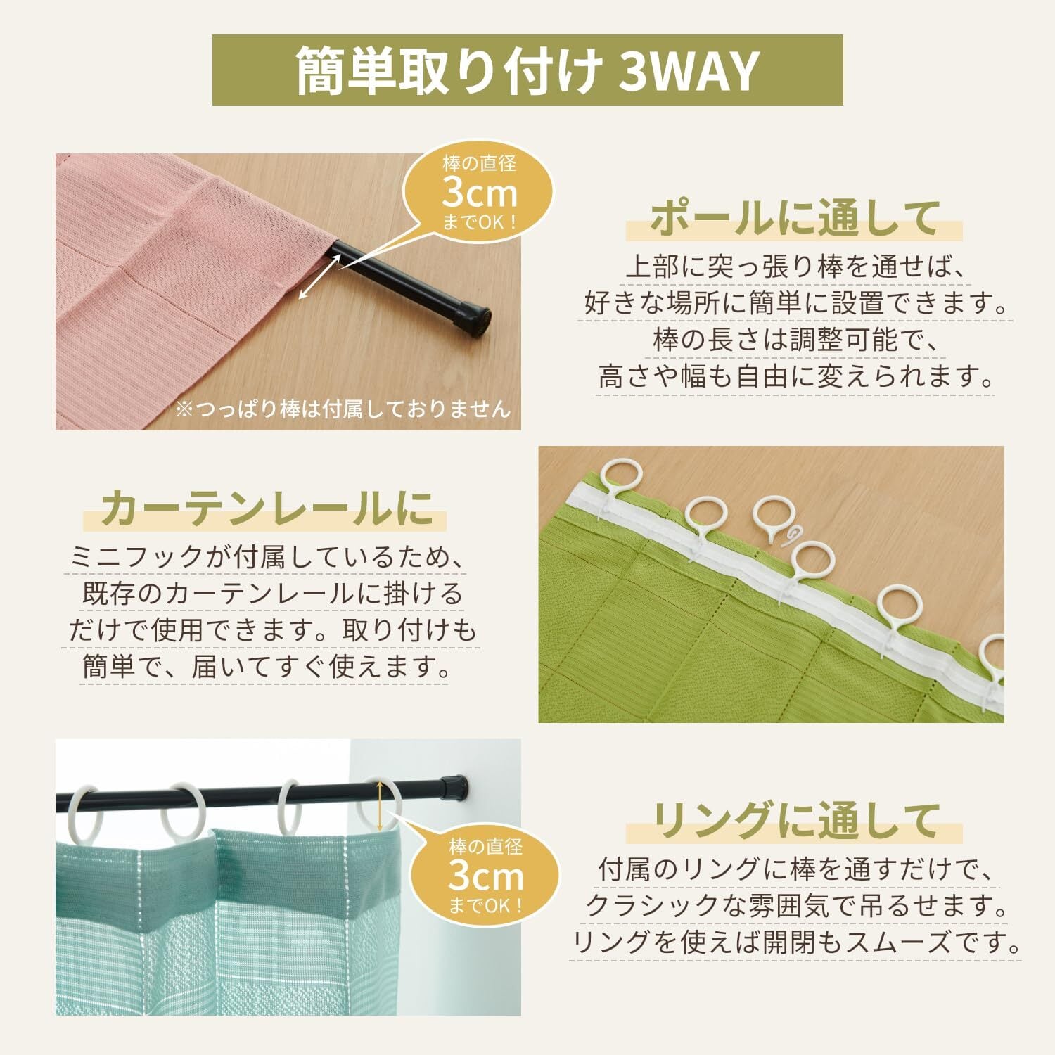 【自由にカットできる】丈は約10cm、幅は約1cm単位でハサミで簡単にカット可能。お部屋の高さや幅に合わせて長さ調整ができ、好きな形にアレンジして使えるので、リビングや寝室、キッチンなど様々なシーンで活躍。収納棚やクローゼットの目隠しとしても便利で、空間をすっきり見せます。