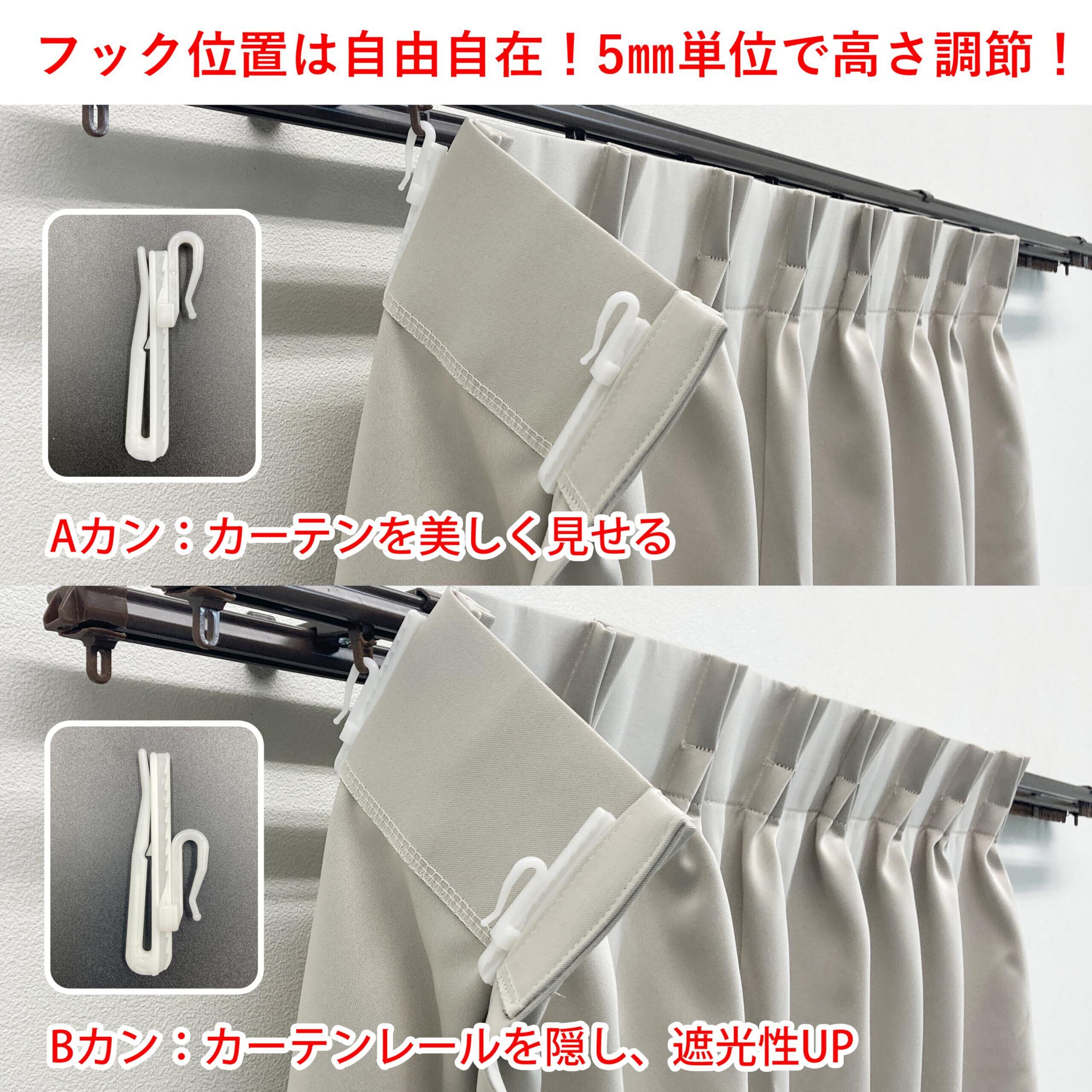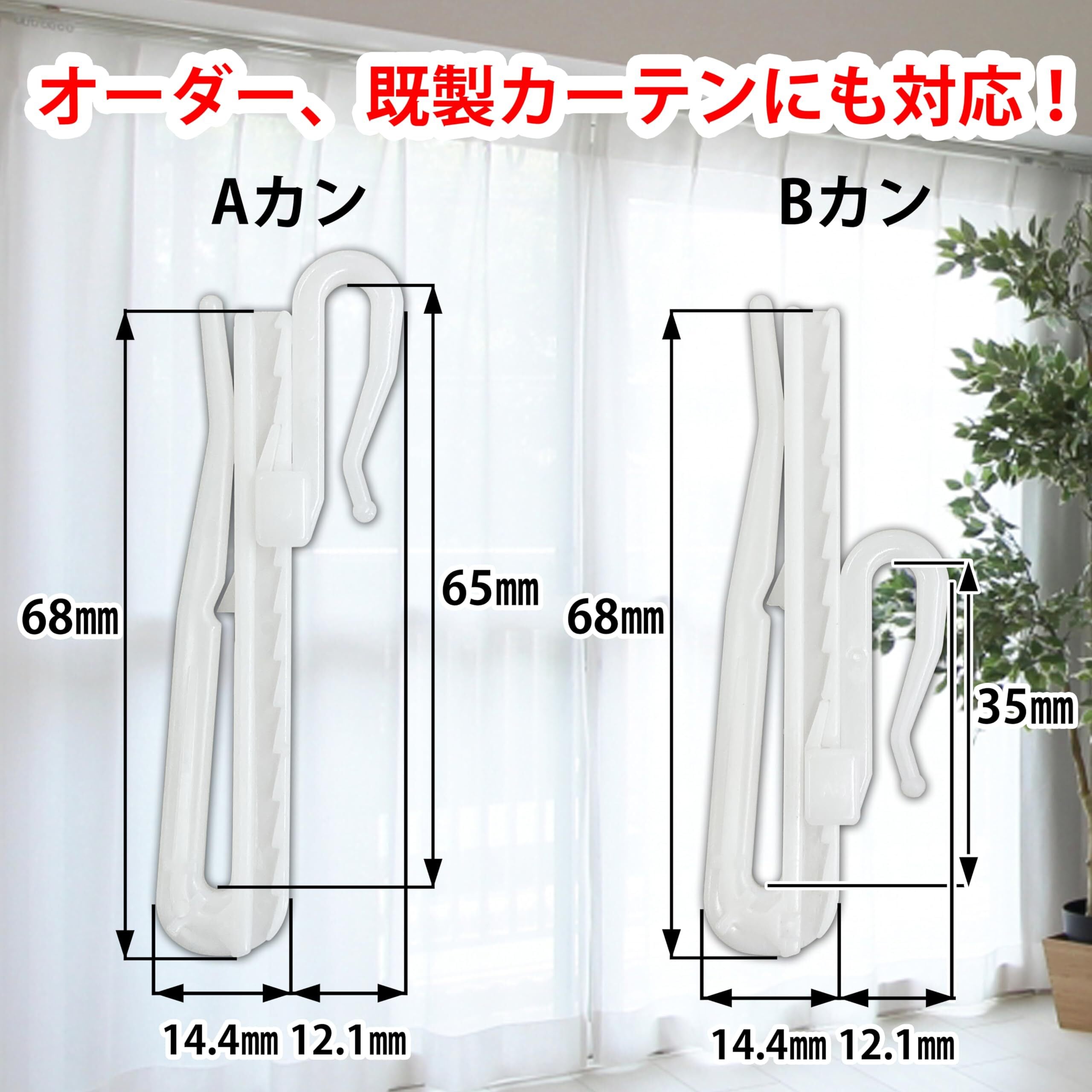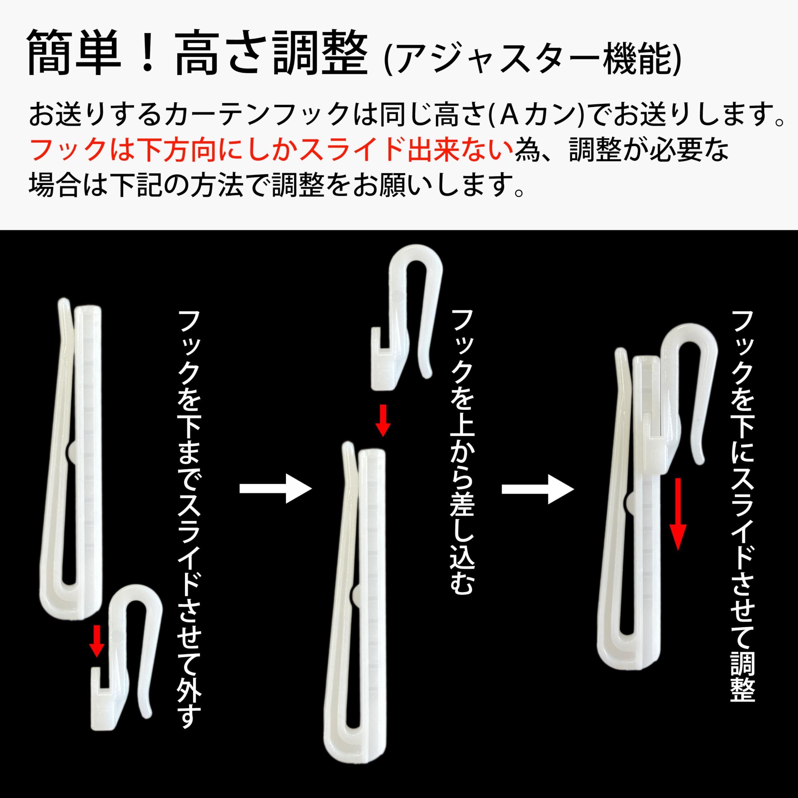 対応形式:アジャスターフック(高さ調整機能付きカーテンフック) Aカン/Bカン 両対応(5㎜単位で調整可能)