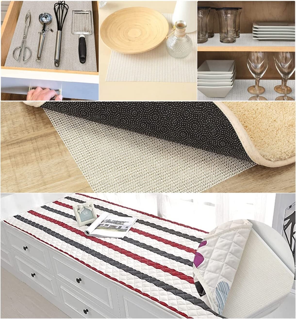 【様々なシーンに適用】お使いのラグ・カーペット・マットの下に敷くだけでズレを防止し、しわが出にくくなります。転倒防止の同時に掃除もしやすくなります。テーブルクロスや、食器、ソファーカバー、ラグ、玄関マットおよび布団、畳、マットレスの下敷きとしても使えます。