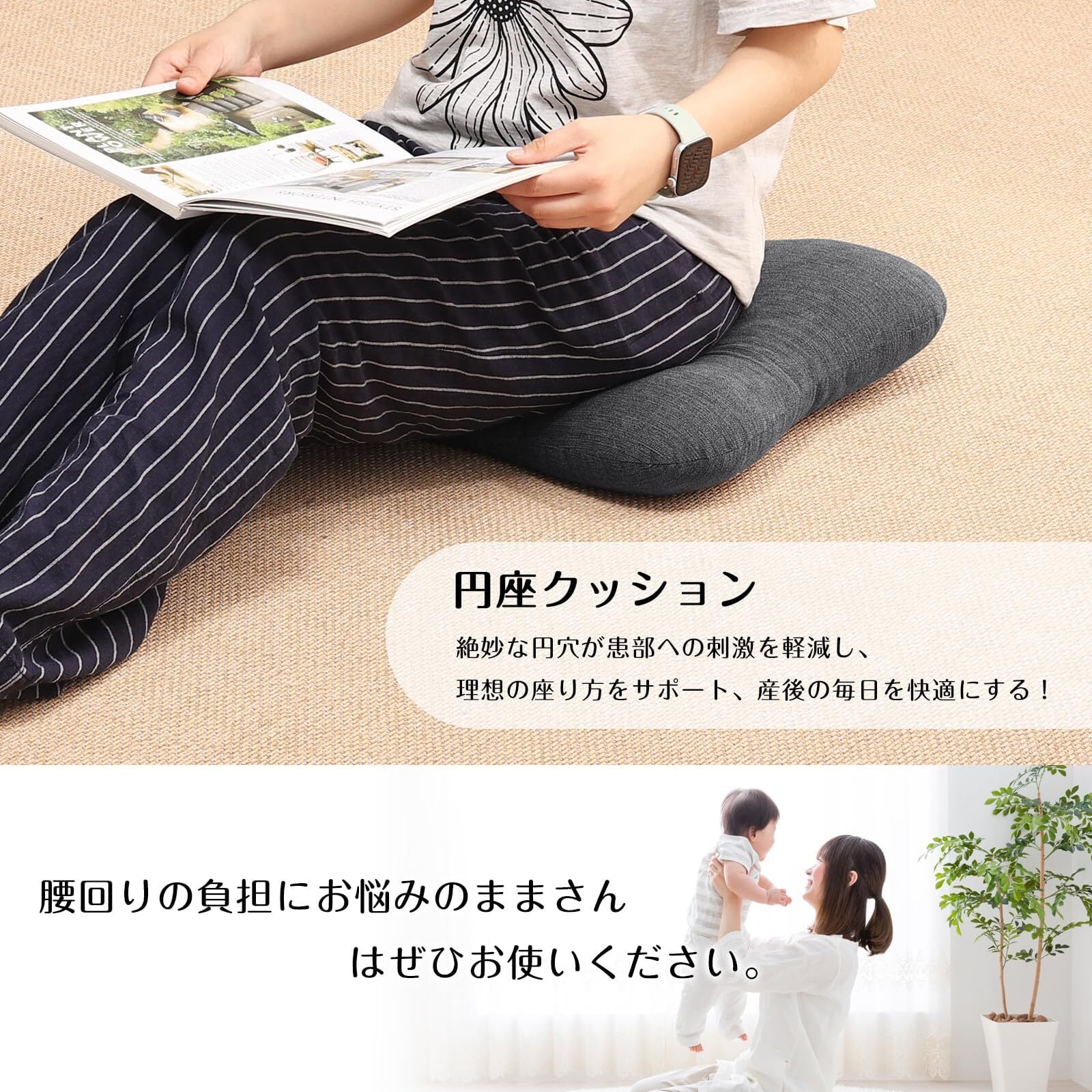 Shinnwa 円座クッション 産後 痔 出産 妊婦 腰痛 姿勢矯正 椅子クッション 座布団 背当てクッション ダイニングチェア 車/オフィス椅子/車椅子用 ブラックグレー