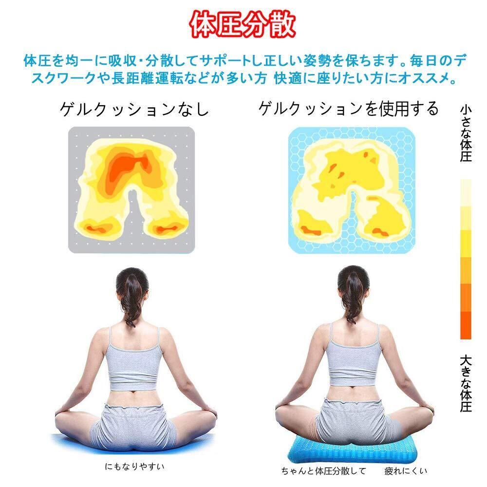 通気性抜群 蒸れない : ゲルクッションは最新設計のハニカム構造が空気をしっかり循環し通気性抜群!毎日のデスクワークや長距離運転などが多い方 快適に座りたい方にオススメ。 自宅のダイニング椅子やオフ ィスイス、運転席や車椅子、妊婦車等様々な場所で使えます。 自分用や家族や友人に祝日・誕生日のプレゼント、敬老の日ギフトとし ておすすめです。