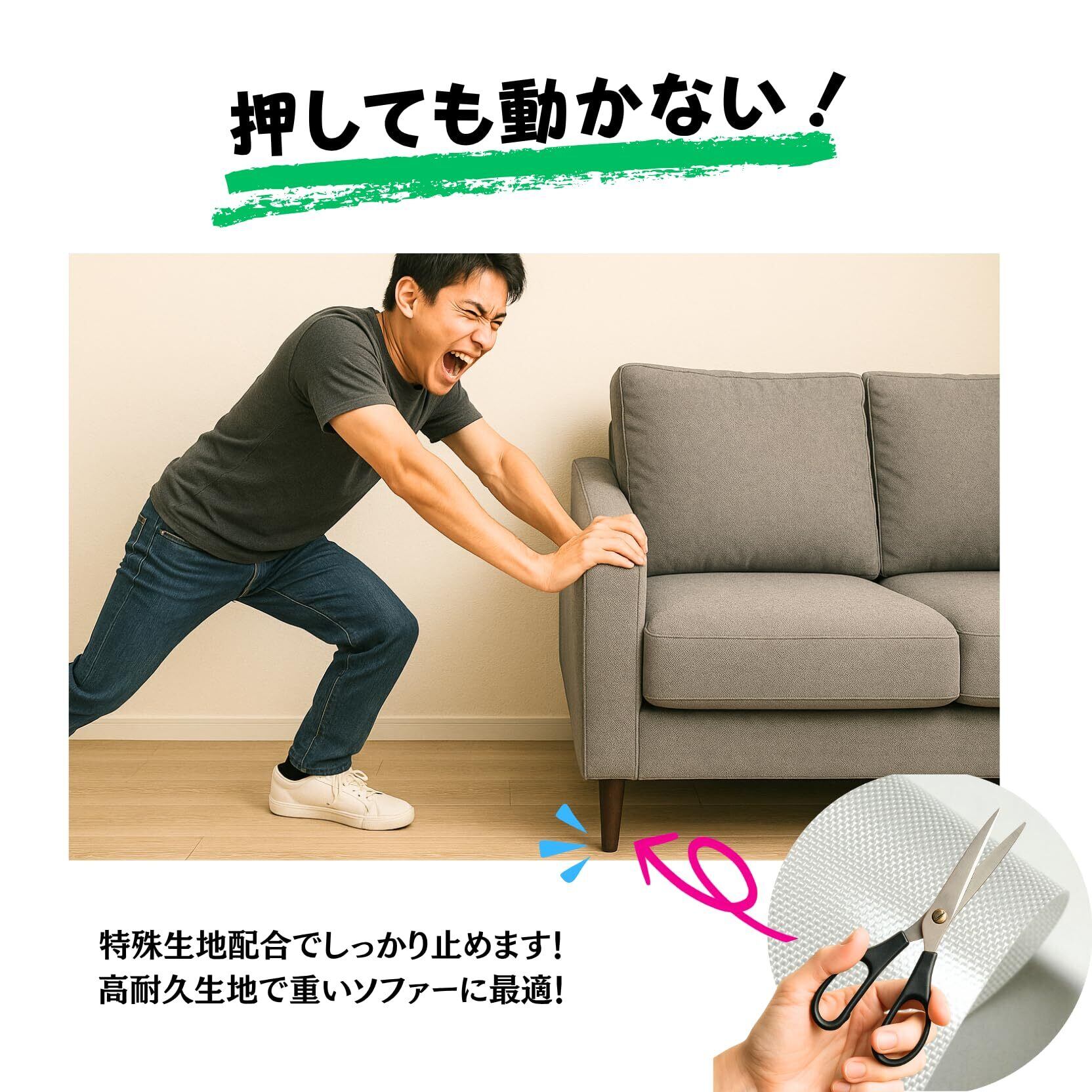 今までにない、強力なすべり止めシート・ビタどめ。 はさみで簡単にカットできますので、お好きな大きさで使いいただけます。 色はインテリア馴染みの良い、おしゃれなスモーキーグレー。汚れても、水洗いすることですべり止めの効果が復活します。耐熱200度ですので、ホットカーペットや床暖房にもお使いいただけます。 <使用例> カーペットの下、食器棚、車のダッシュボード、サロンのインテリアの落下防止、本棚、防災、落下防止、工具入れの引き出し……などなど。お好きな場所に。