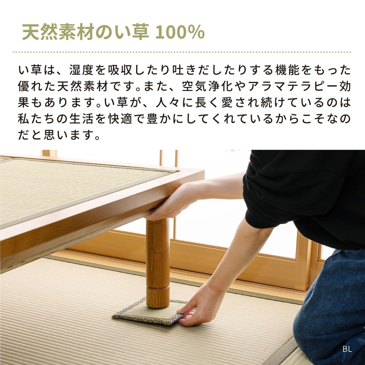【組成】 表面:い草100% 双目織 中材:い草100% 裏面:い草100% 縁:ポリオレフィン系複合樹脂 四方縁